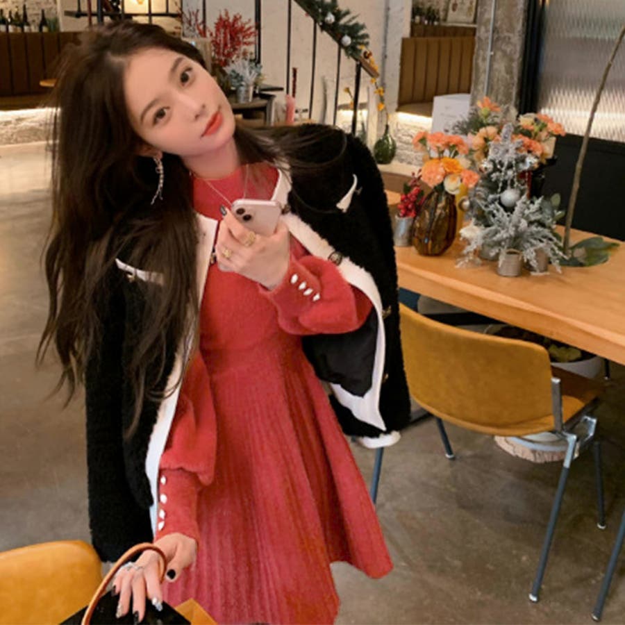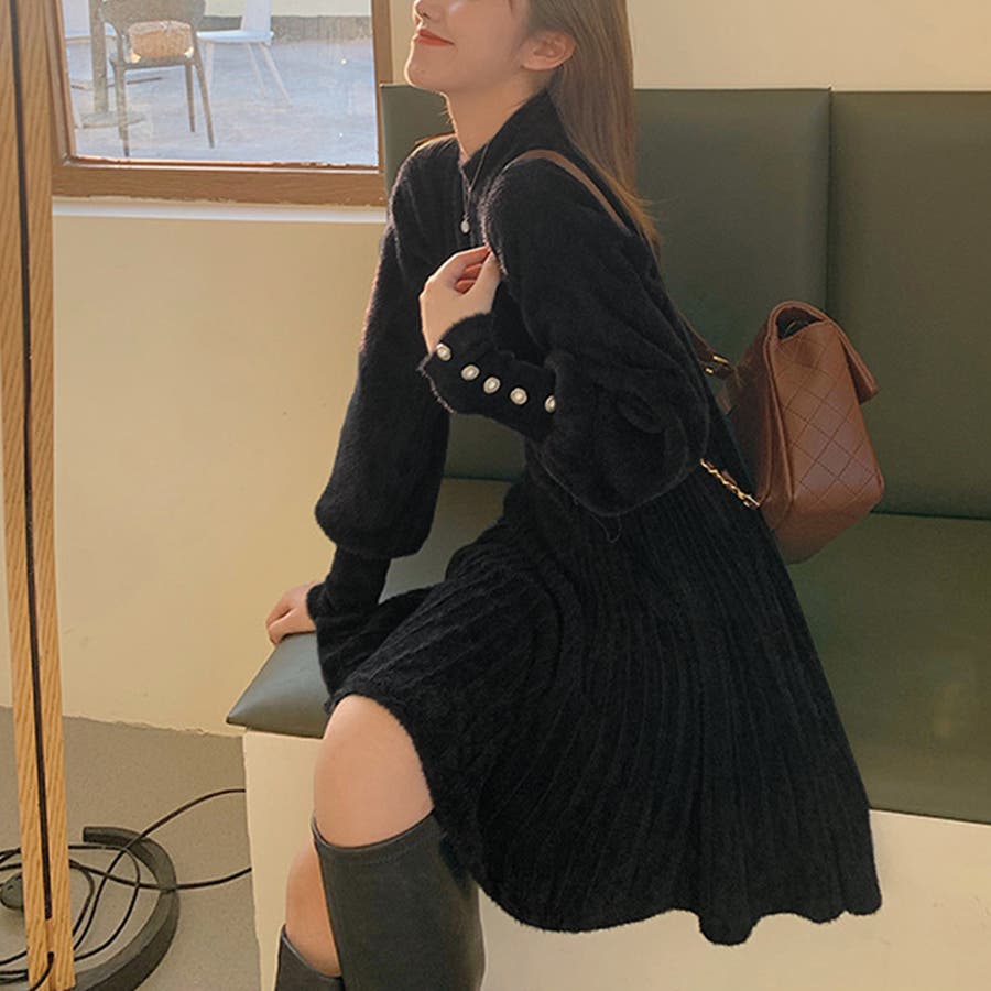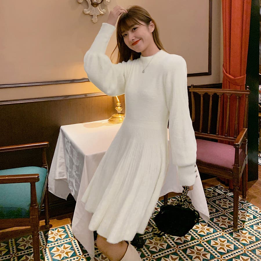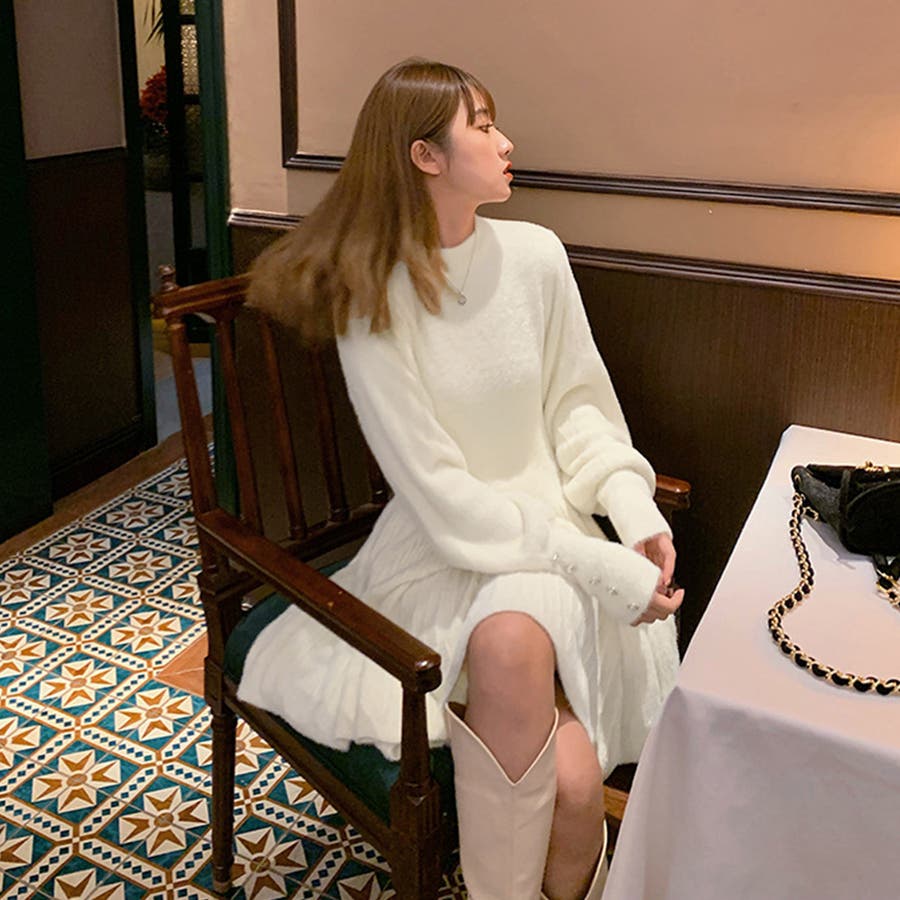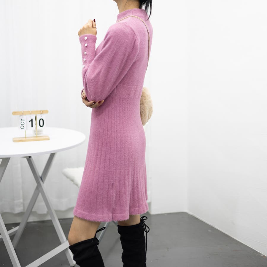 しっとりとした肌さわり抜群のミンクタッチのふわふわニットワンピースです