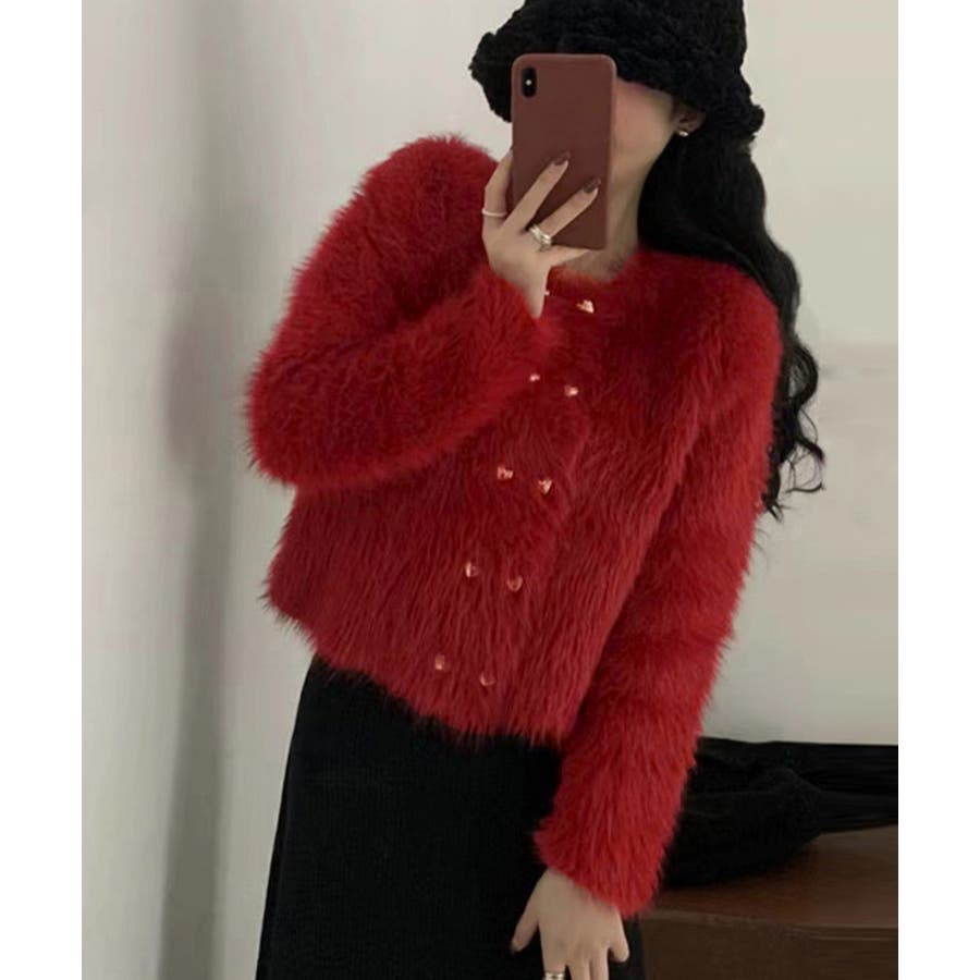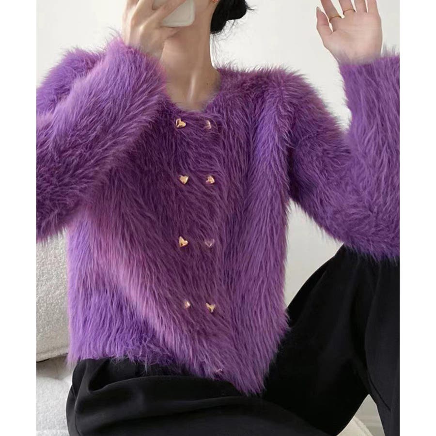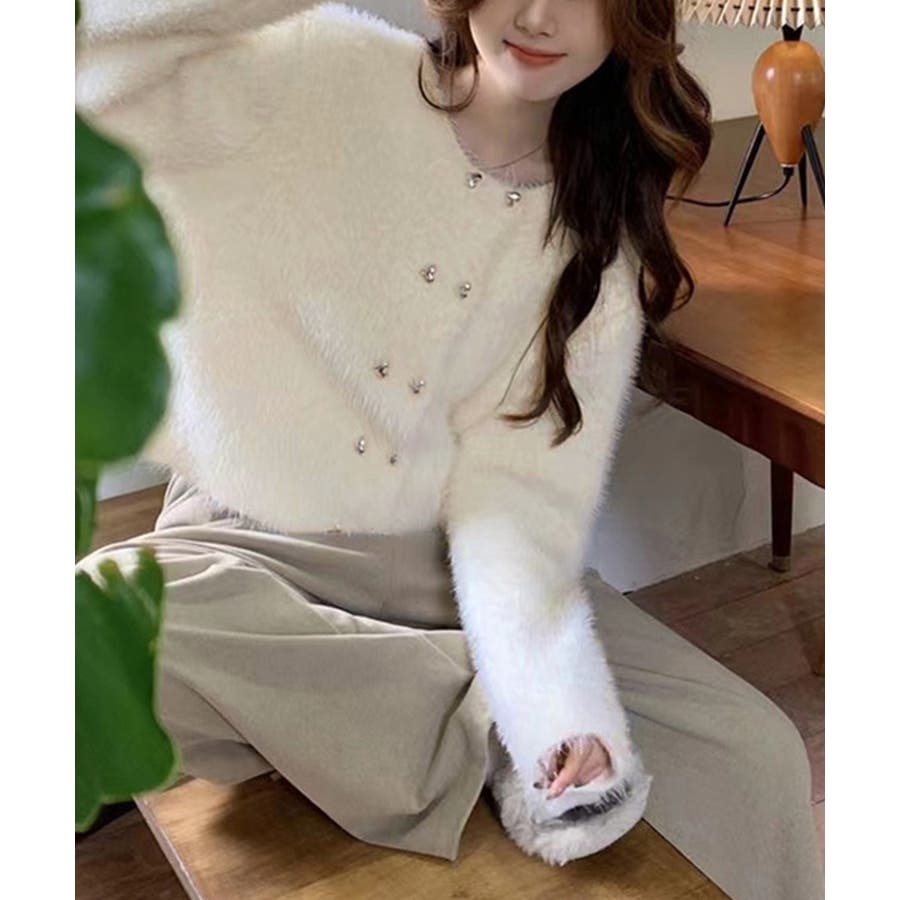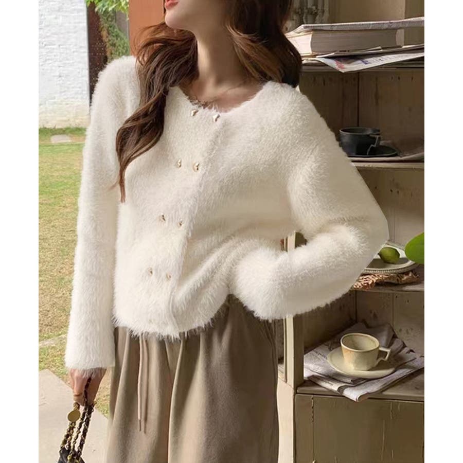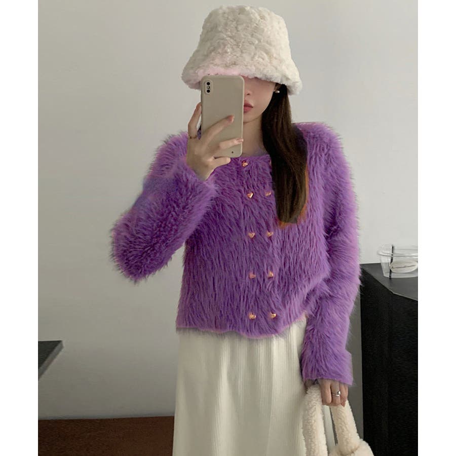 ファートップス新作 モヘアカーディガン ふわふわ服あったか