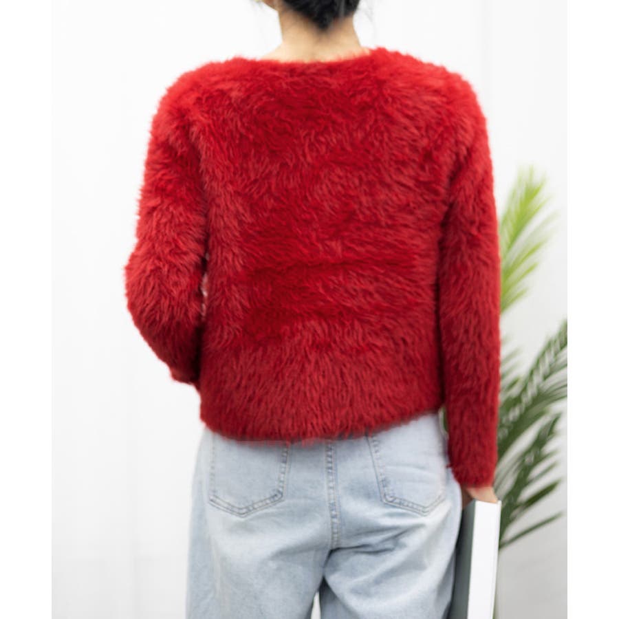 ふんわりと長い毛足、ボリューム感たっぷりに仕上げた韓国っぽショート丈レディースボアカーディガン