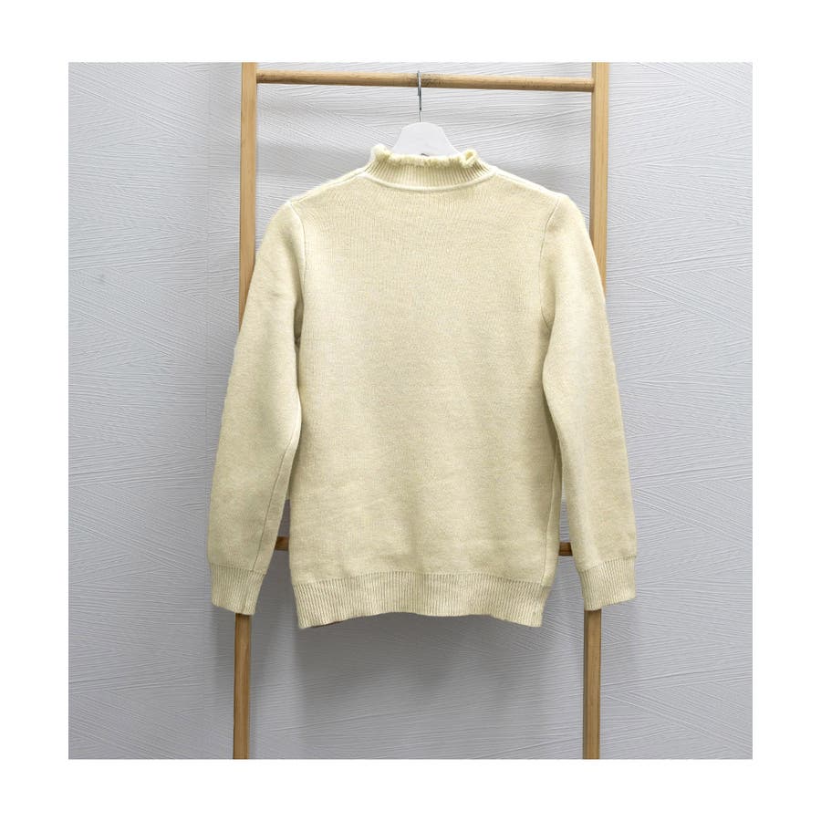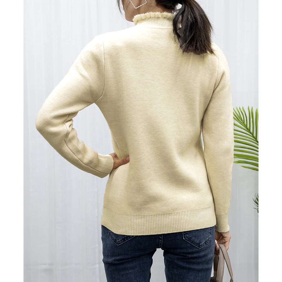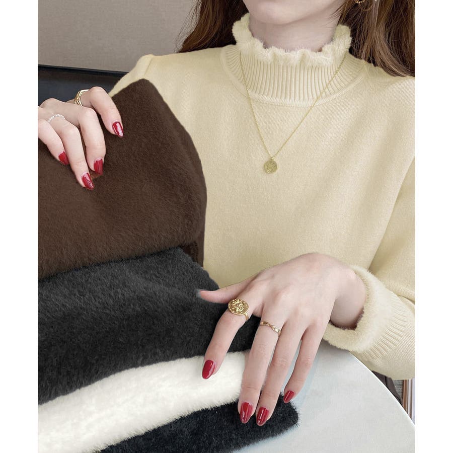 レディース メロウフリル 裏ファー 暖かいインナー 厚手 ニットソー きれいめ モックネックニットセーター 着やせ 韓国