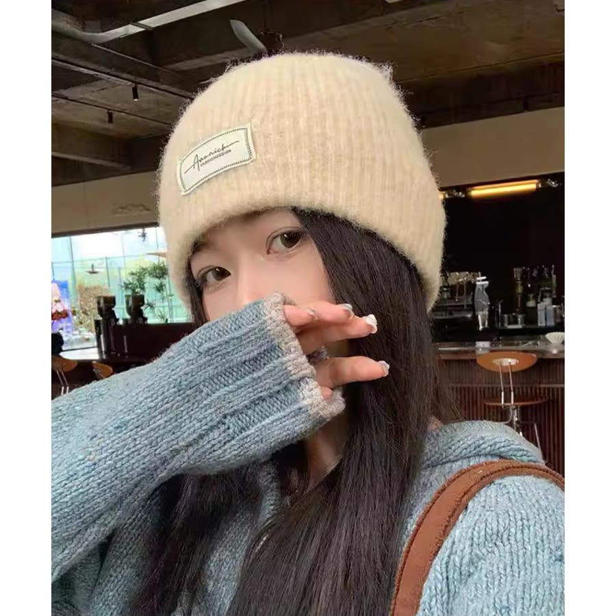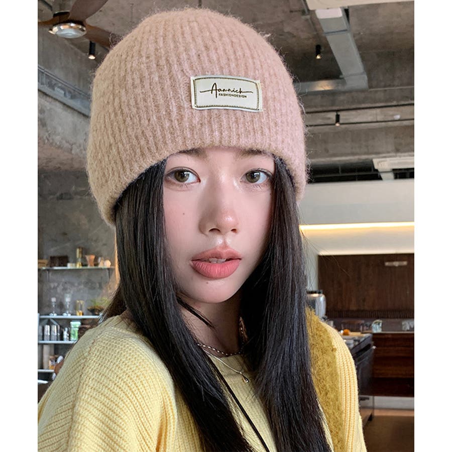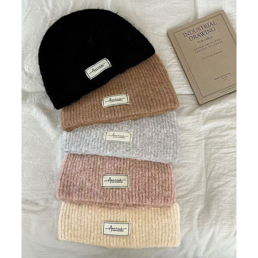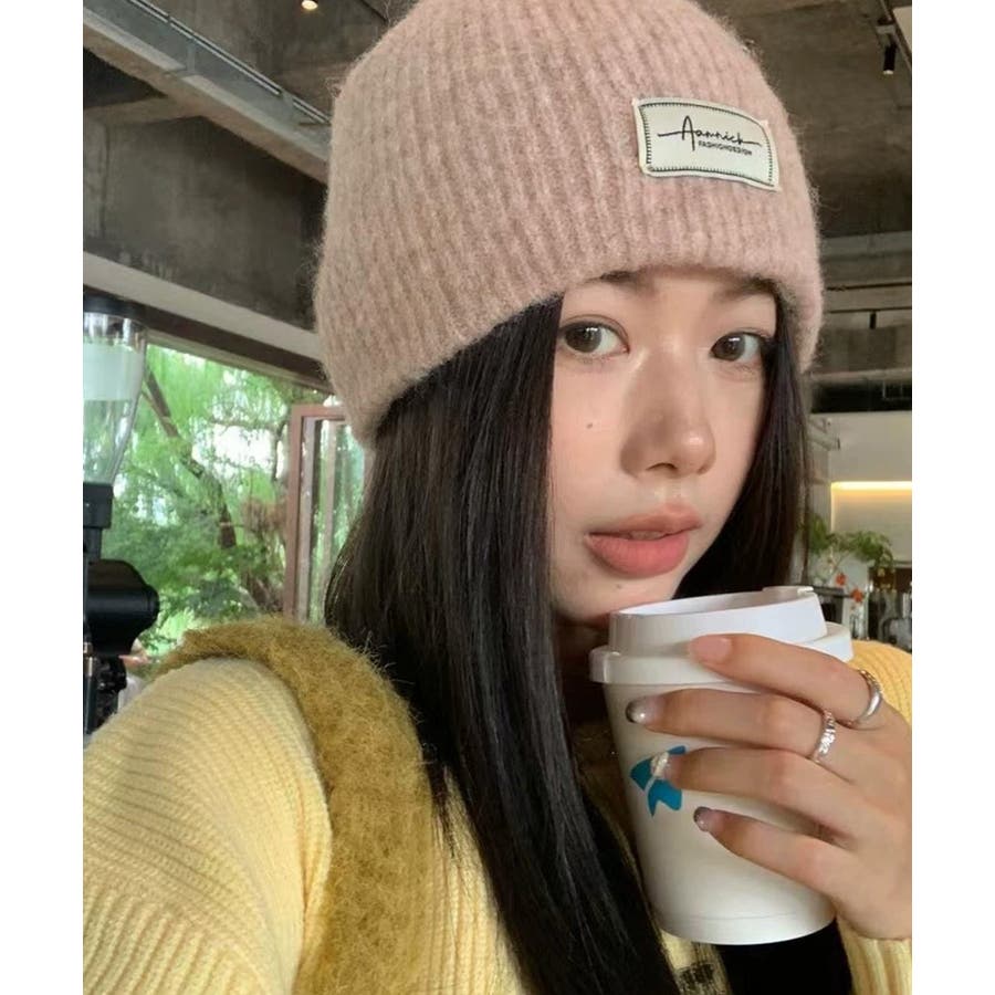 おしゃれ リブニットビーニー ワンポイント秋冬帽子 防風防寒 小顔ぼうし あったか 韓国風 お出掛け防寒グッズワッチ帽子