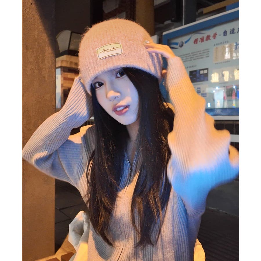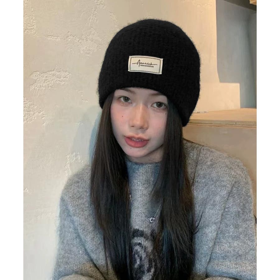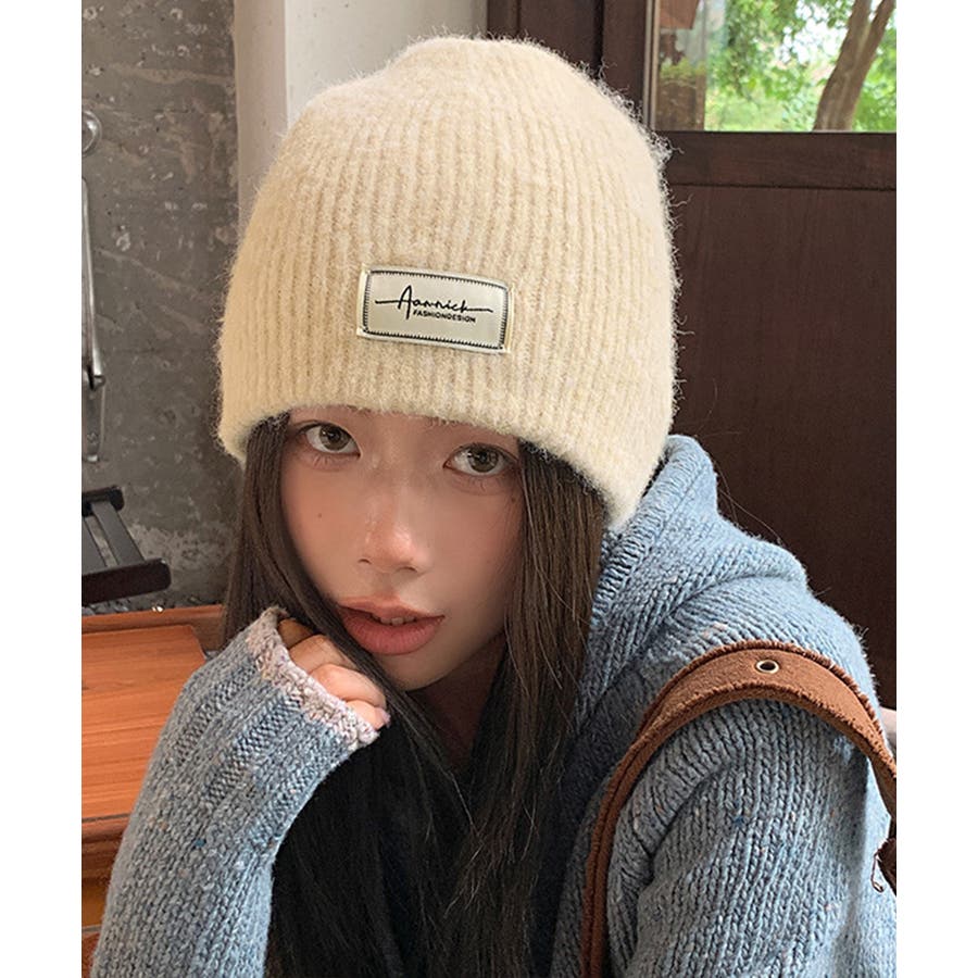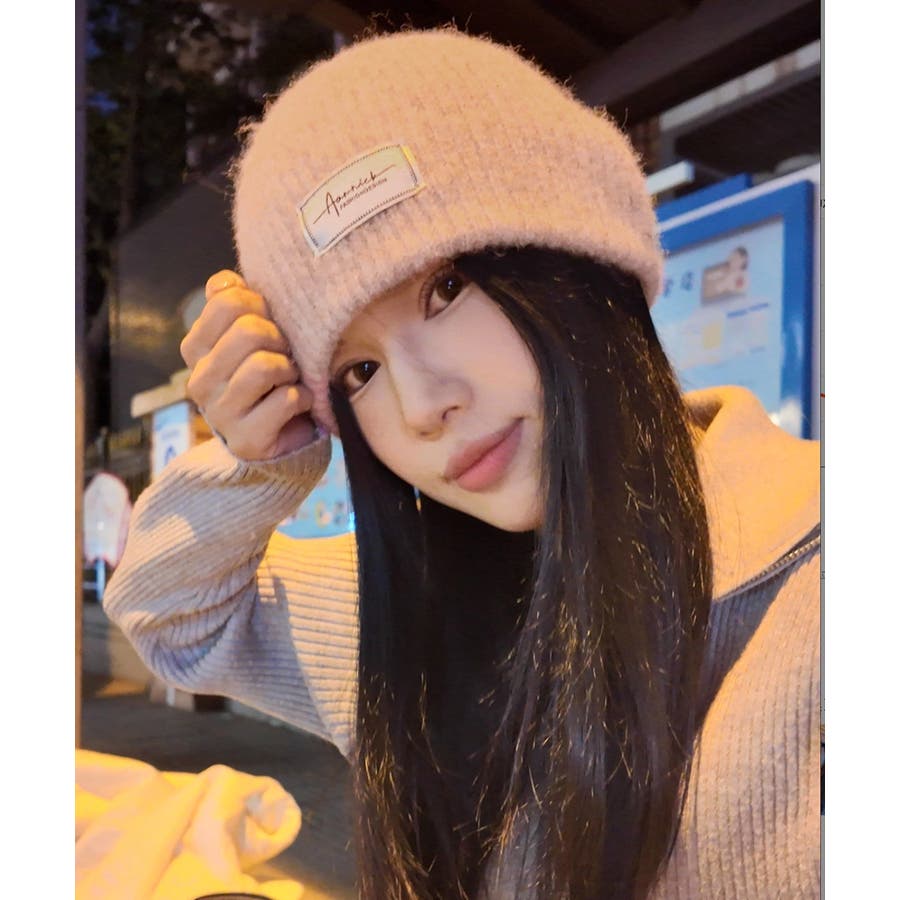 おしゃれ リブニットビーニー ワンポイント秋冬帽子 防風防寒 小顔ぼうし あったか 韓国風 お出掛け防寒グッズワッチ帽子