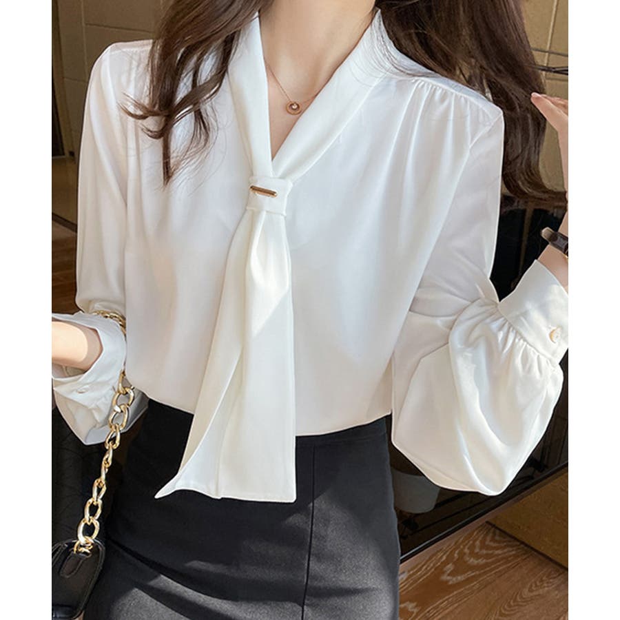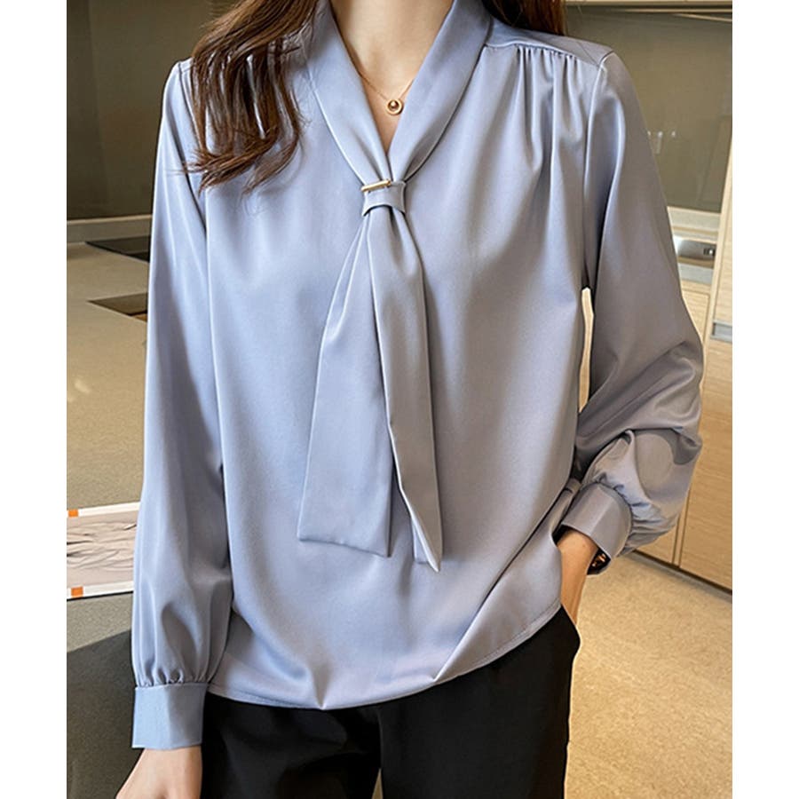 ボウタイ ブラウス レディース Vネック