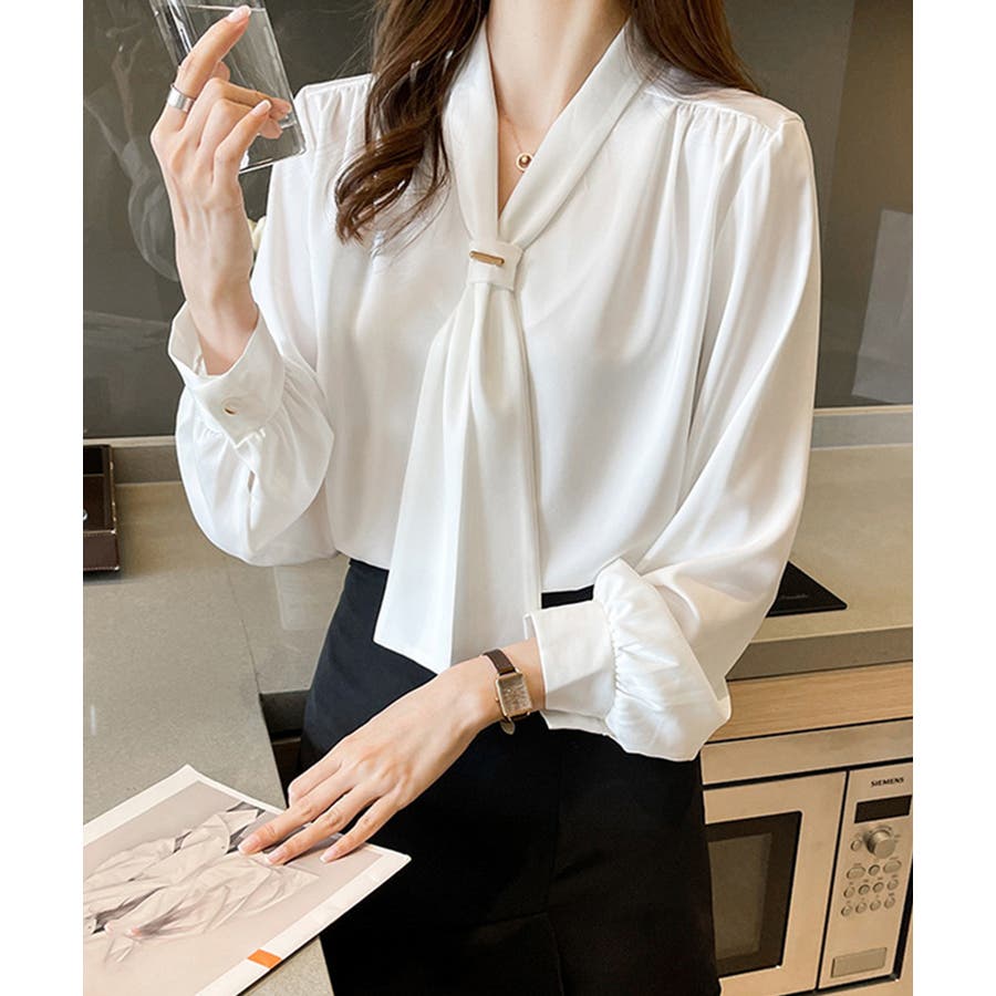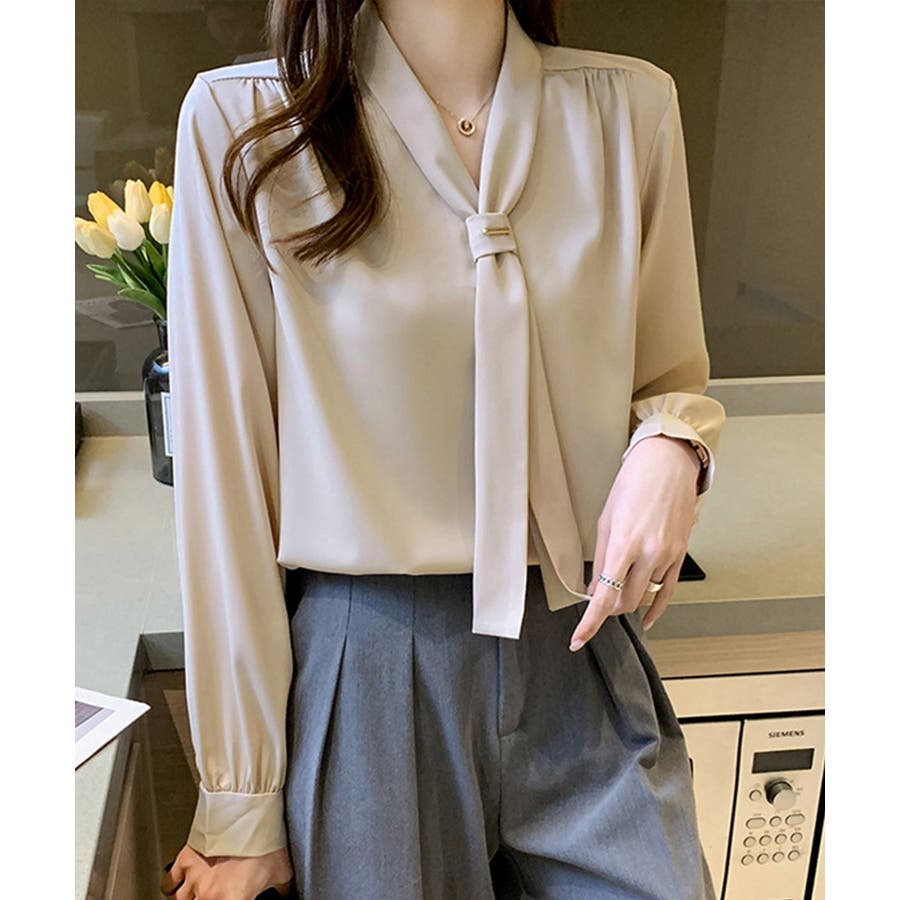 ドレープシャツ春秋 リボンタイブラウス OLコーデおしゃれ