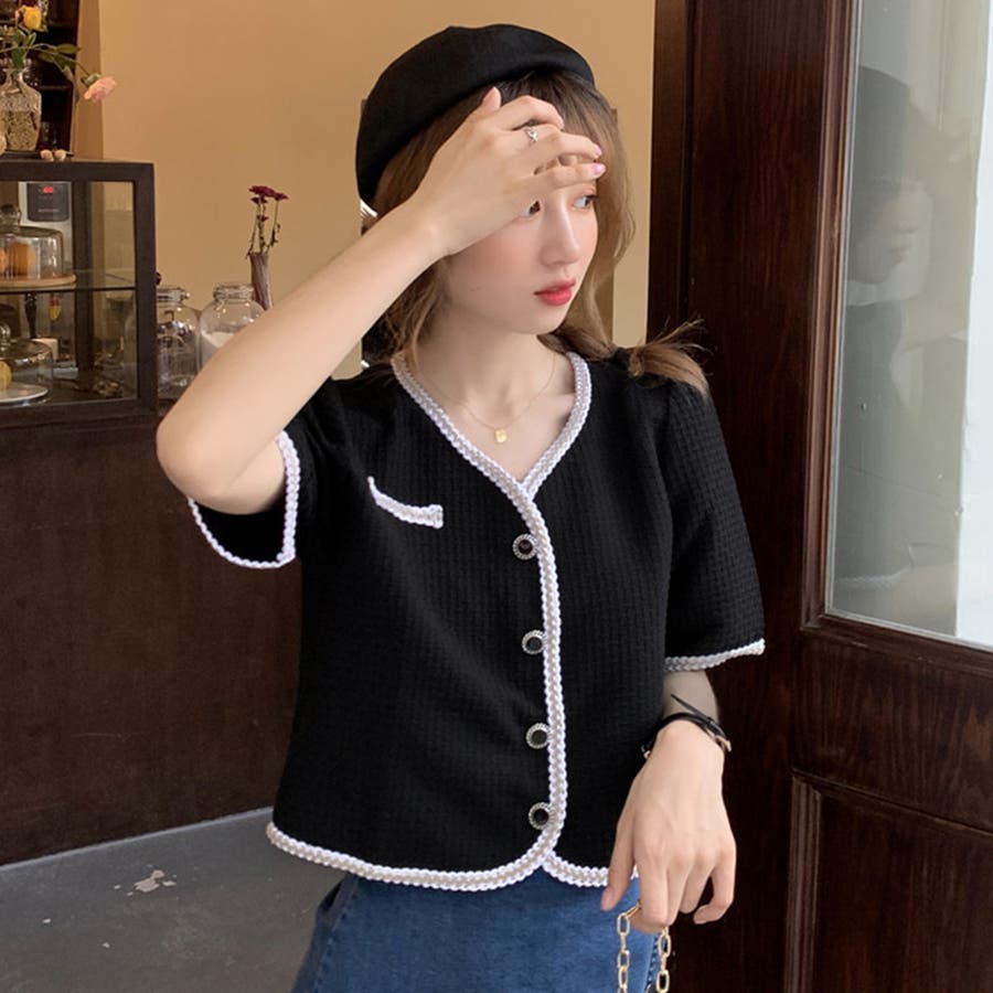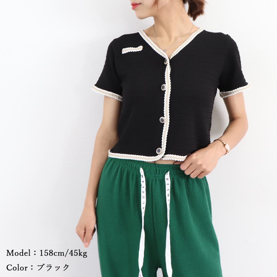 スッキリ魅せが得意なVネックにラメブレードをあしらったコンパクトジャケット