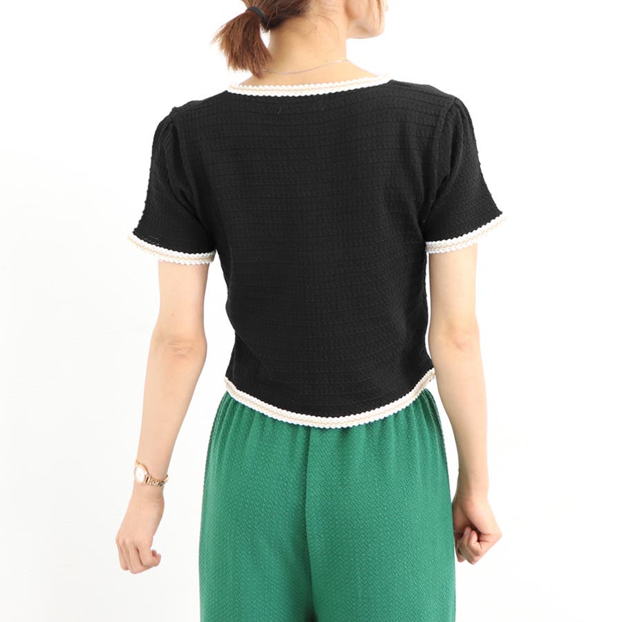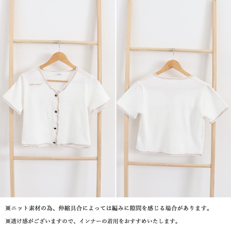 サマーカーディガン Vネック 透かし編みニット ショートカーデ 立体感 シャツ ラメ入り羽織り 夏 トップス バイカラー