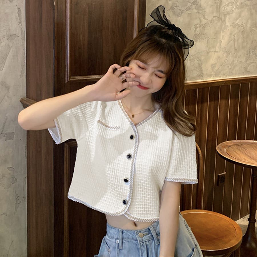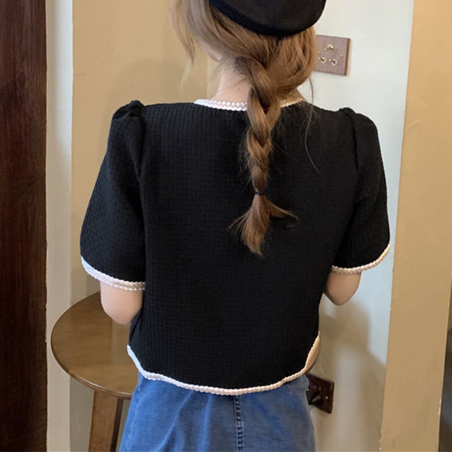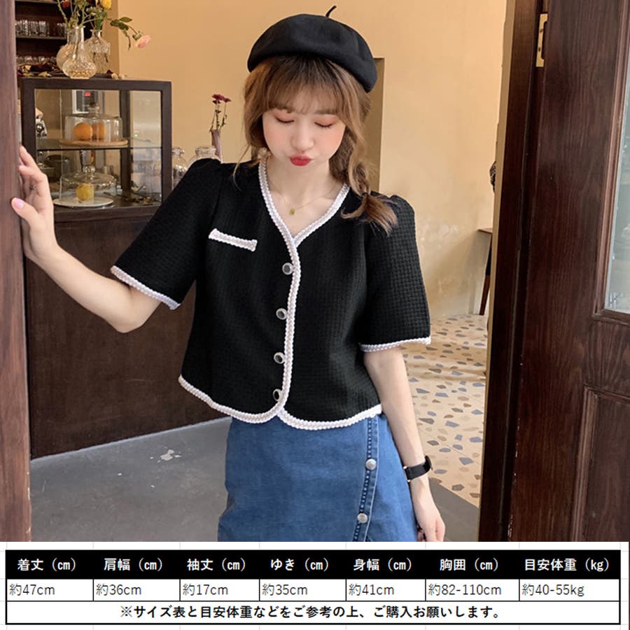 レトロボタンお洒落 配色カーデかわいい 開襟シャツ大人上品