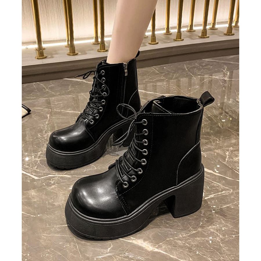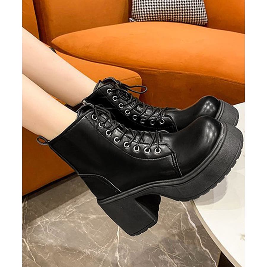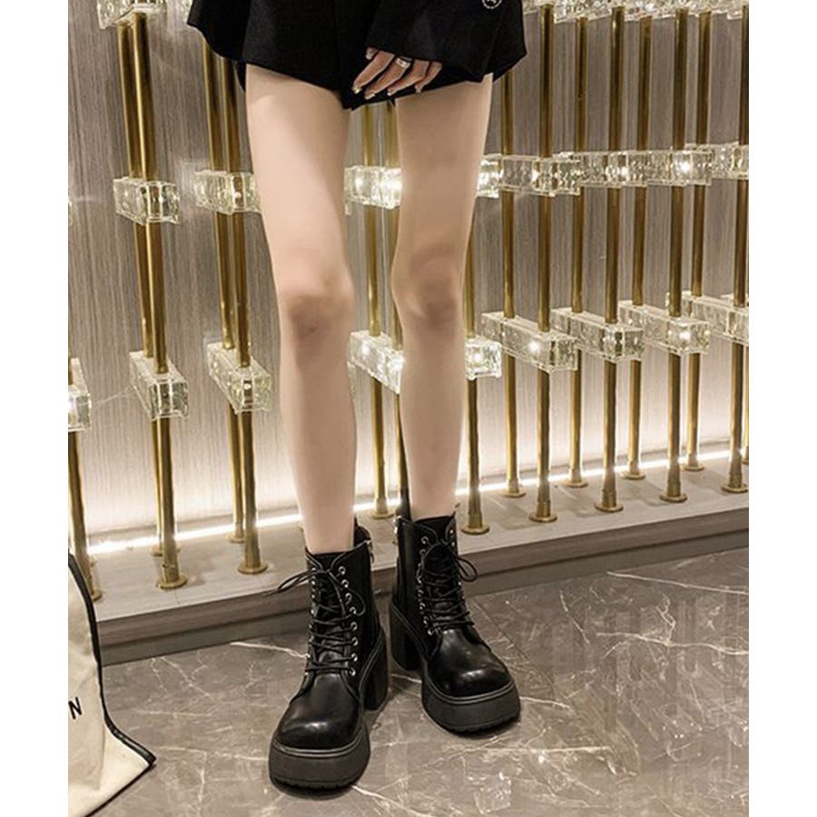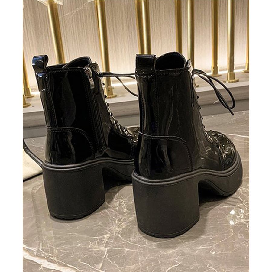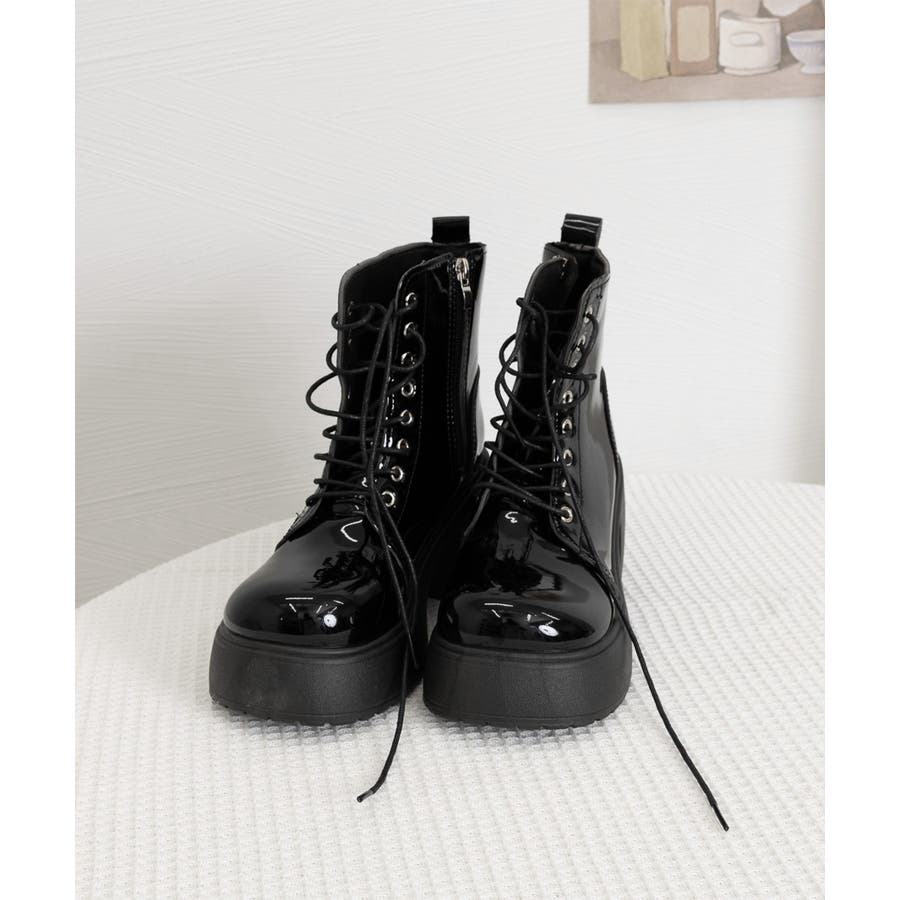 レースアップデザインながら便利なファスナー付きで、脱ぎ履きがスムーズ。