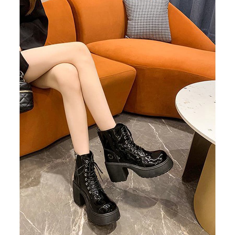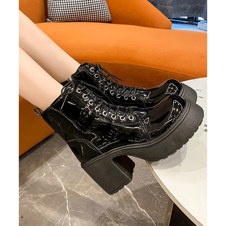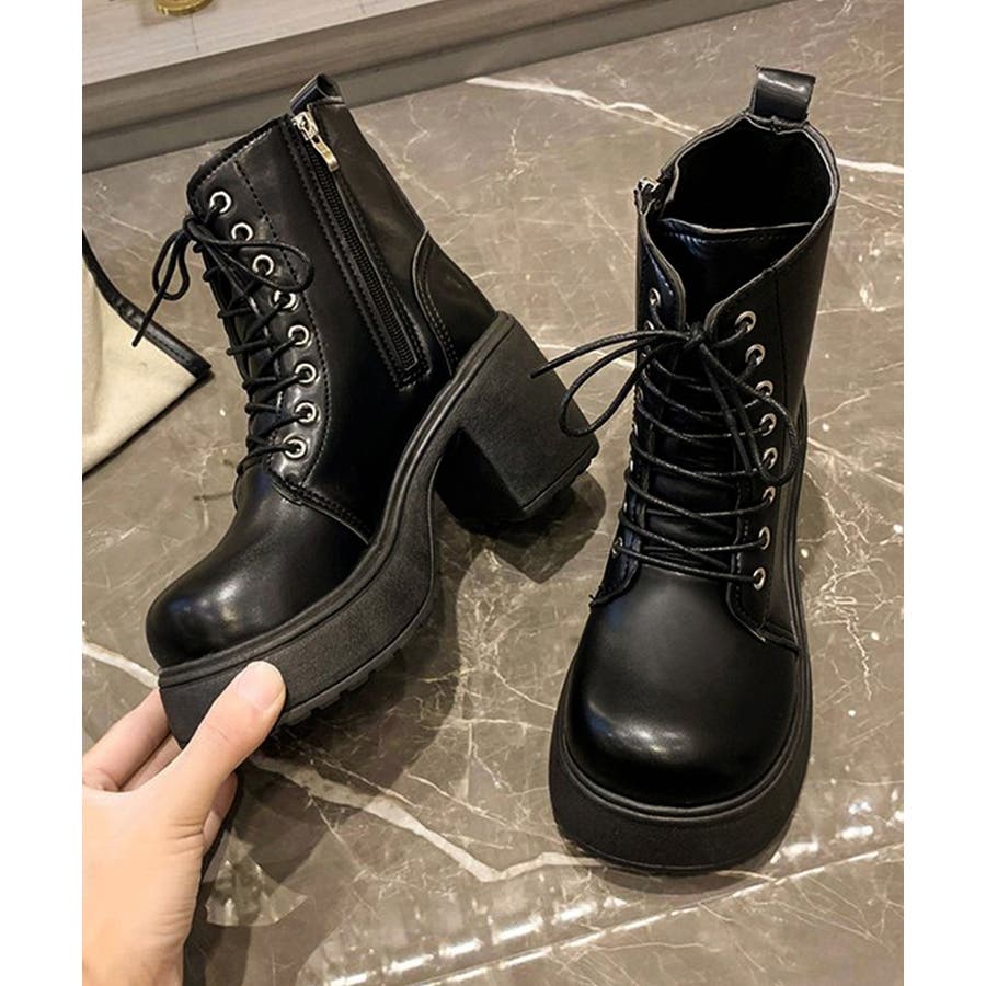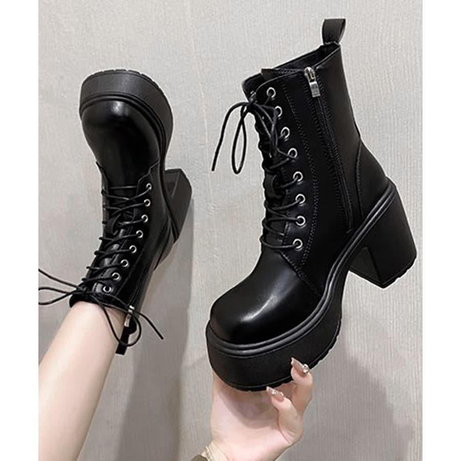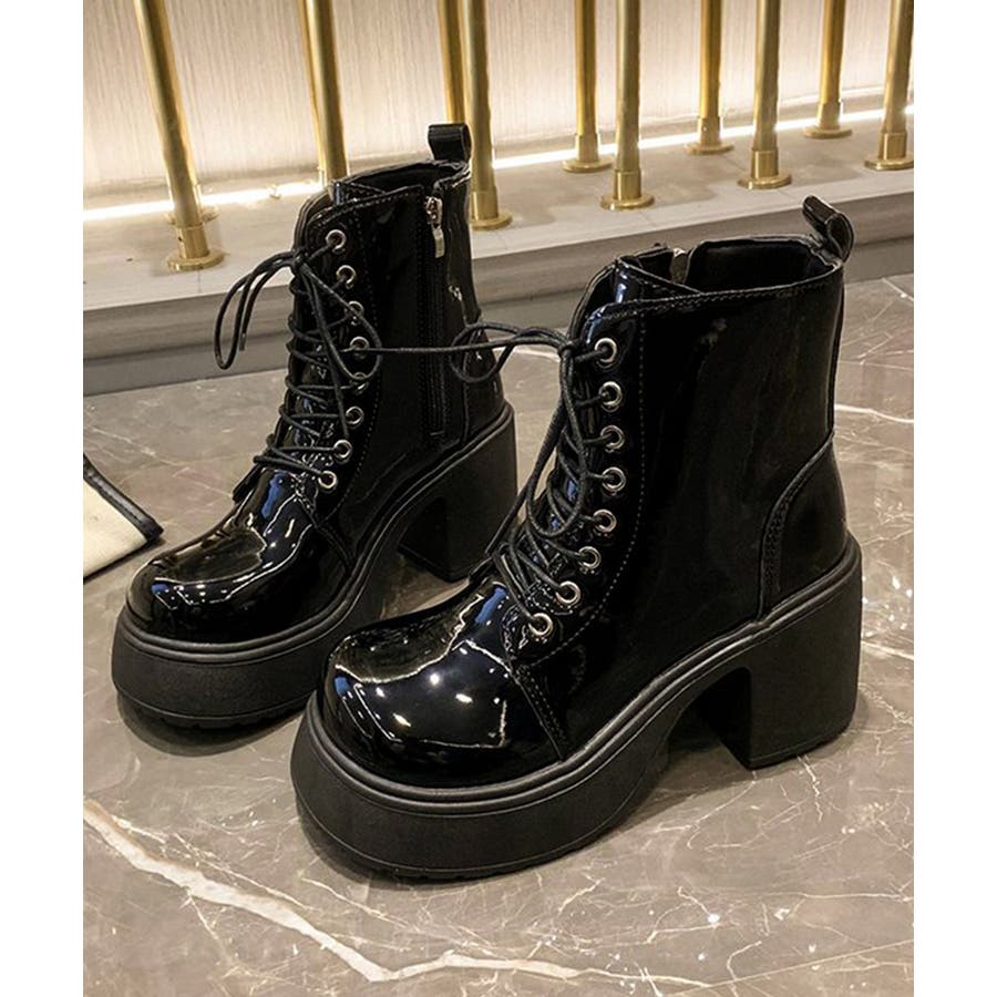 レースアップデザインながら便利なファスナー付きで、脱ぎ履きがスムーズ。