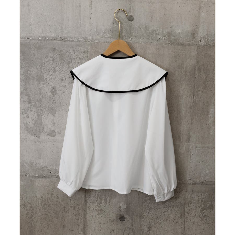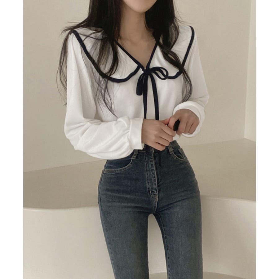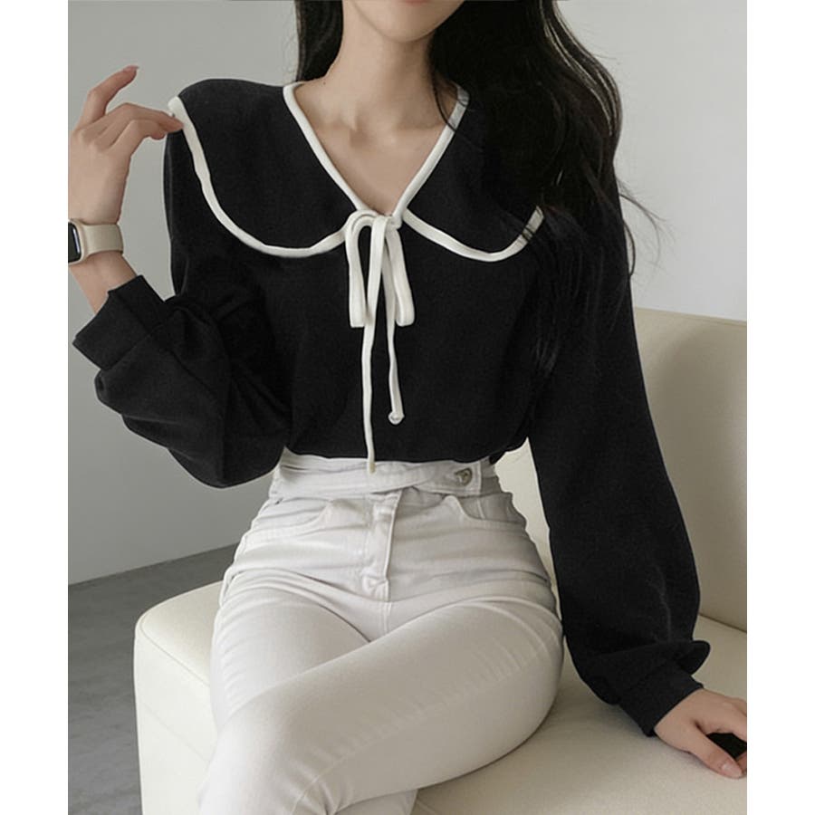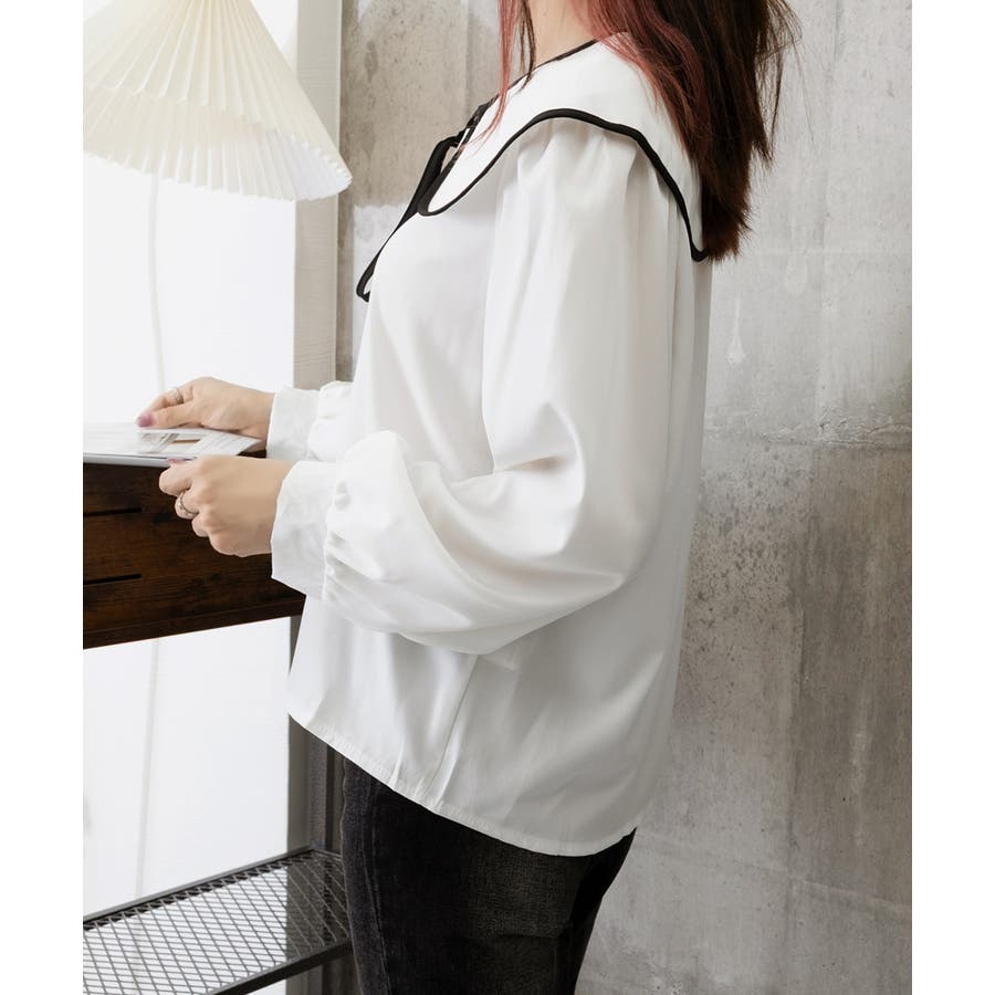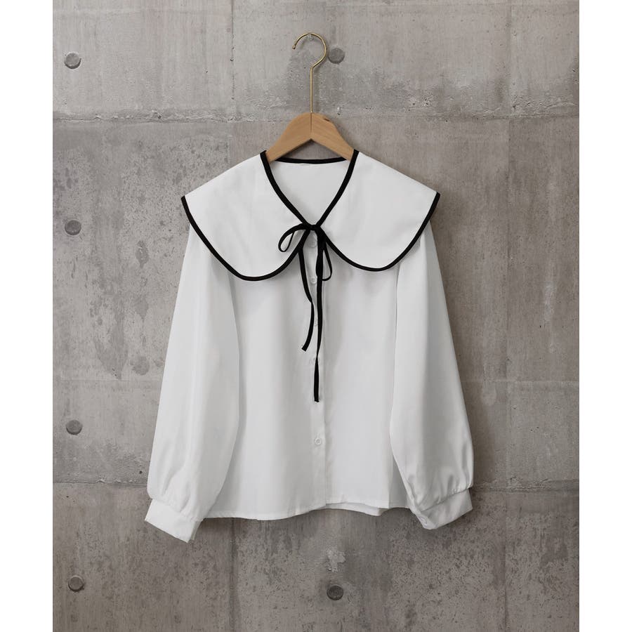 フレンチムード漂うリボンタイ付きのビッグカラーブラウス。
