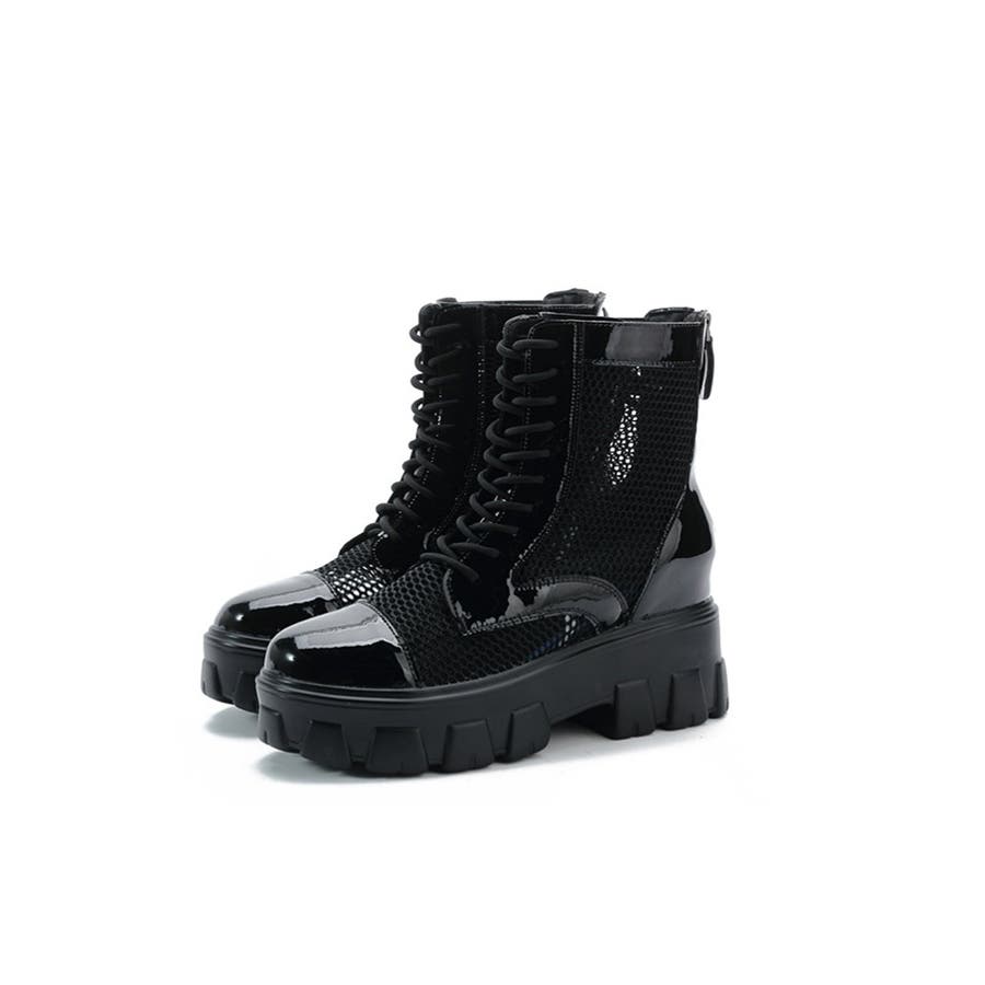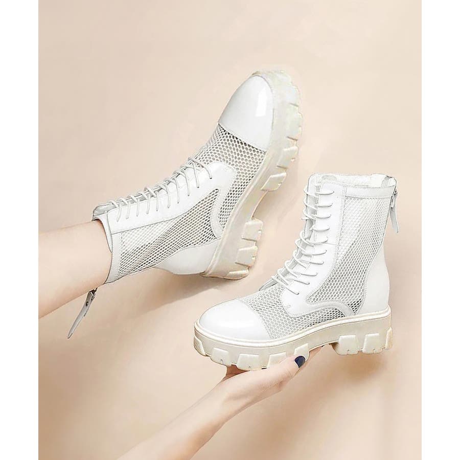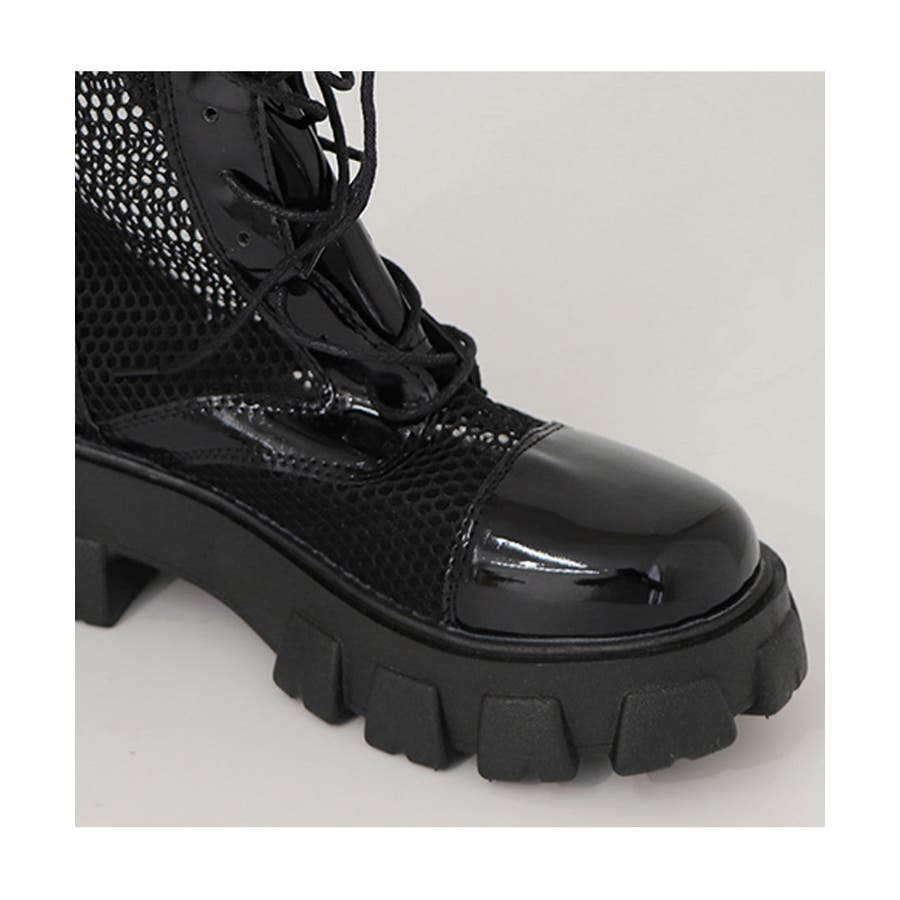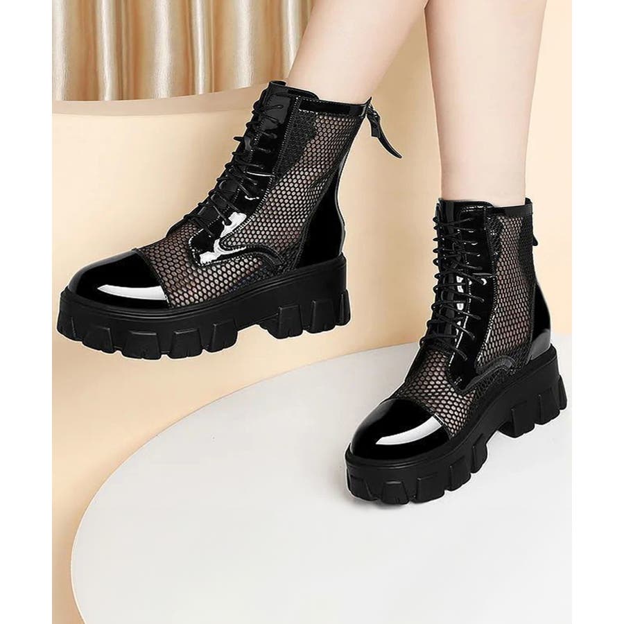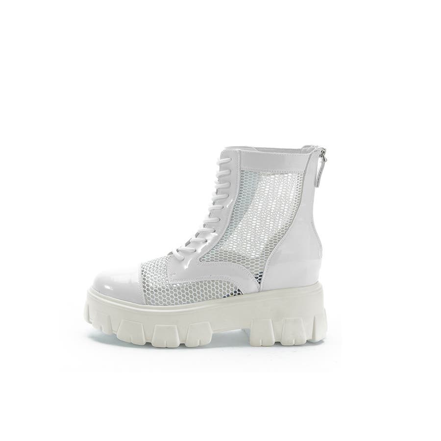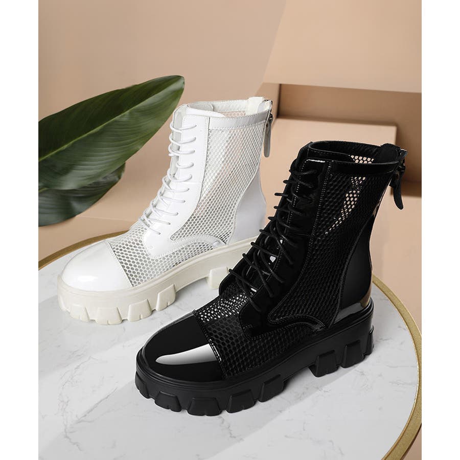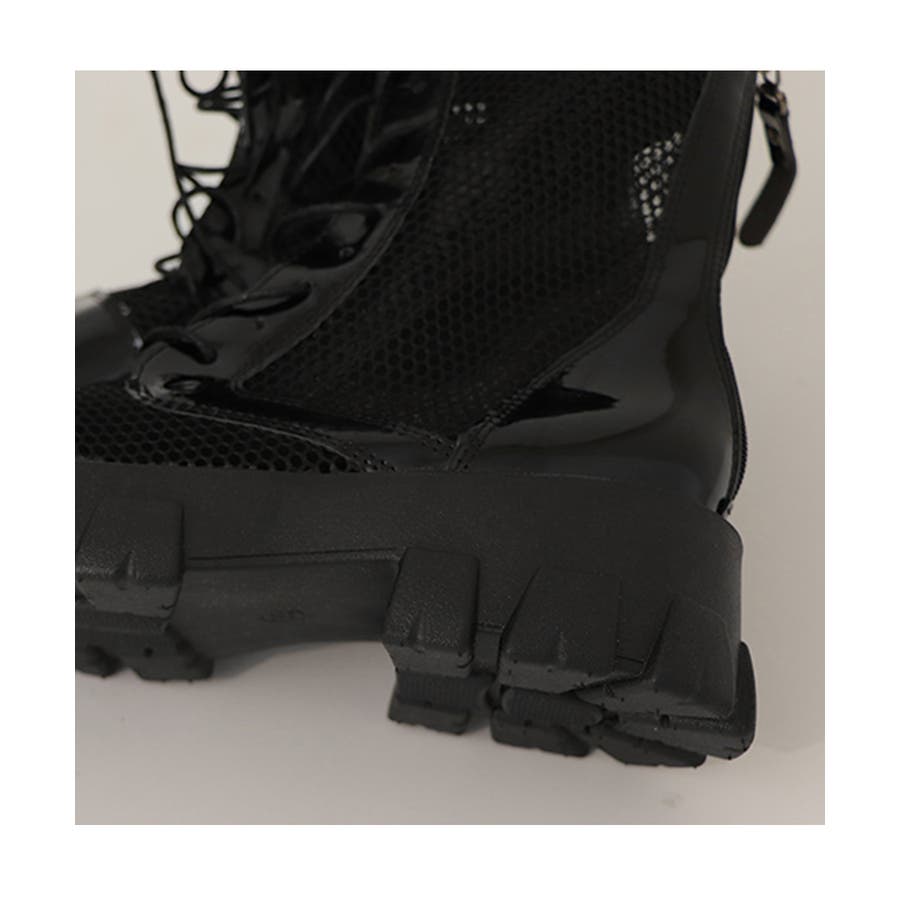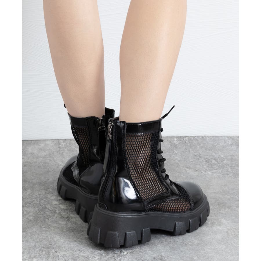 重くなりがちなトラックソールにシアー素材でフェミニンスタイルに大変身するシースルーブーツ