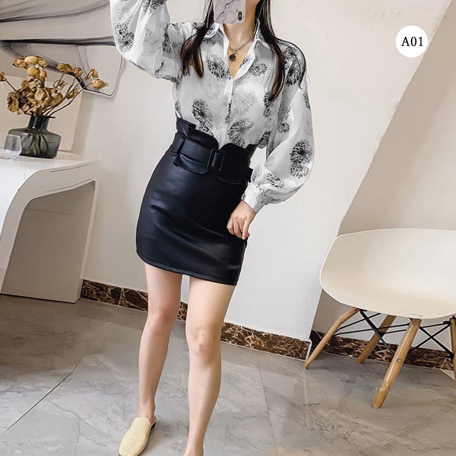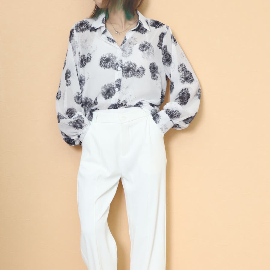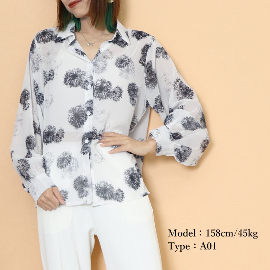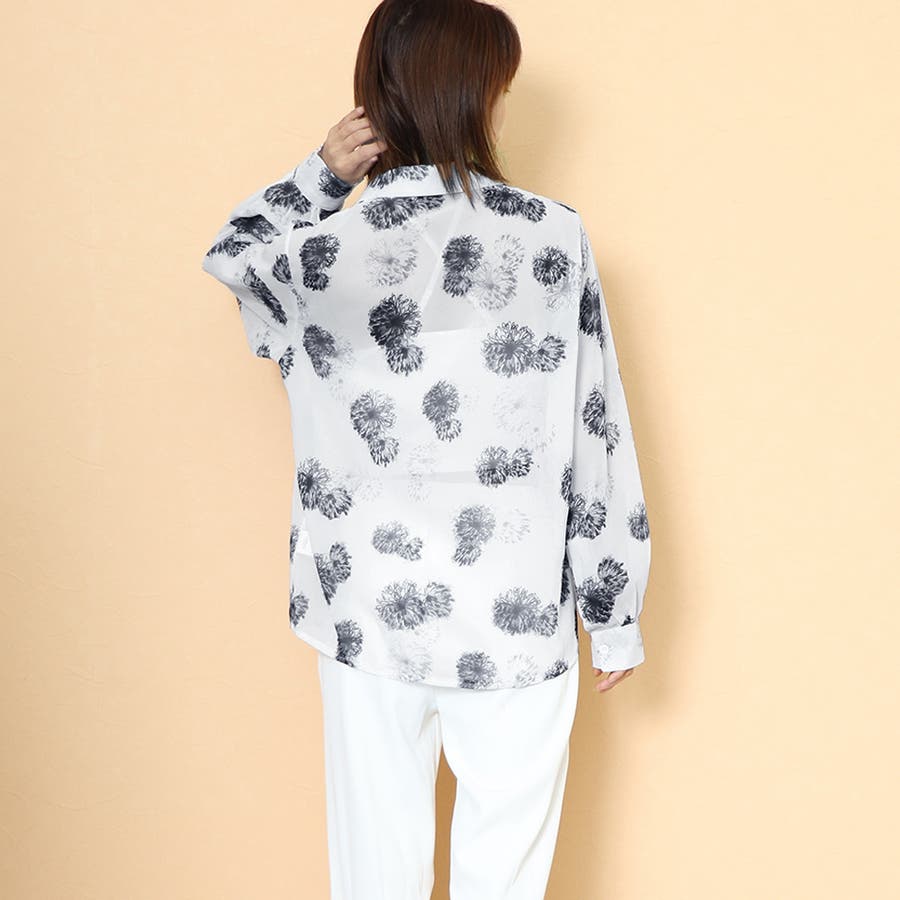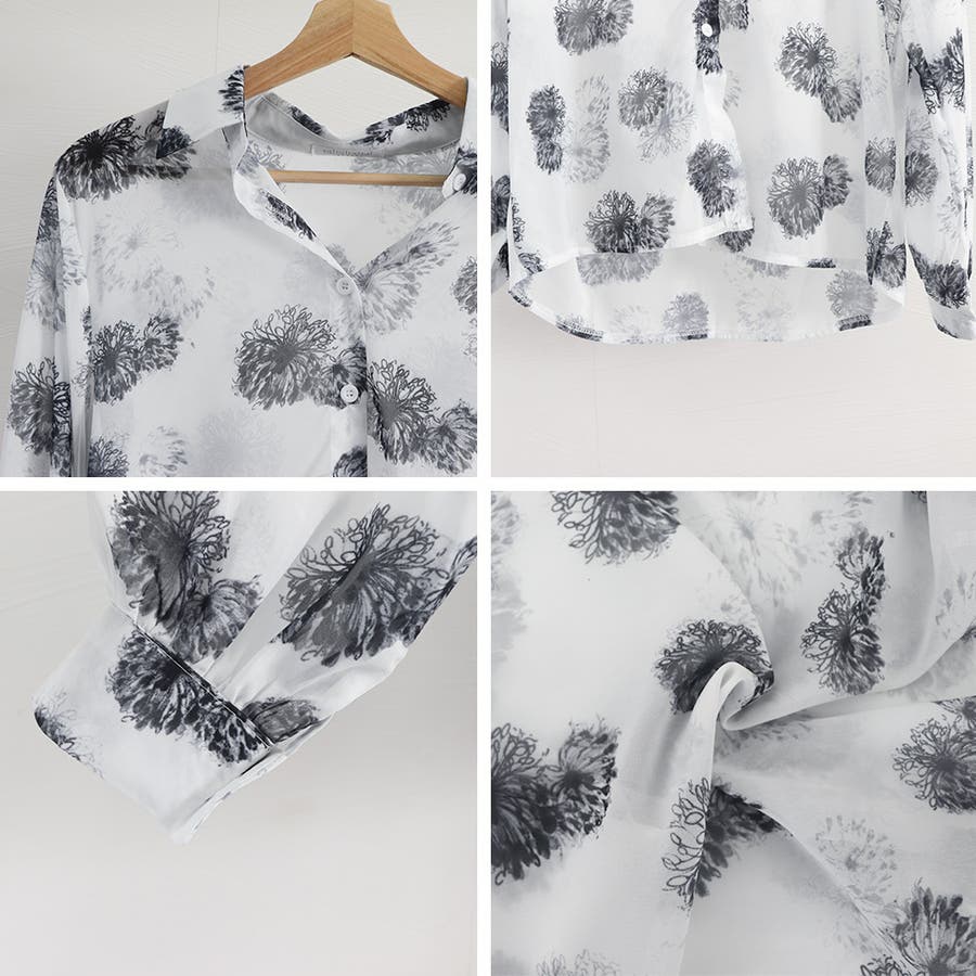 上品な花柄のプリントがシアーな生地に映え、エレガントさを際立たせるシアーシャツです