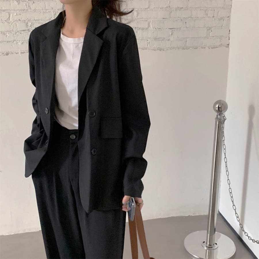 2列のボタンが並ぶデザインは、洗練されたシルエットでこなれた大人顔に。