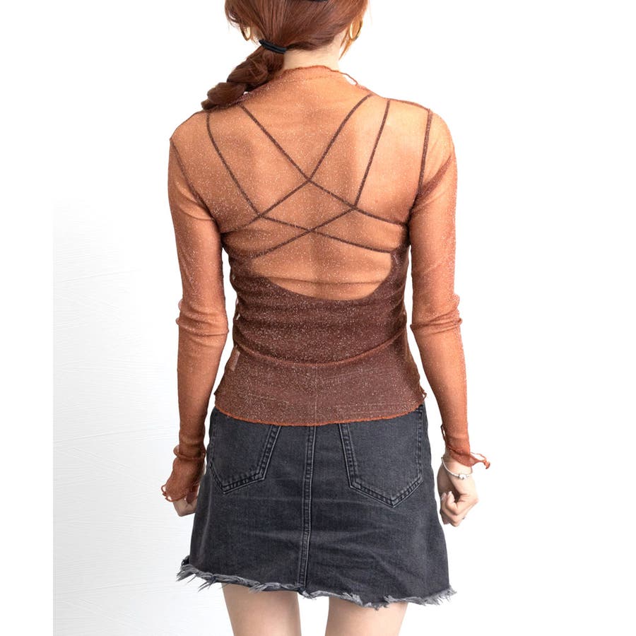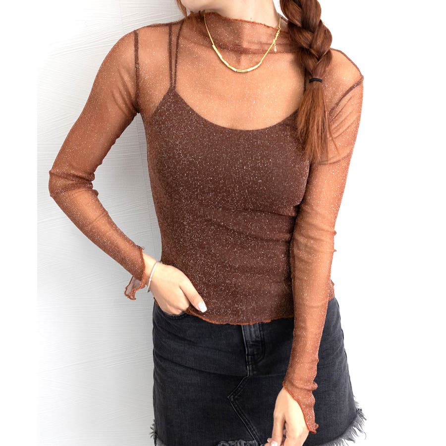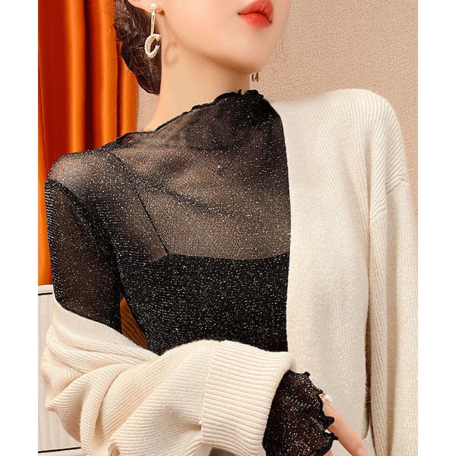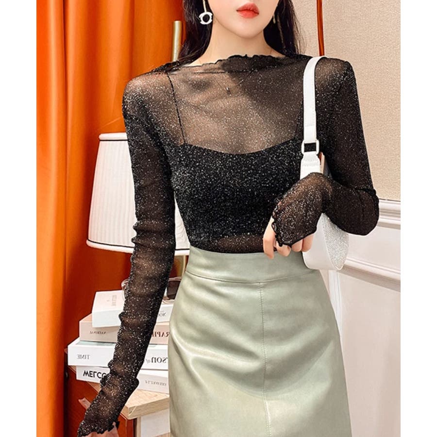 ラメ入り シースルートップス セクシー