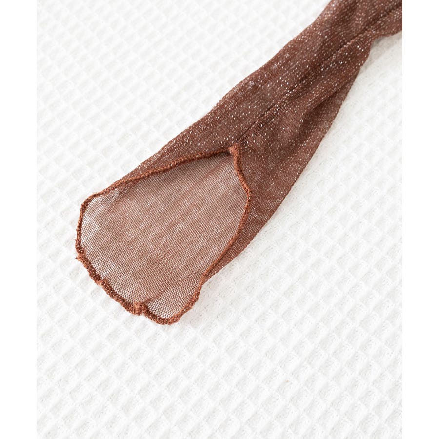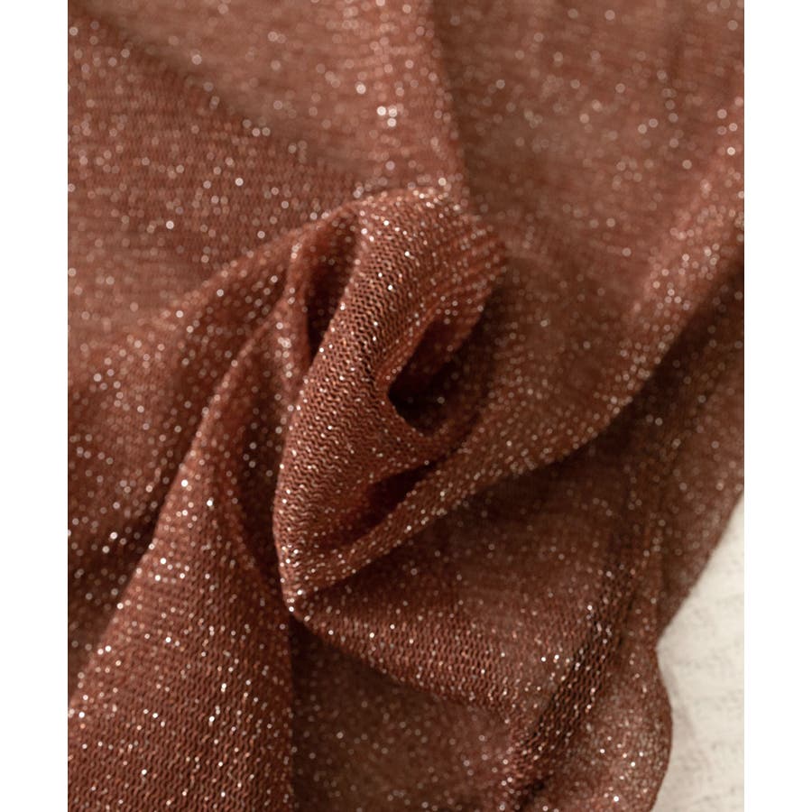 ラメ感のあるデザインでコーディネートを華やかに仕上げるシースルートップス