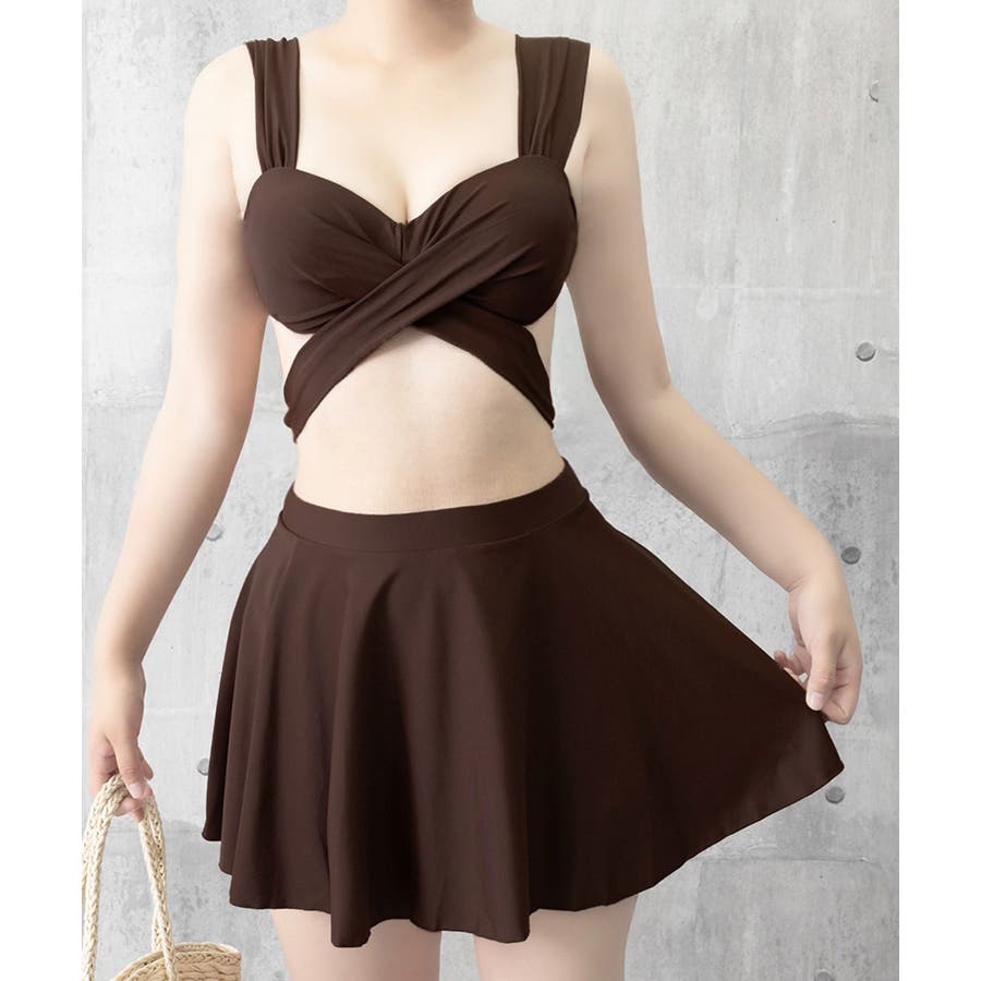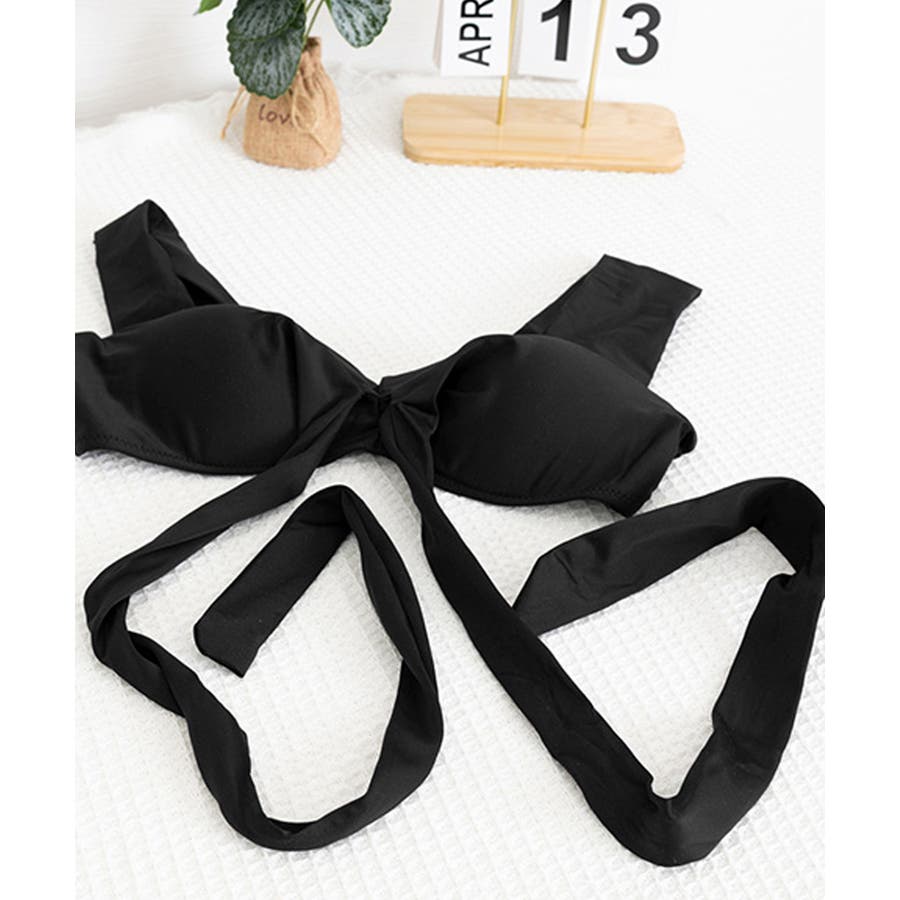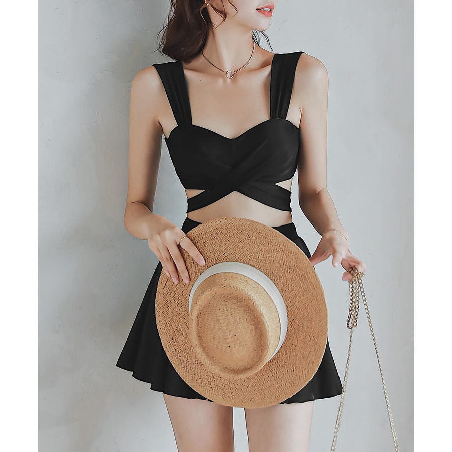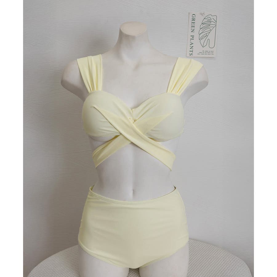 目を惹くセクシーなクロスデザインの水着3点セット。