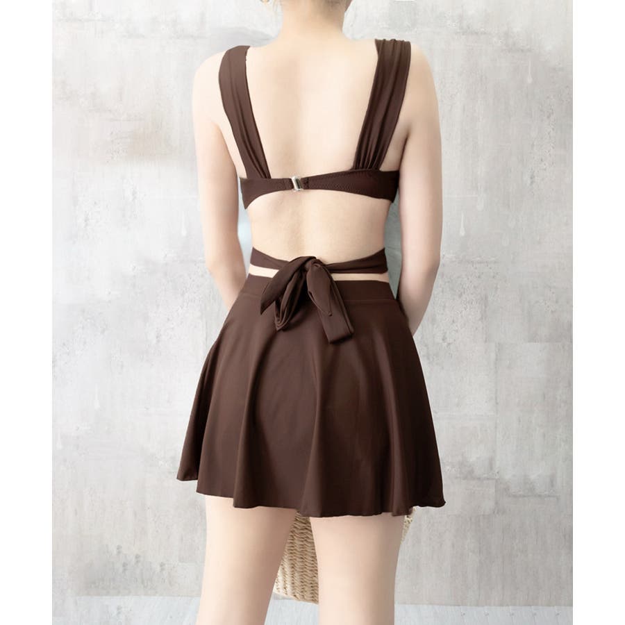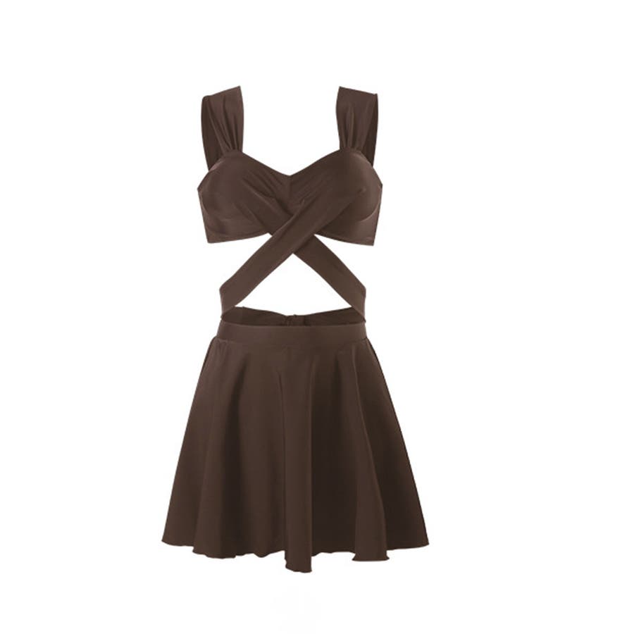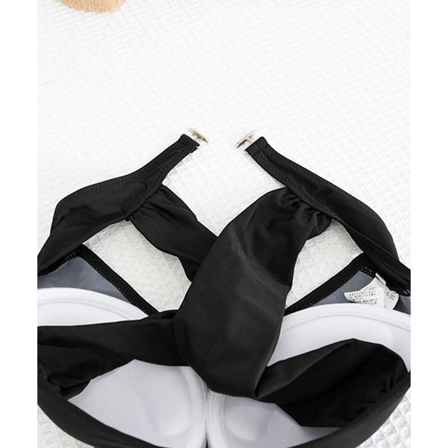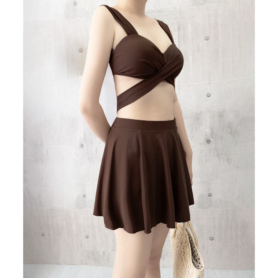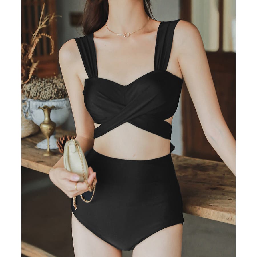 目を惹くセクシーなクロスデザインの水着3点セット。