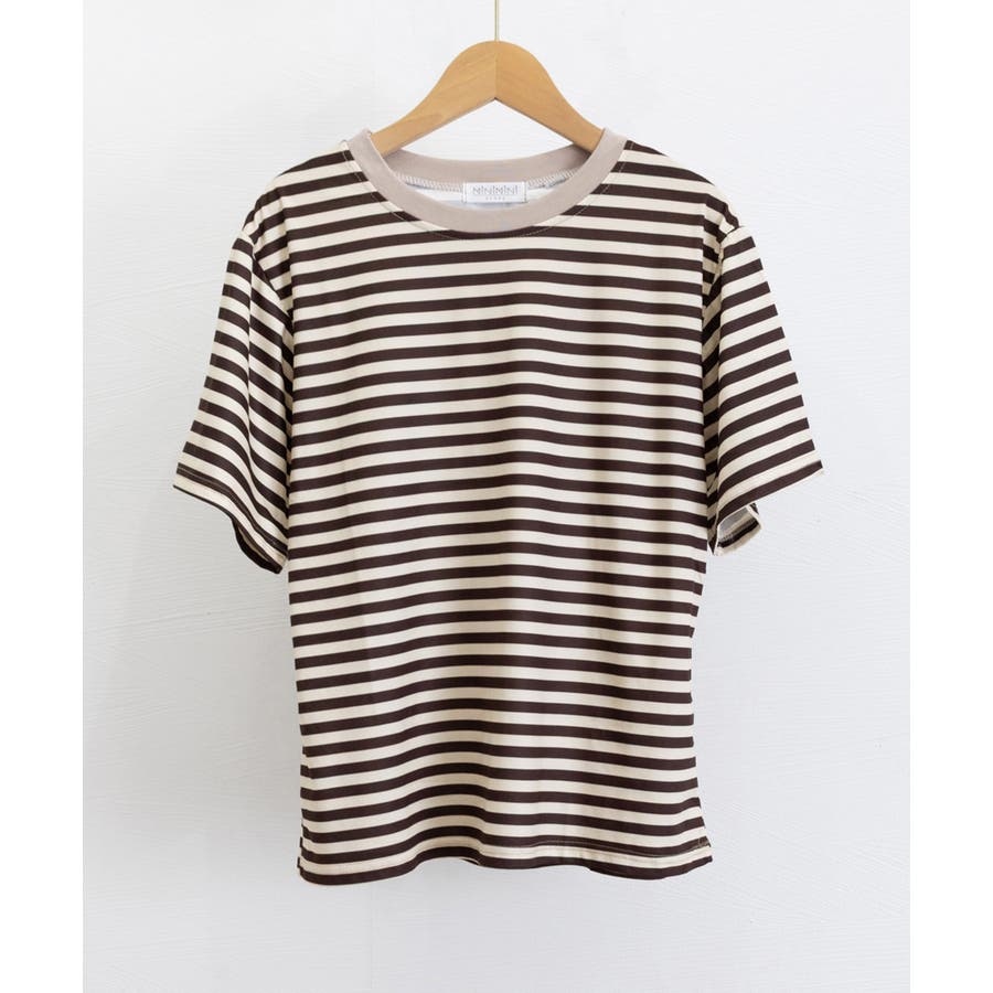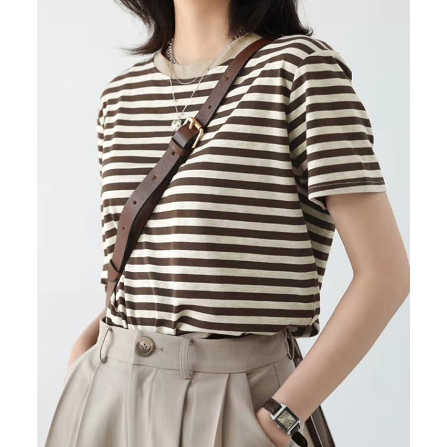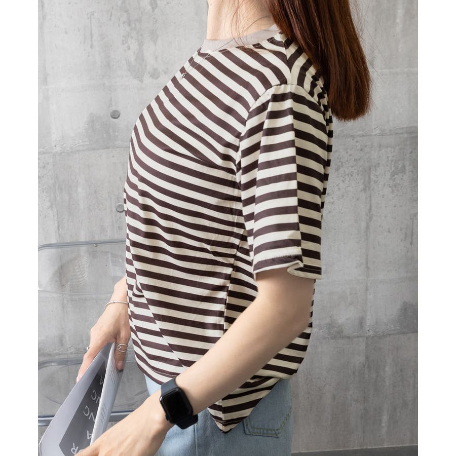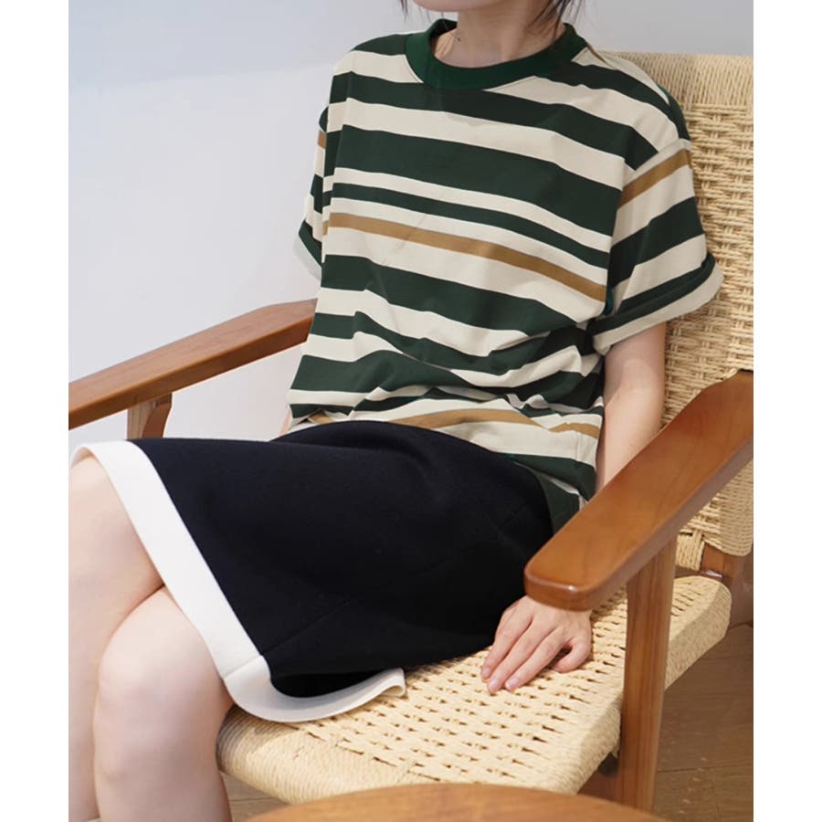 爽やかなボーダー柄が目を引く半袖Tシャツ。