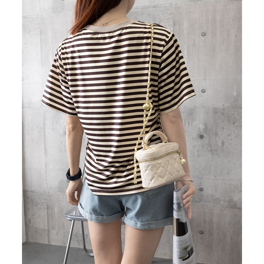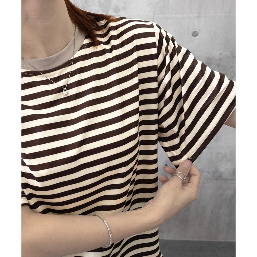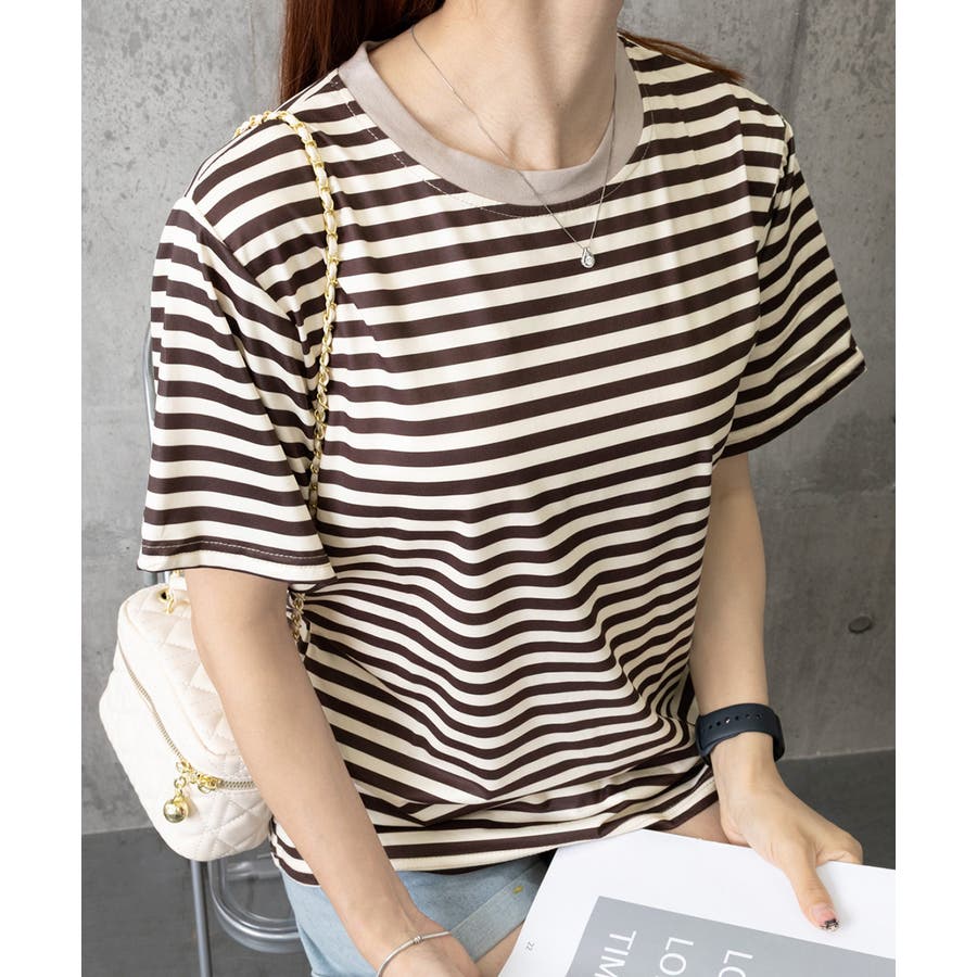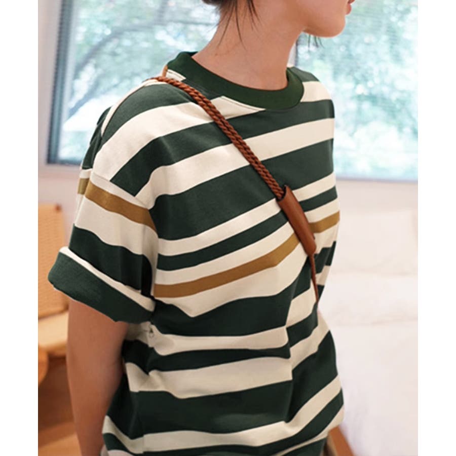 爽やかなボーダー柄が目を引く半袖Tシャツ。