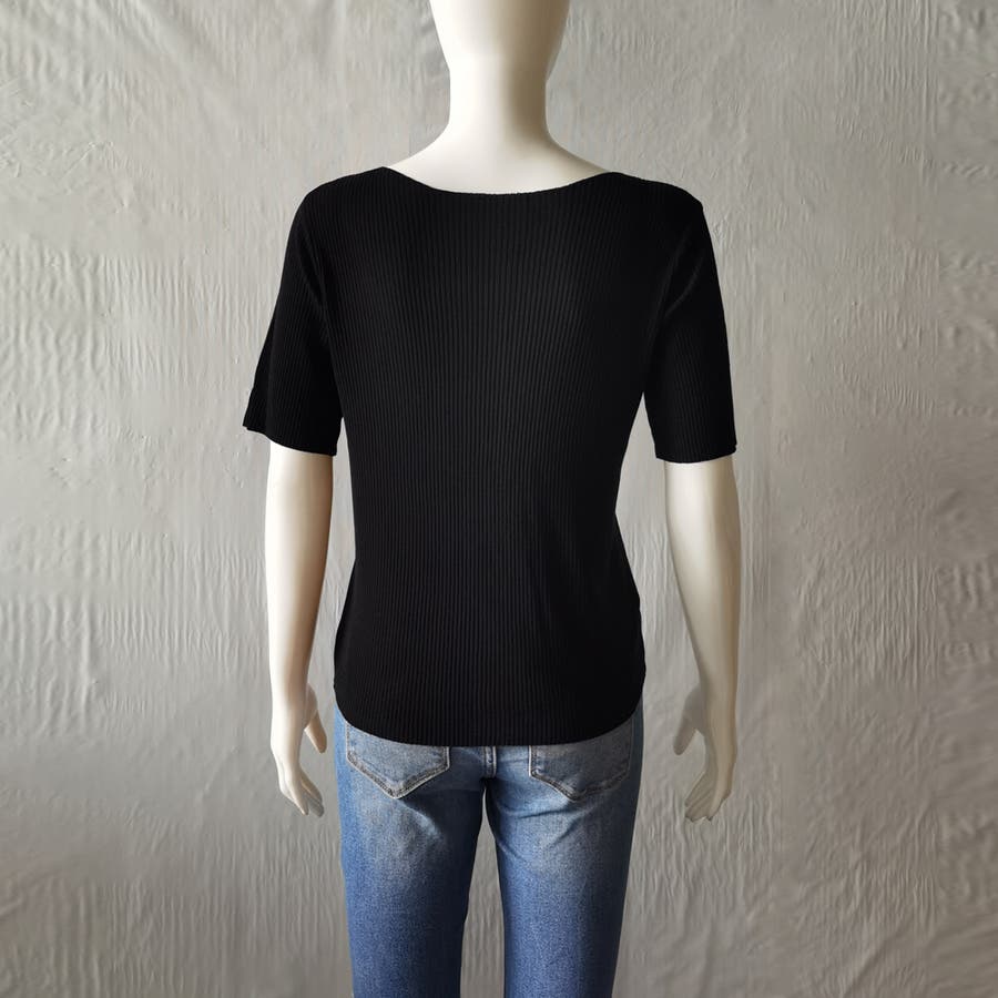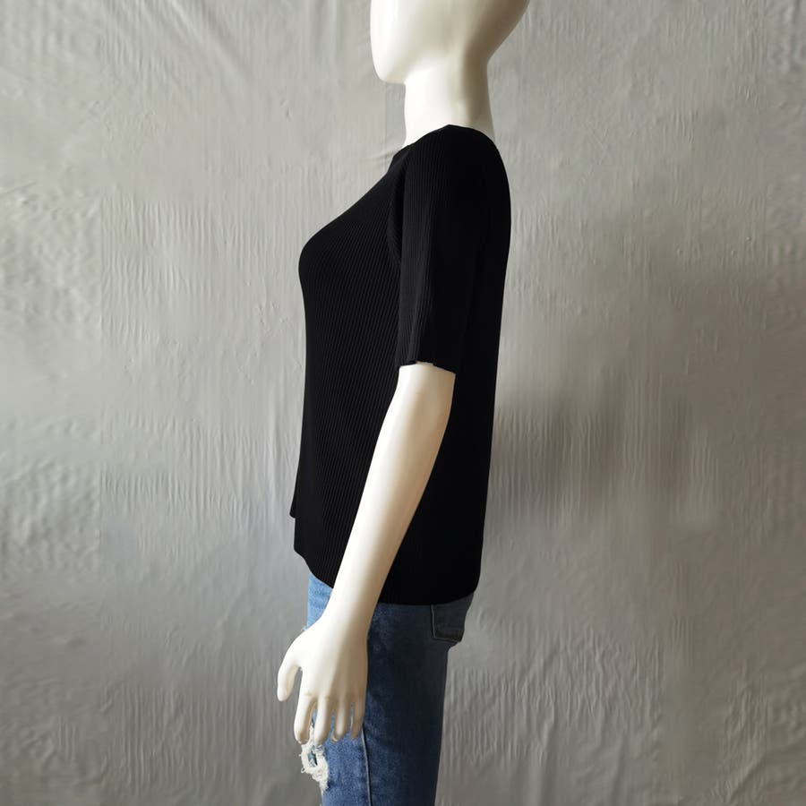 ボディラインを美しく見せる伸縮性抜群のニットトップス