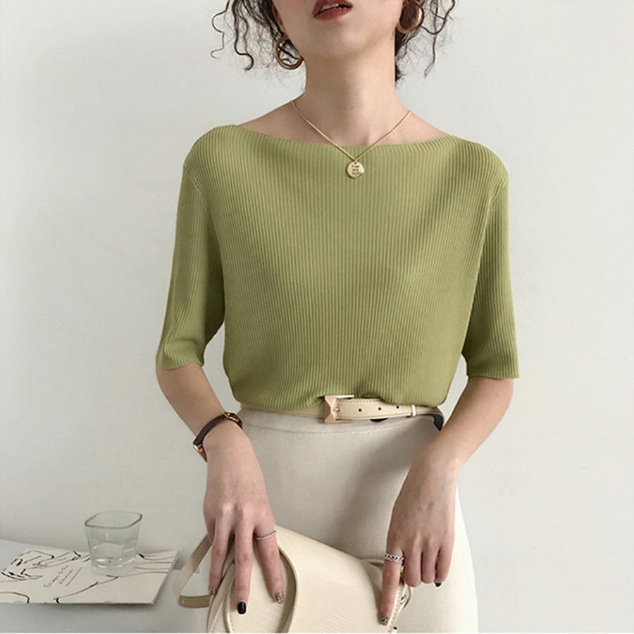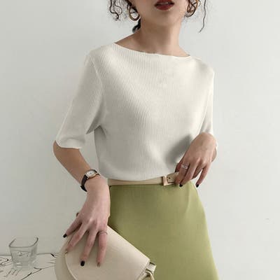 無地のためスカートやパンツもどのようなものでも合わせやすい一着です