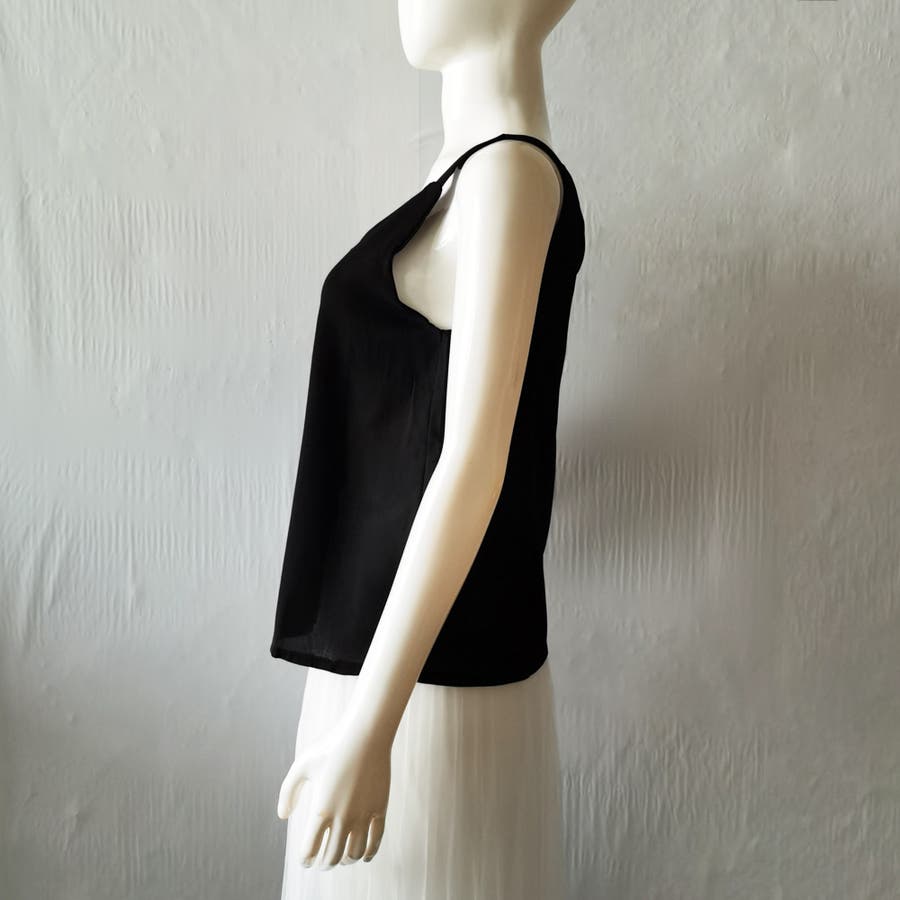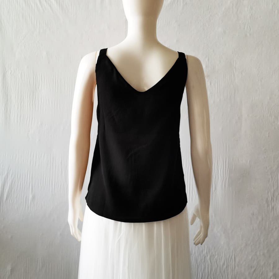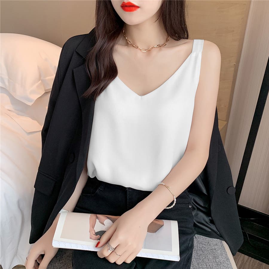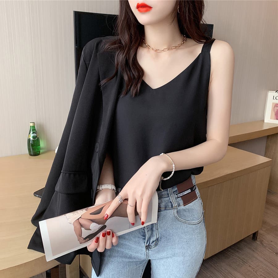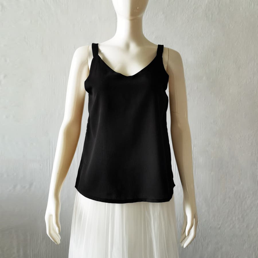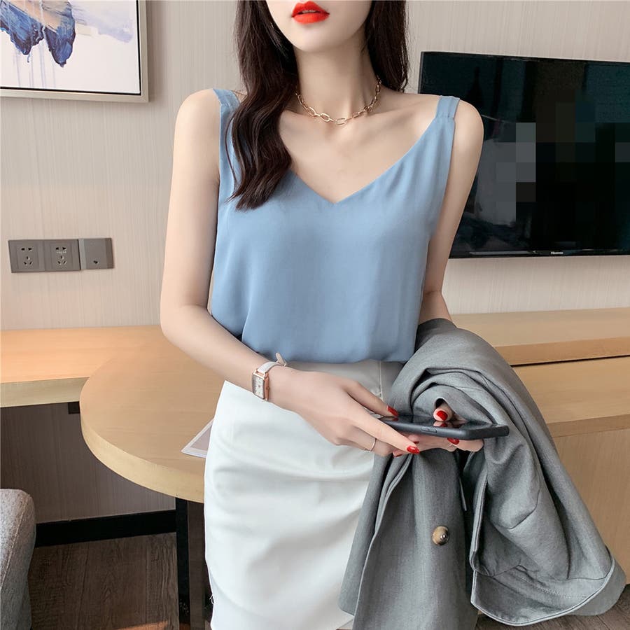 Vネックで女性らしいシルエット、涼しげで透け感のあるエレガントなシフォンキャミソール
