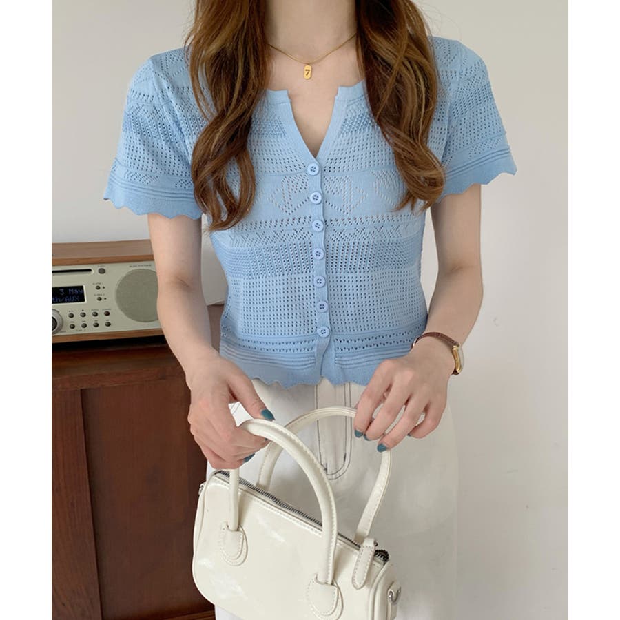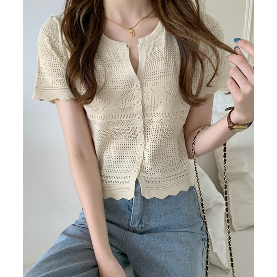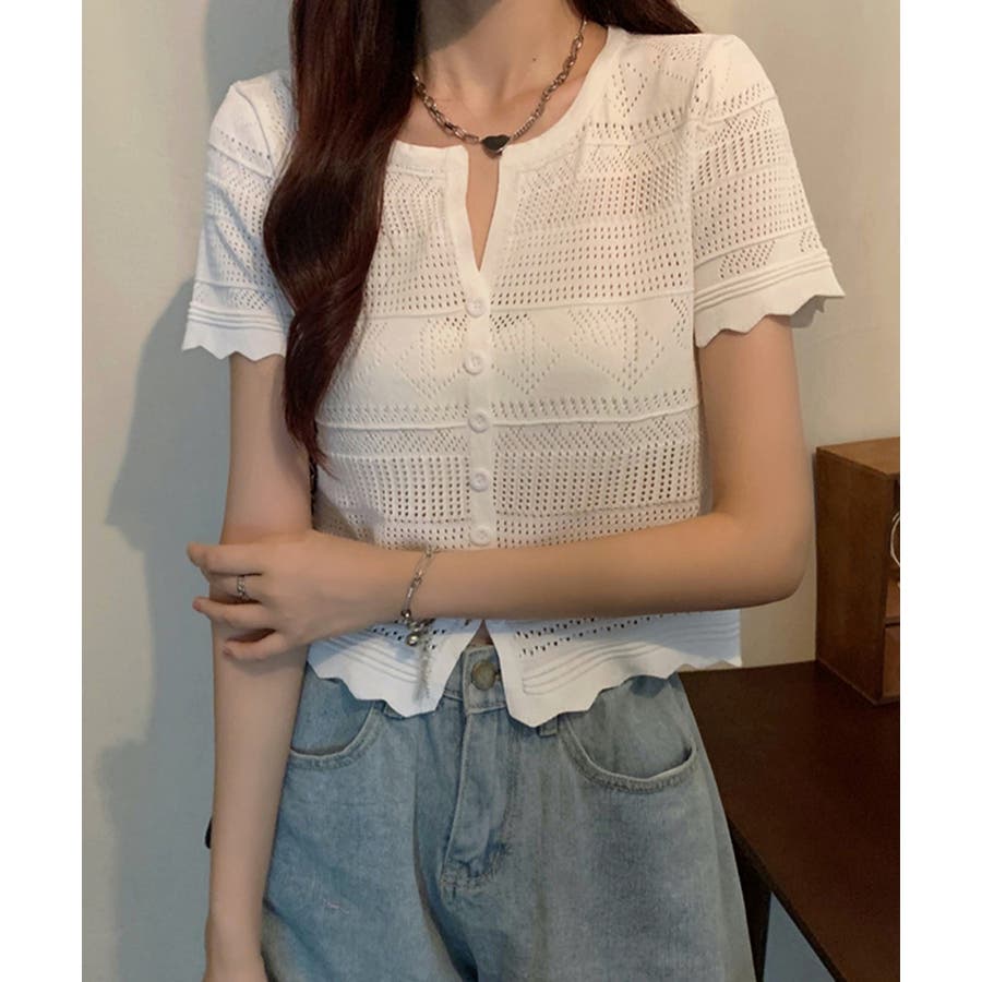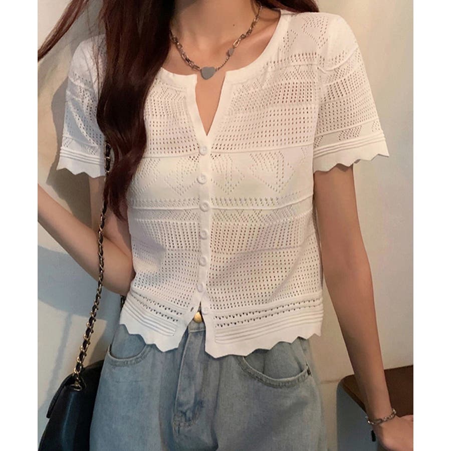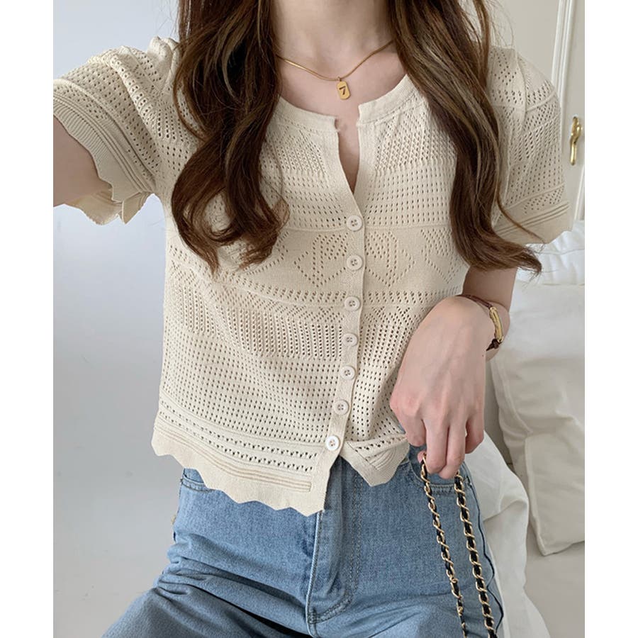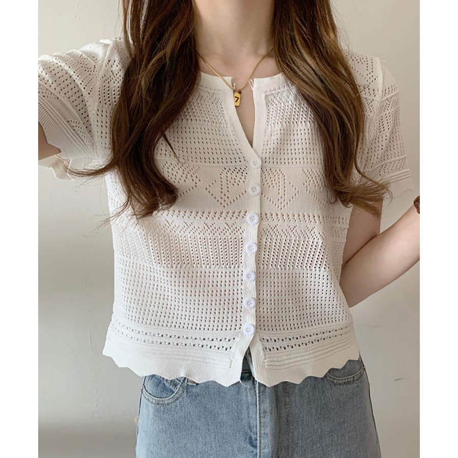 繊細な透かし柄デザイン透かし編みサマーニットカーディガン