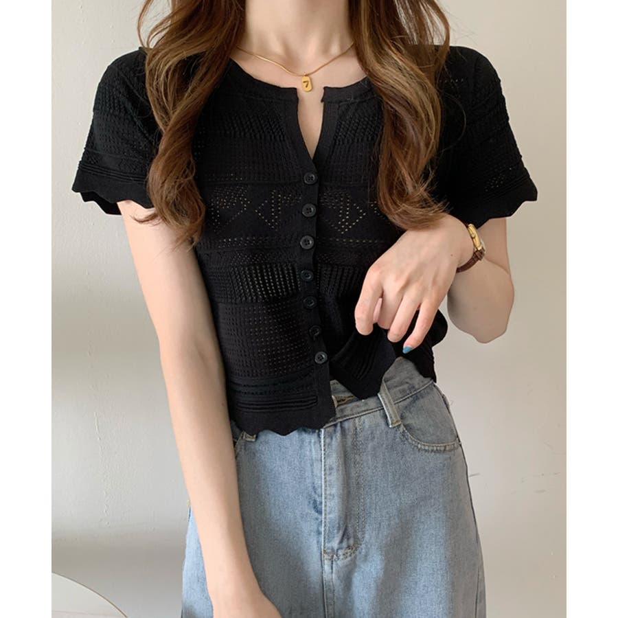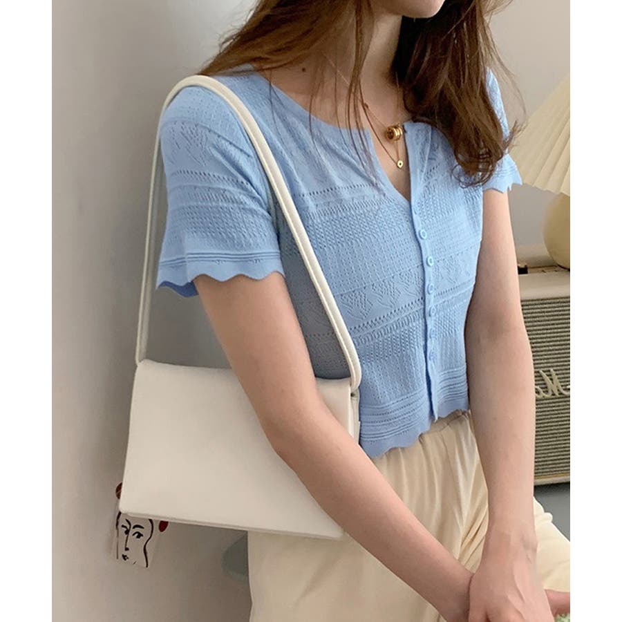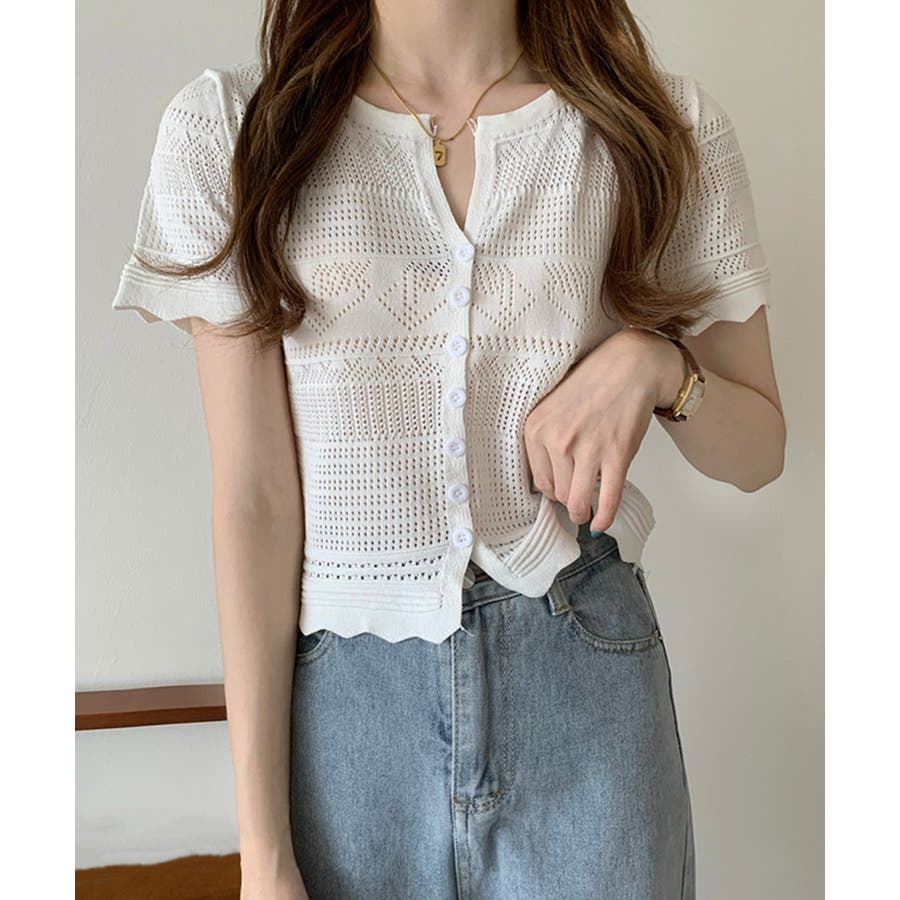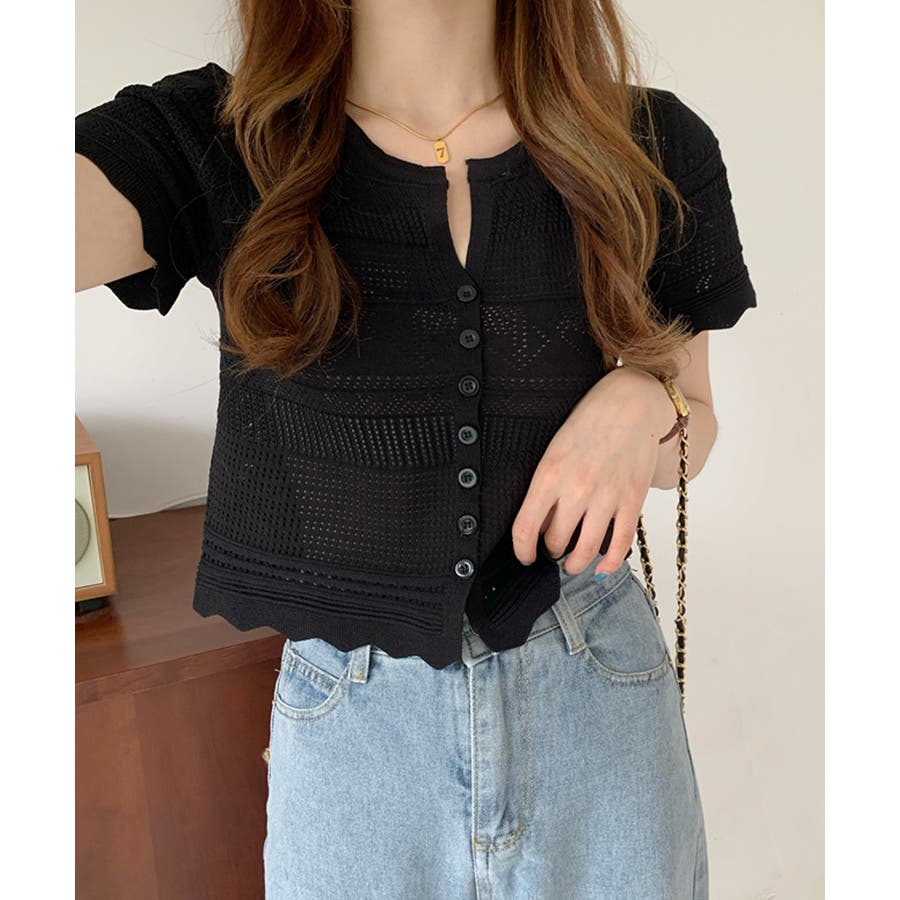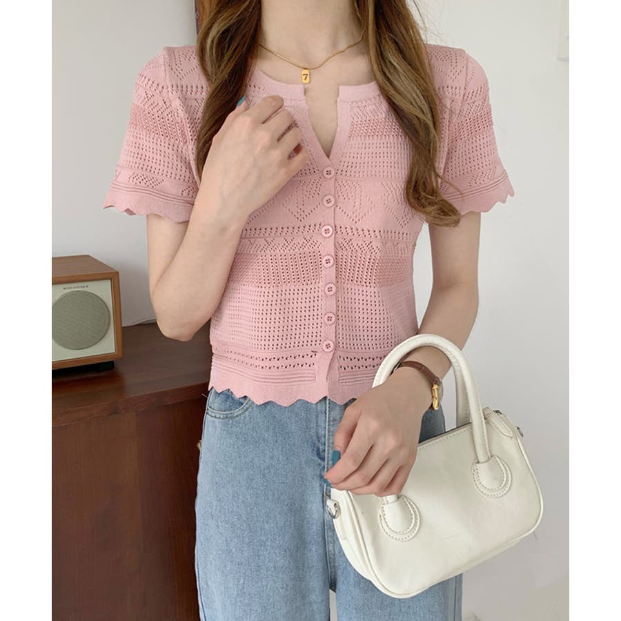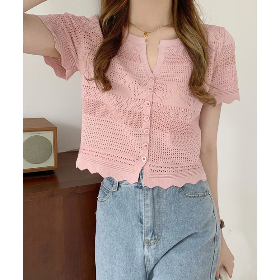 繊細な透かし柄デザイン透かし編みサマーニットカーディガン