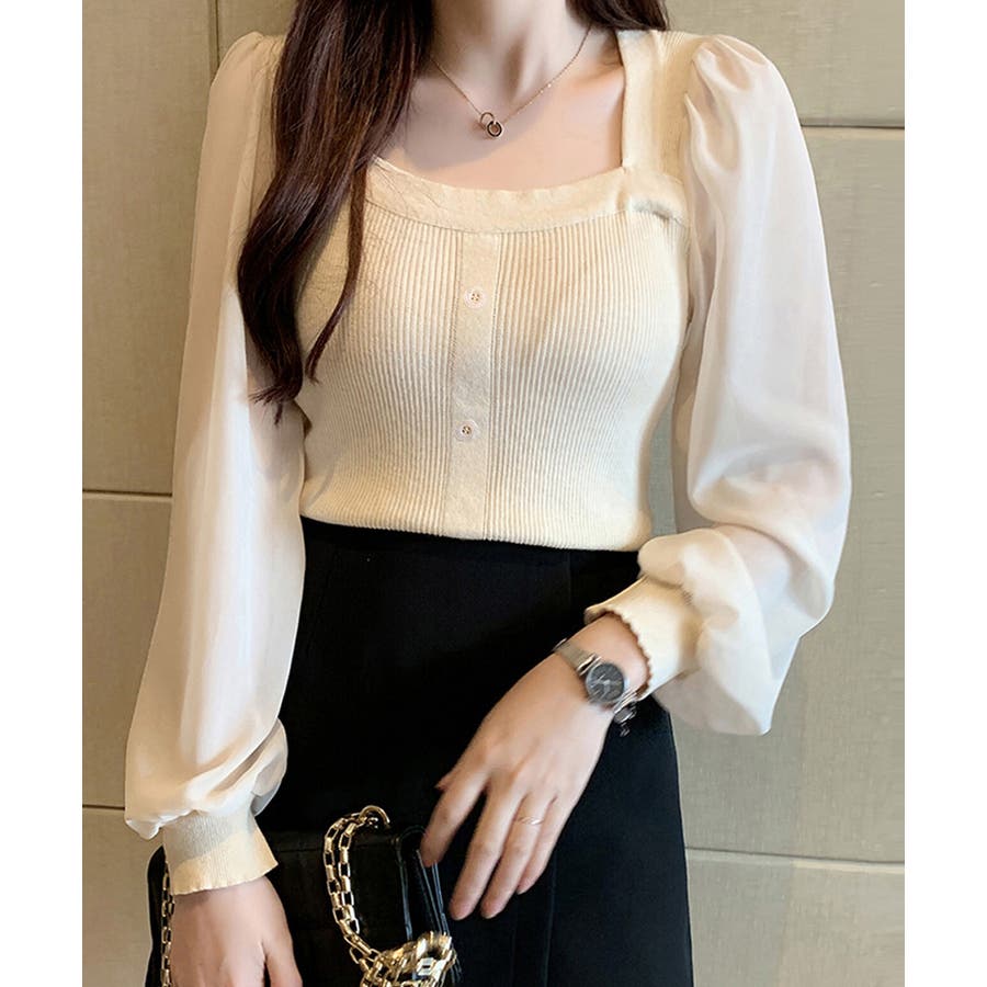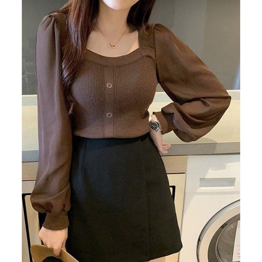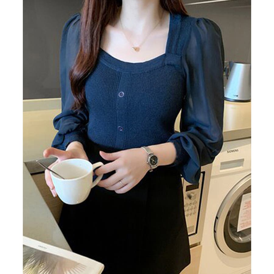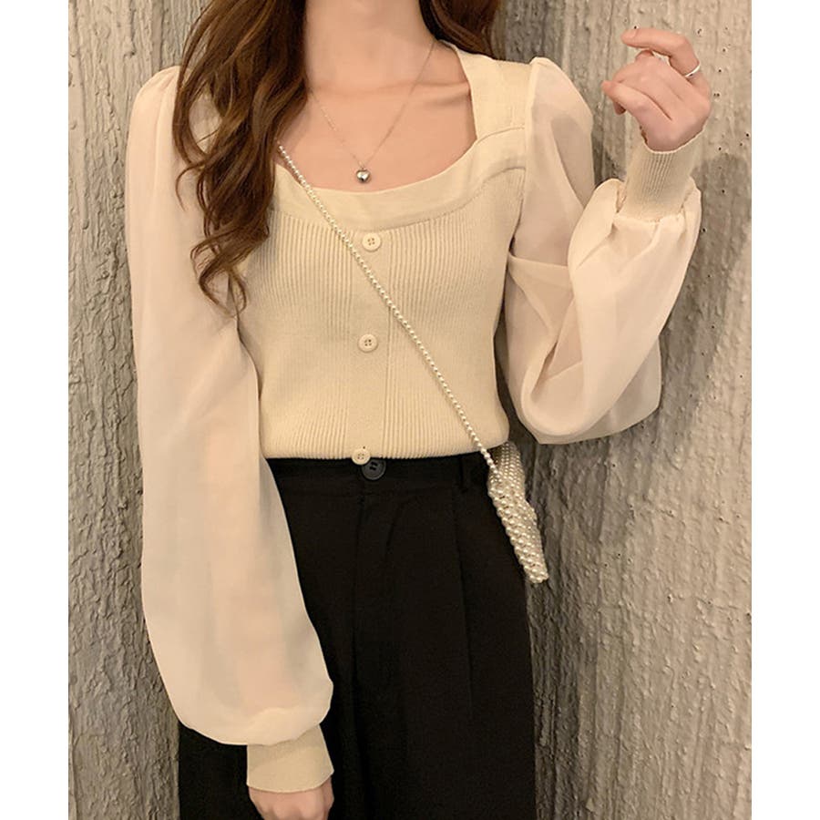 韓国風 ブラウス 長袖 ニットトップ 大人可愛い シャツ