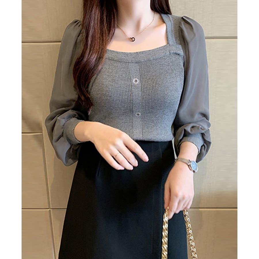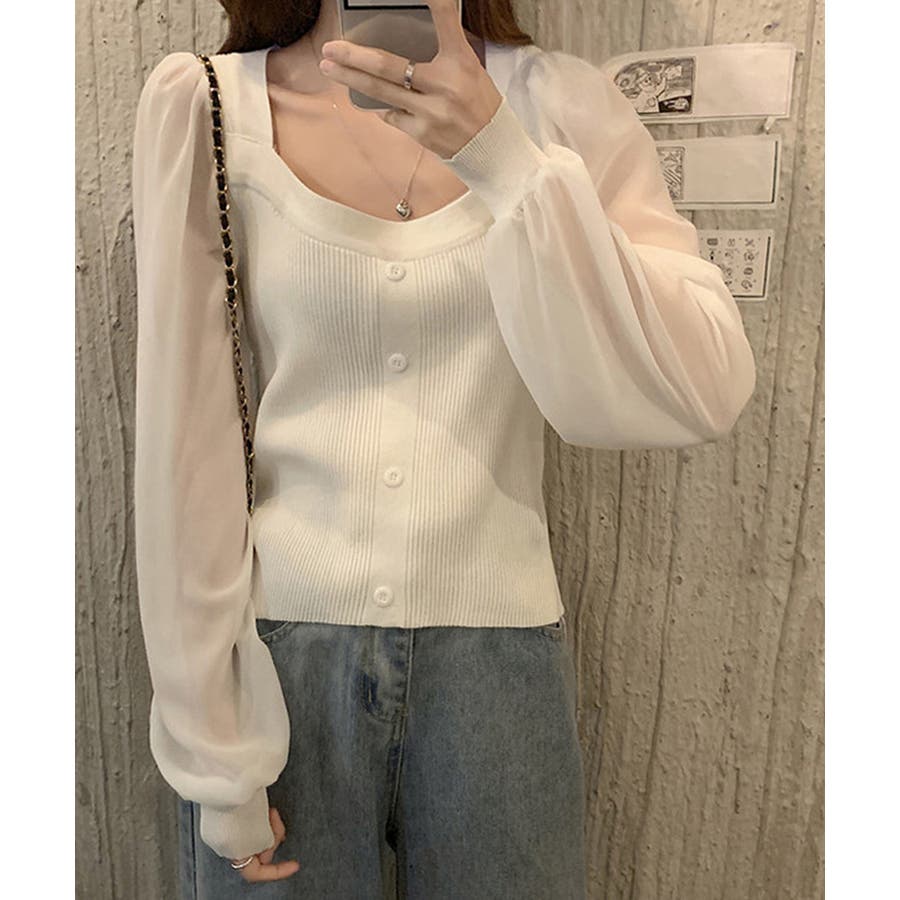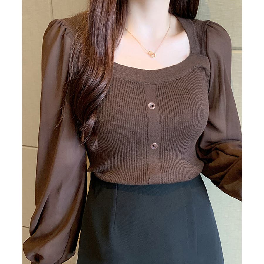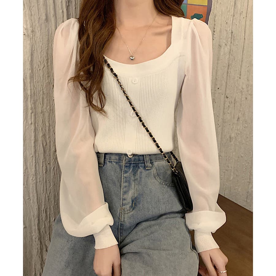 韓国風 ブラウス 長袖 ニットトップ 大人可愛い シャツ