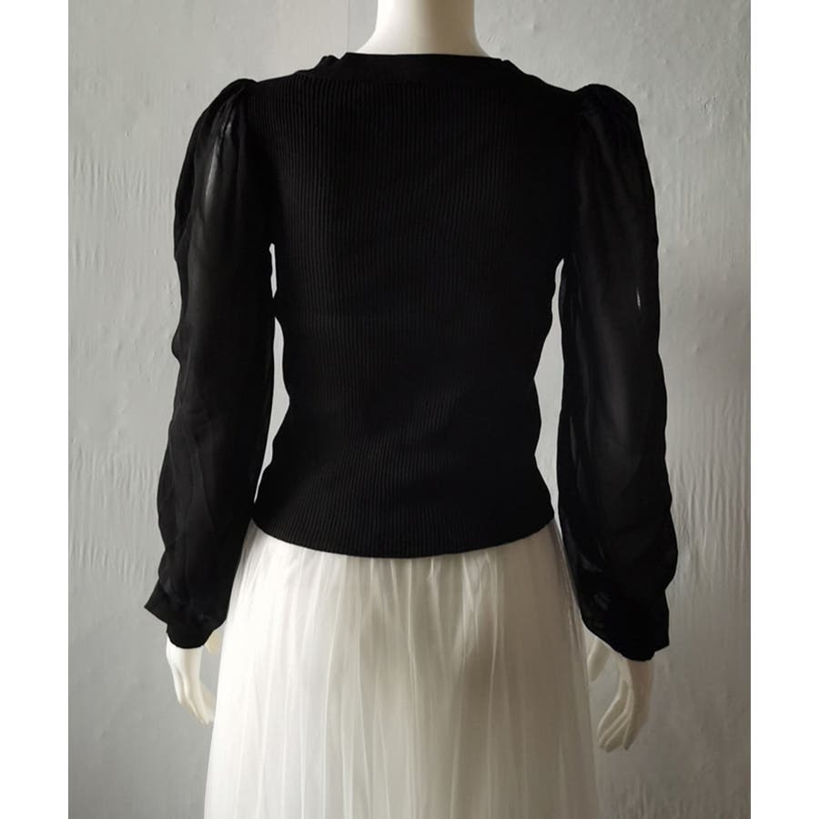 袖から覗く素肌がセンシュアルなシフォン切り替えシャツブラウス