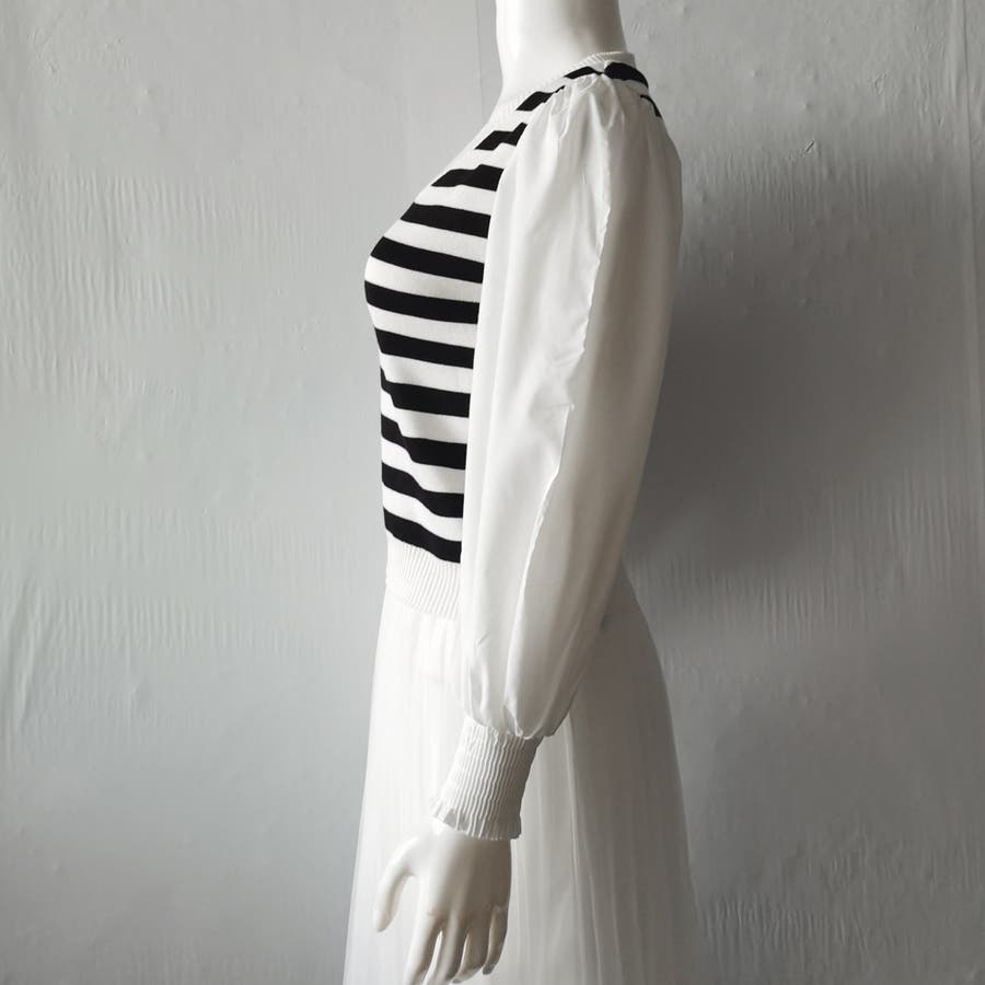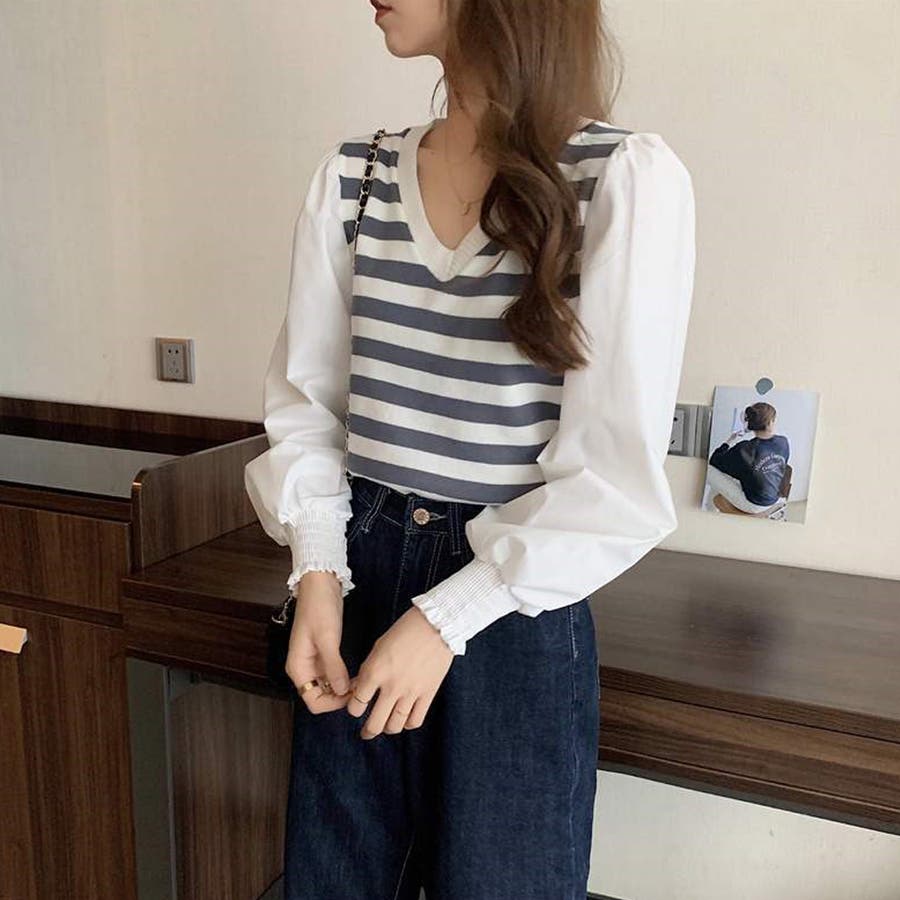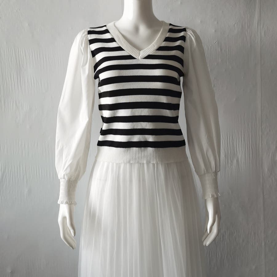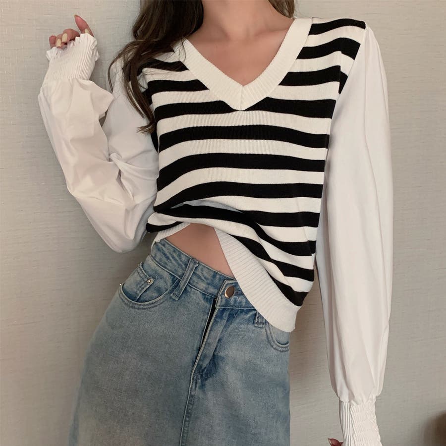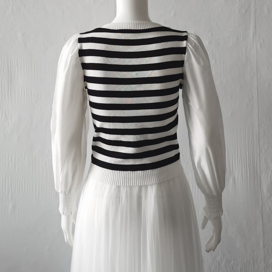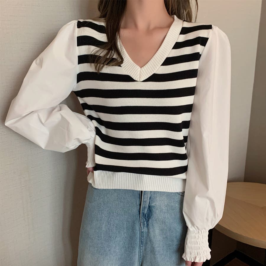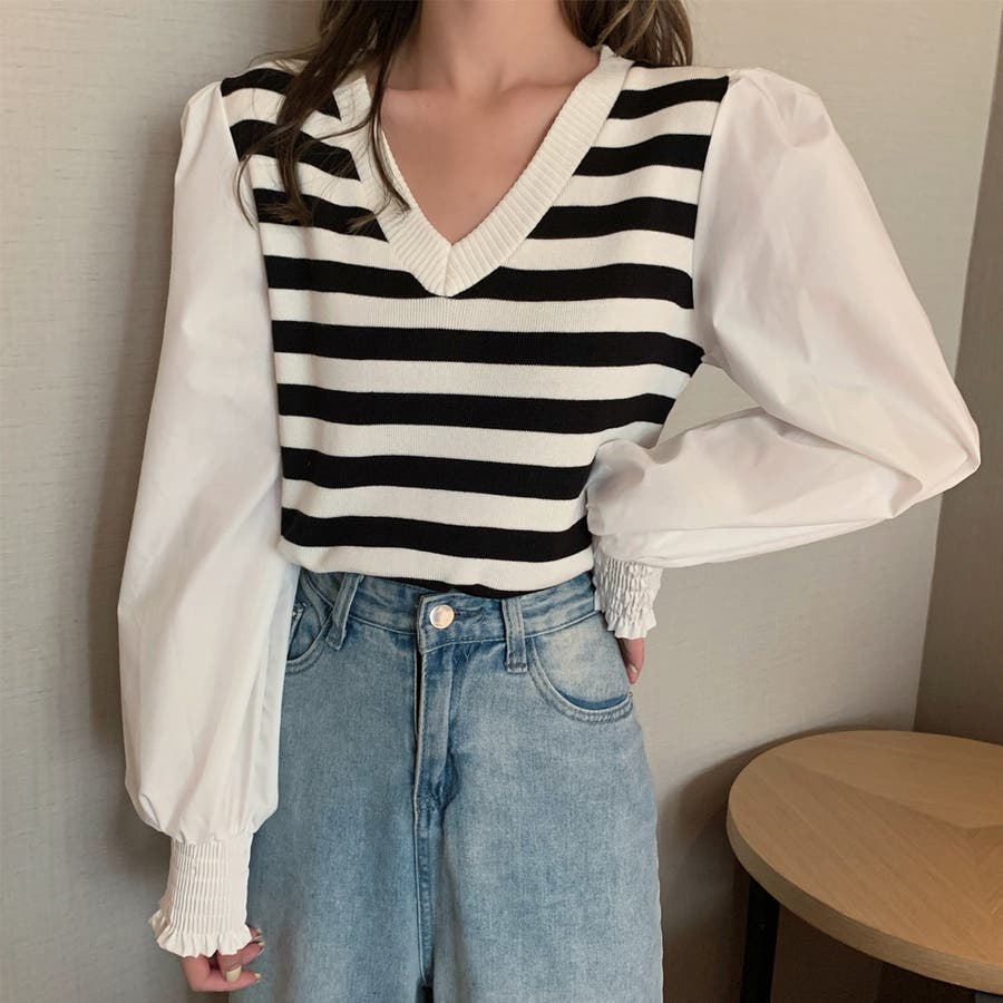 ボーダーとぽわんとしたパフスリーブが可愛いニットトップス