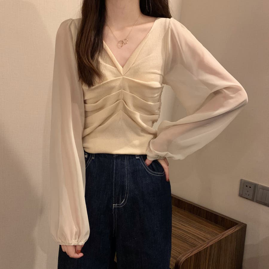 ギャザー ニット ブラウス