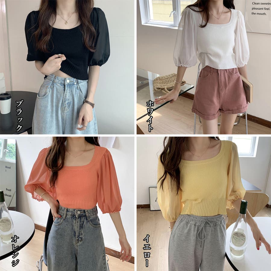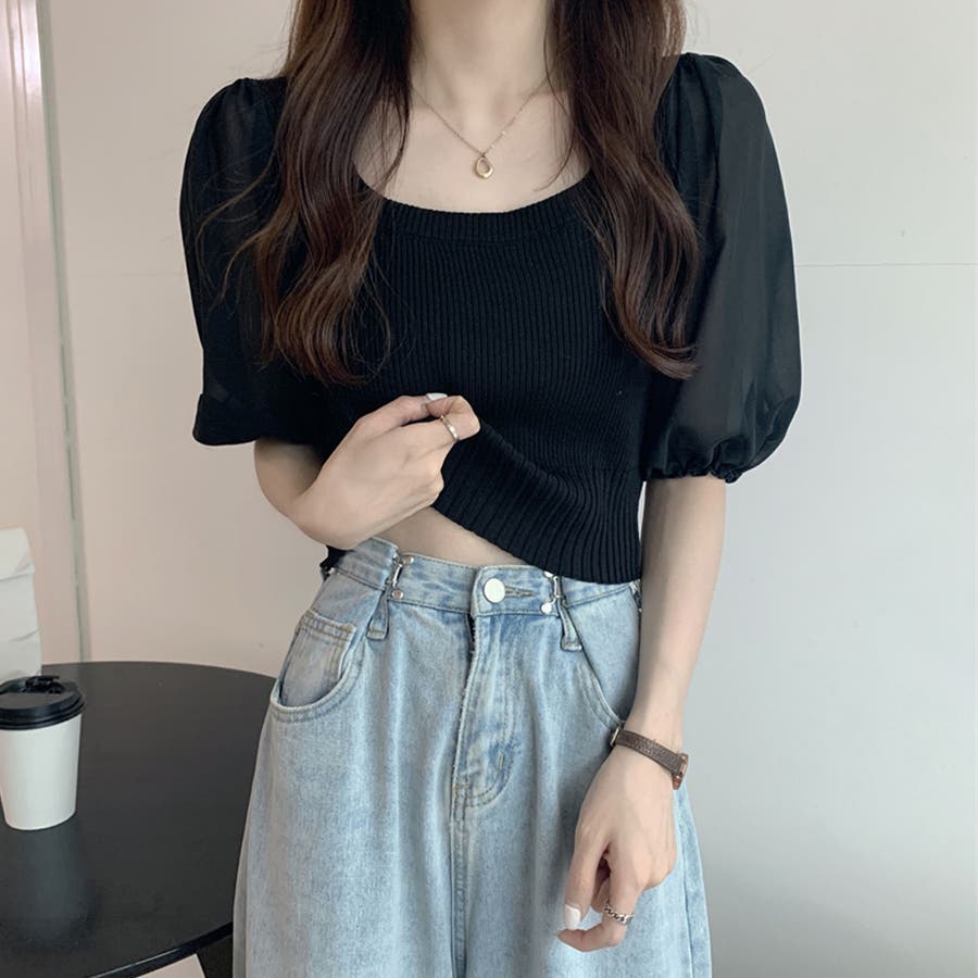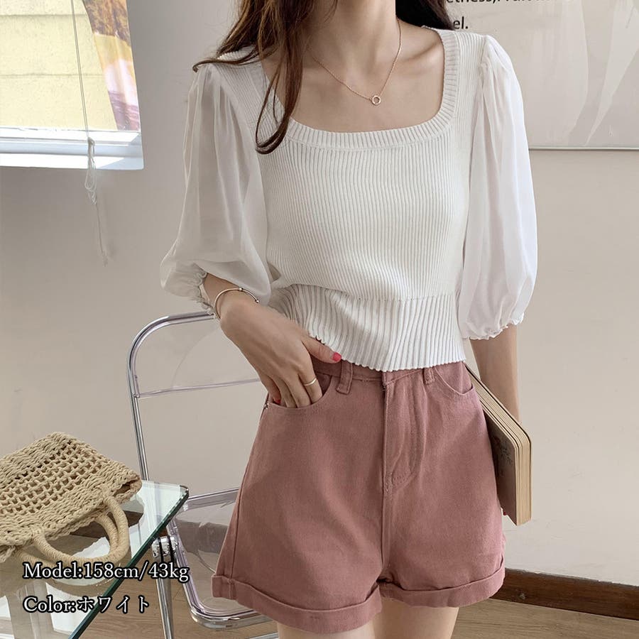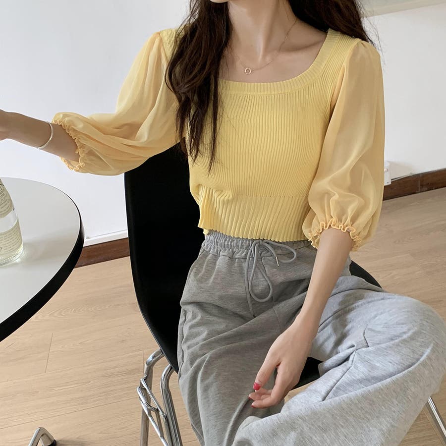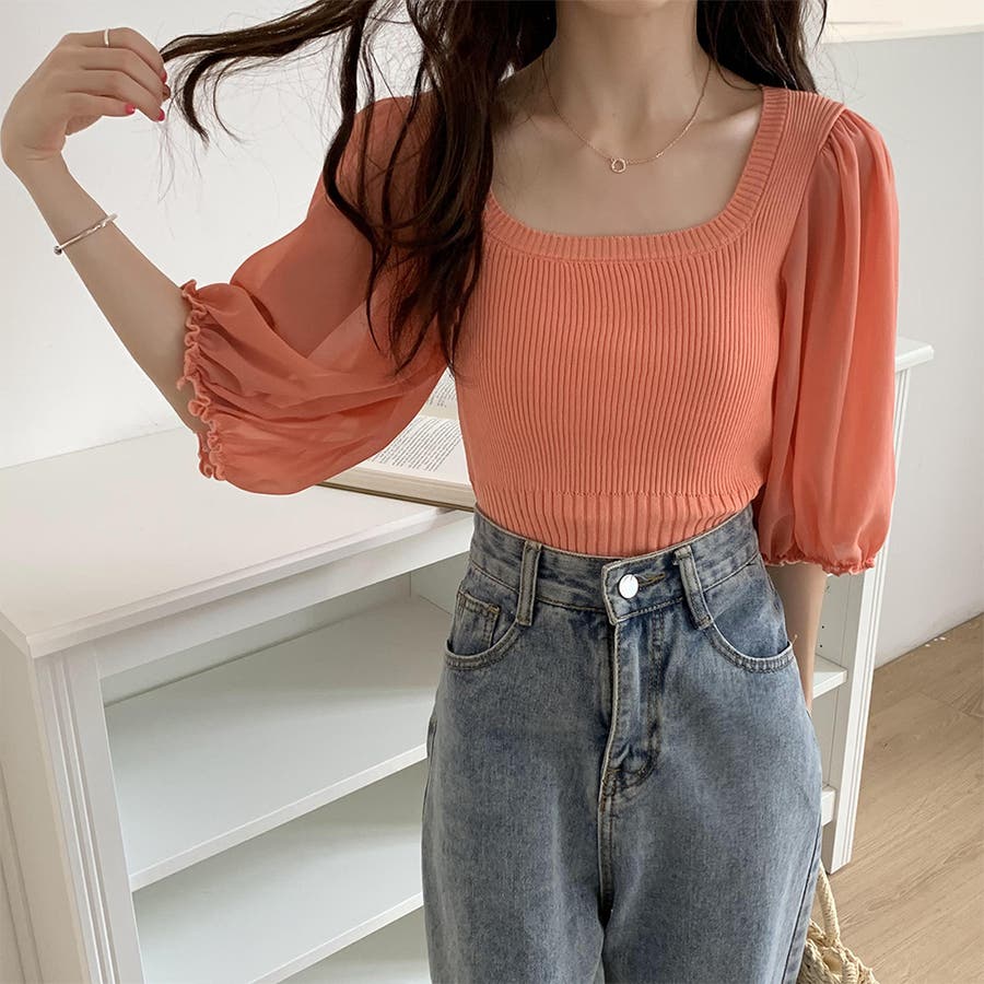 ニットトップス 袖切り替えサマーニット 春