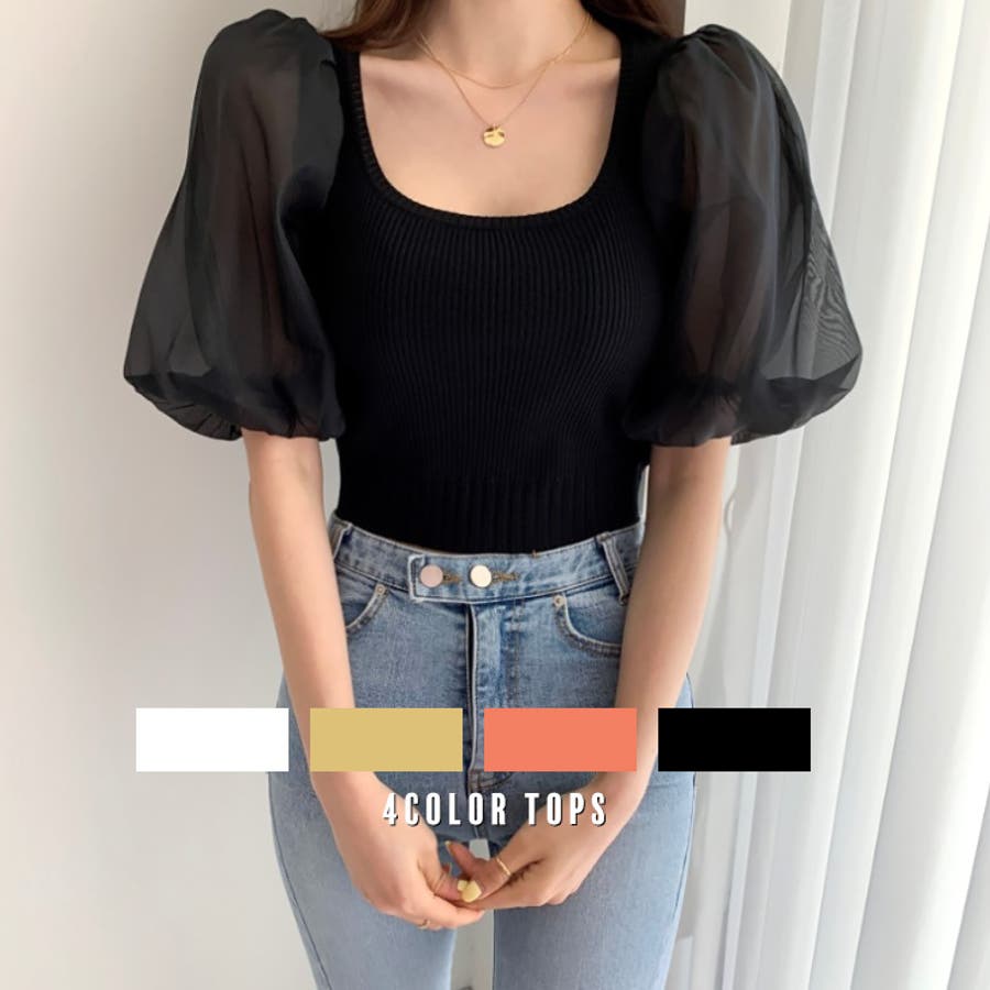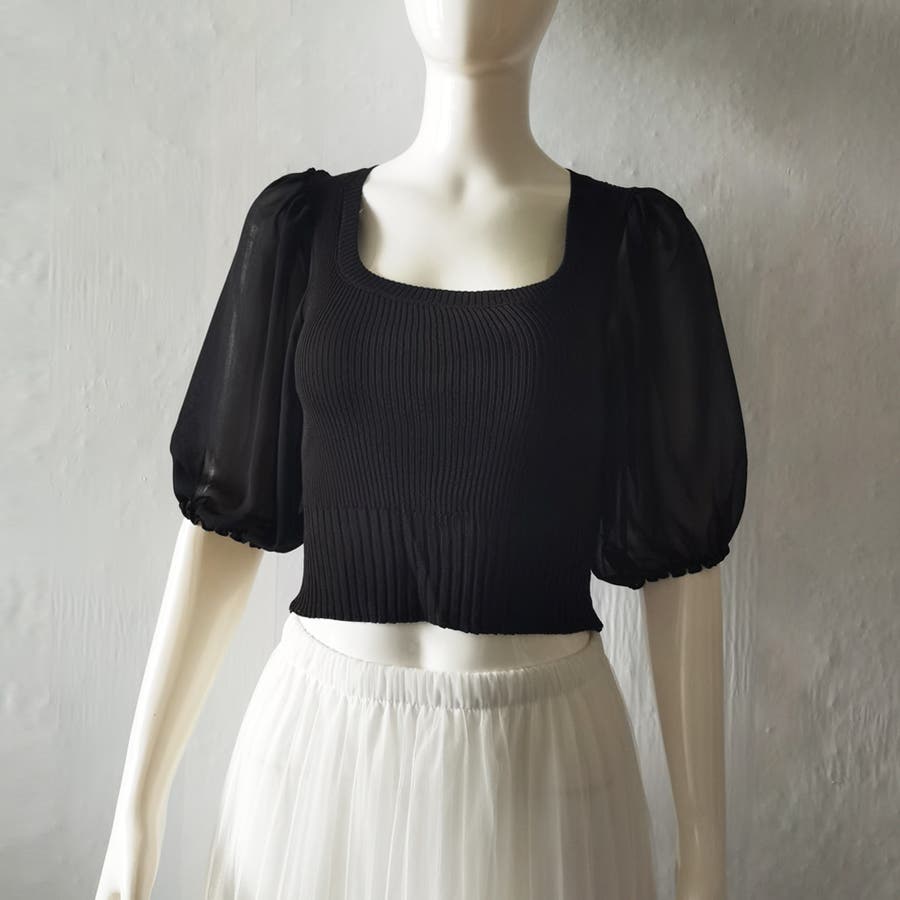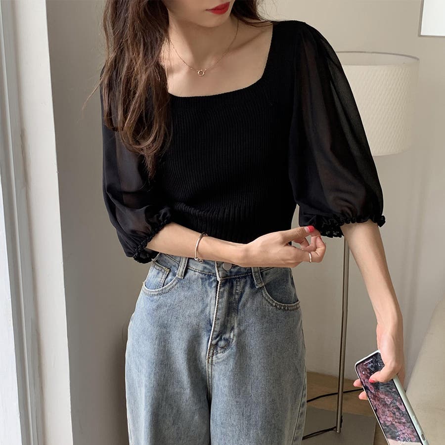 デコルテラインを綺麗に見せてくれるスクエアネックで、上品で女性らしい印象を与えてくれる