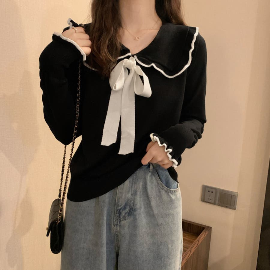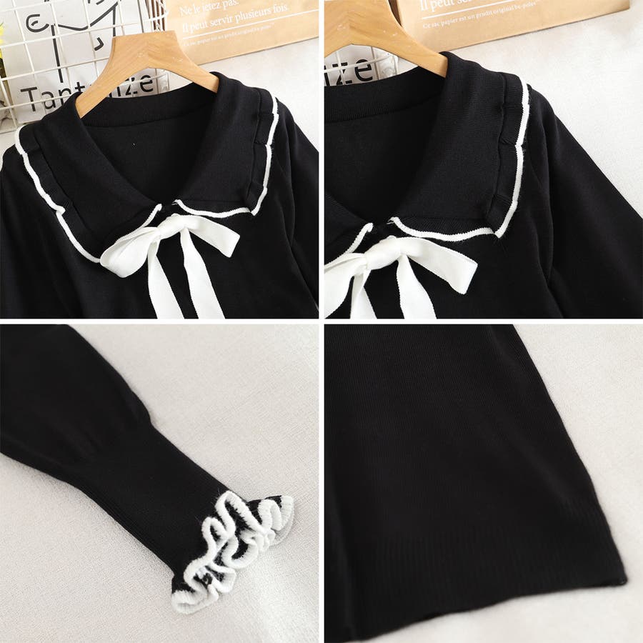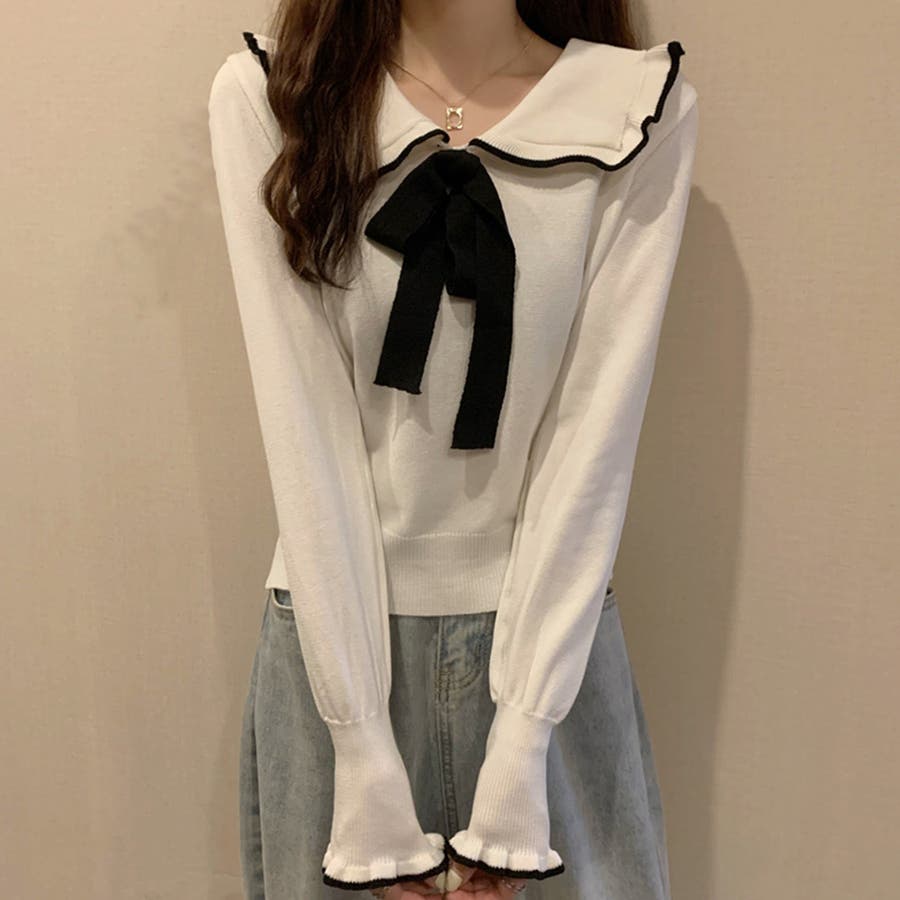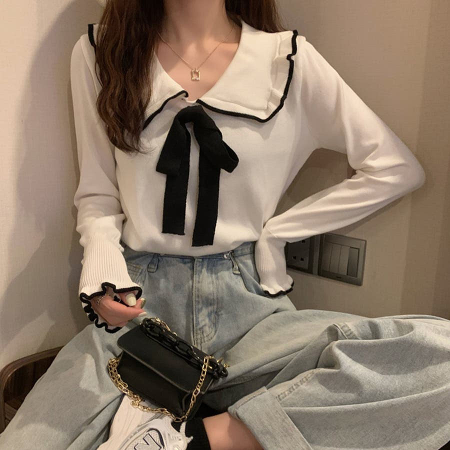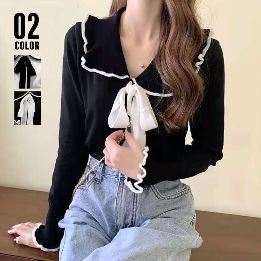 ニットトップス レディース リボン付き