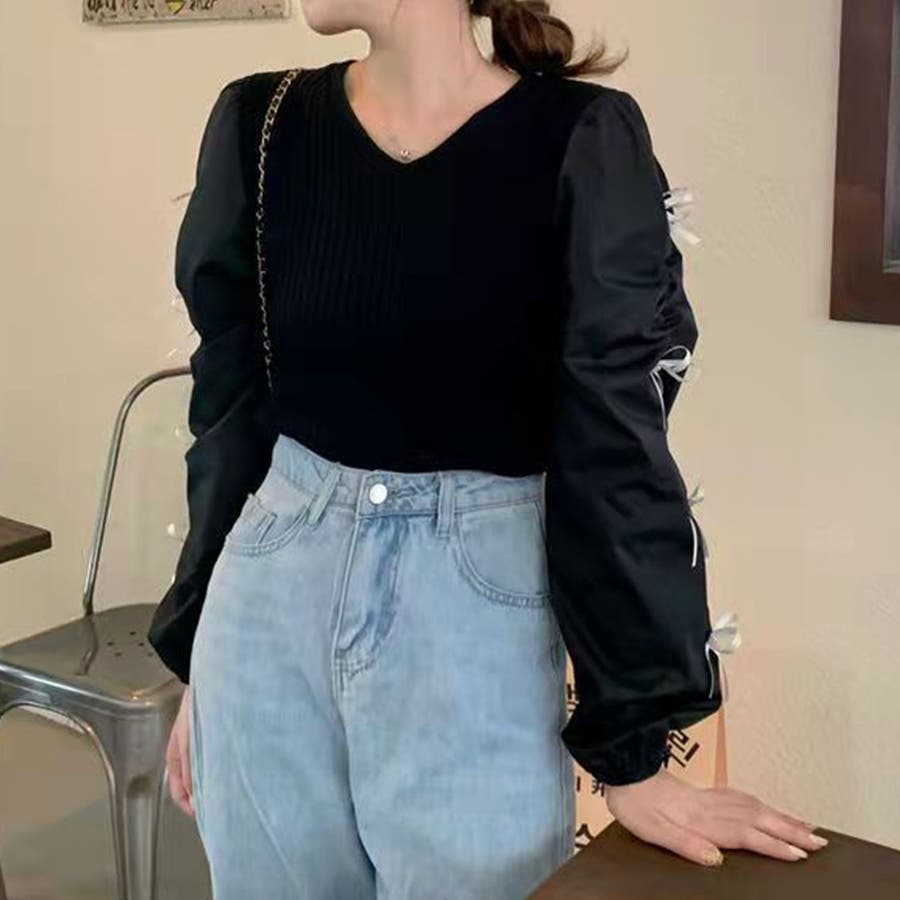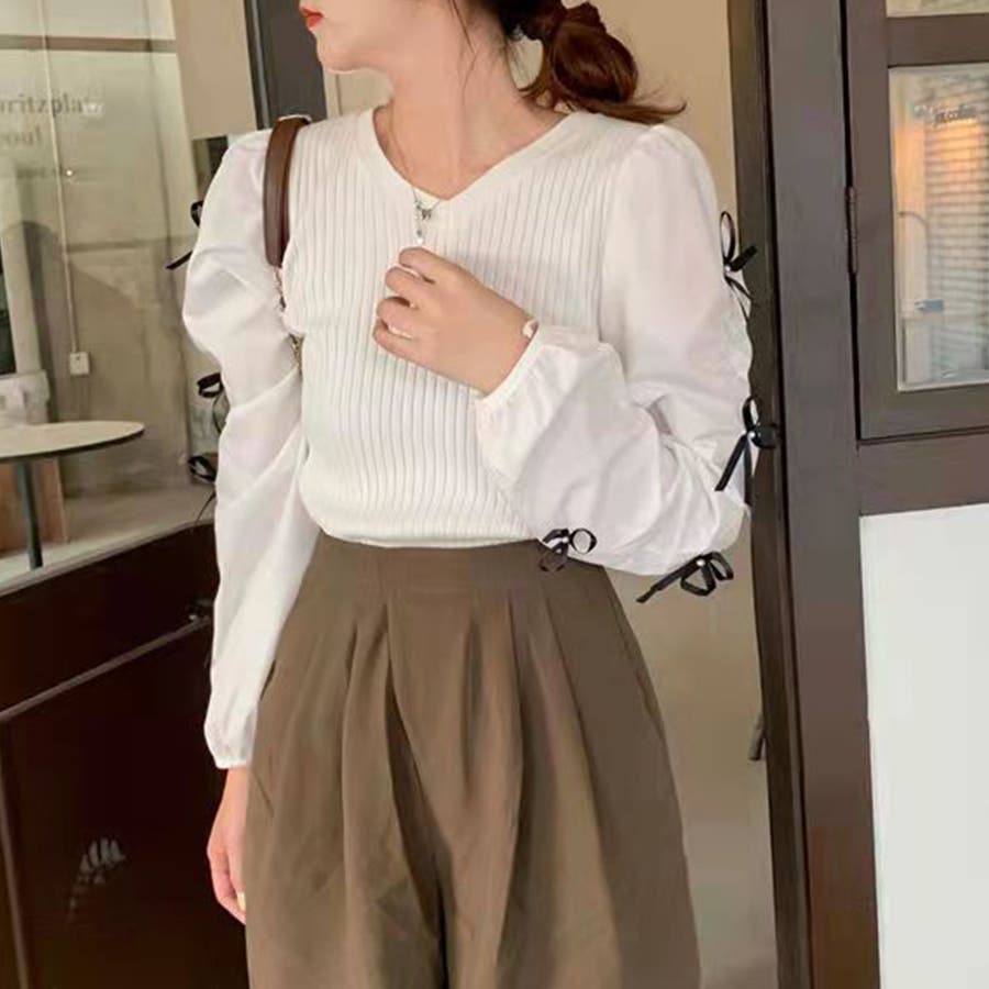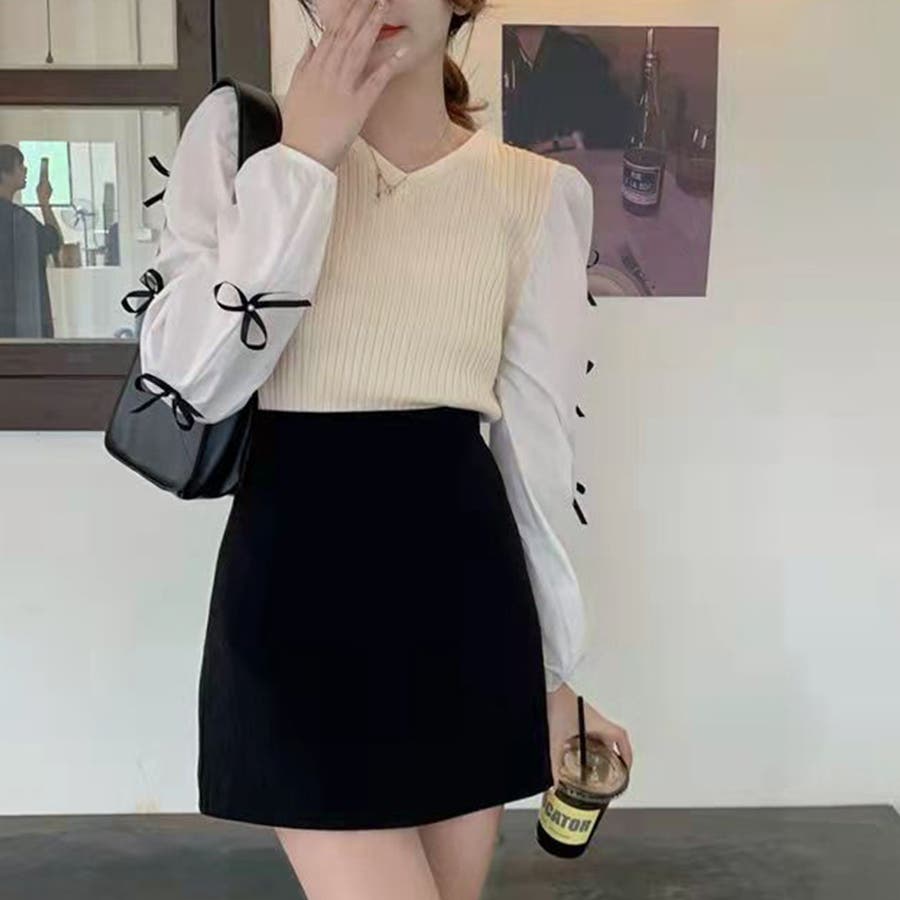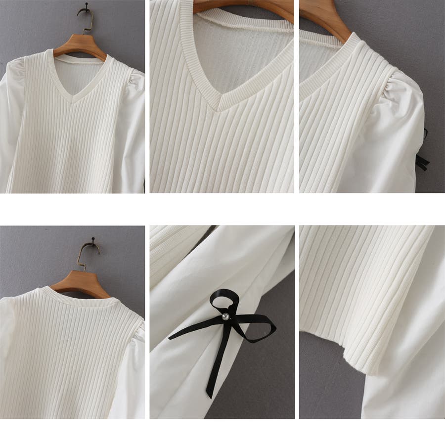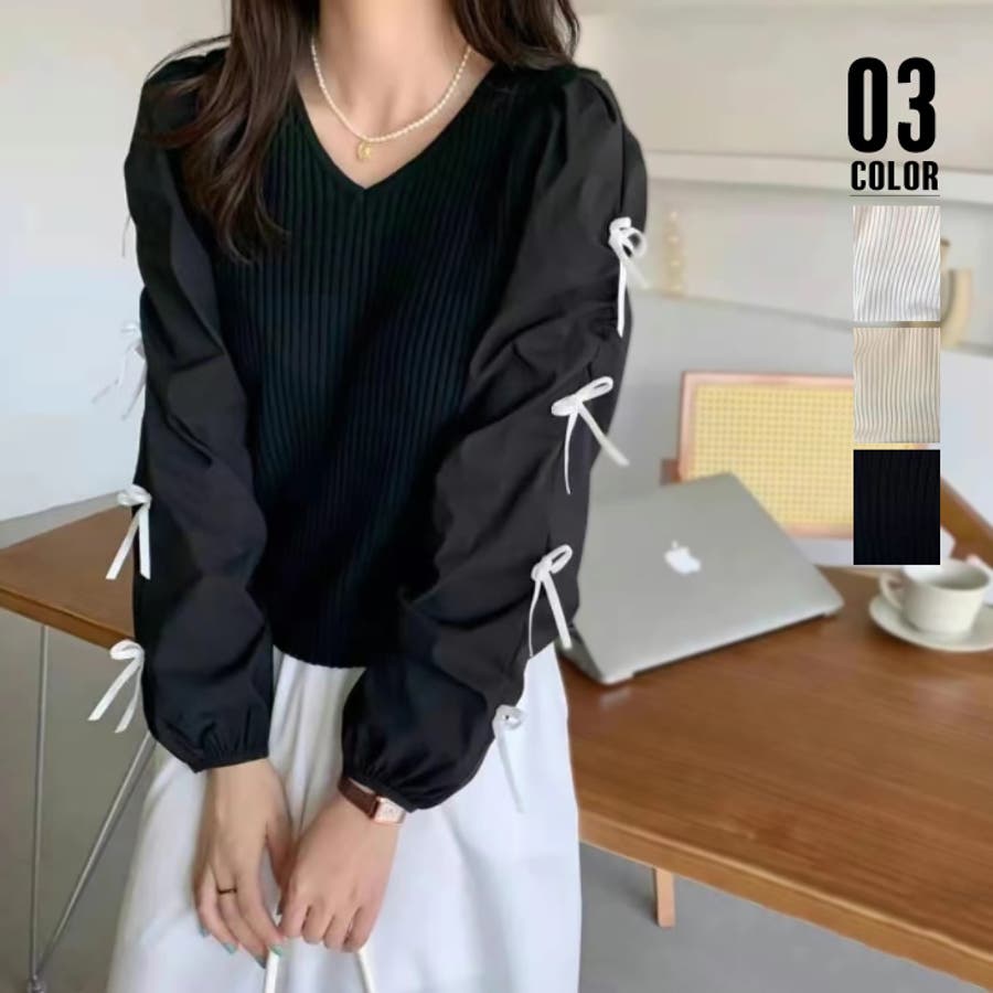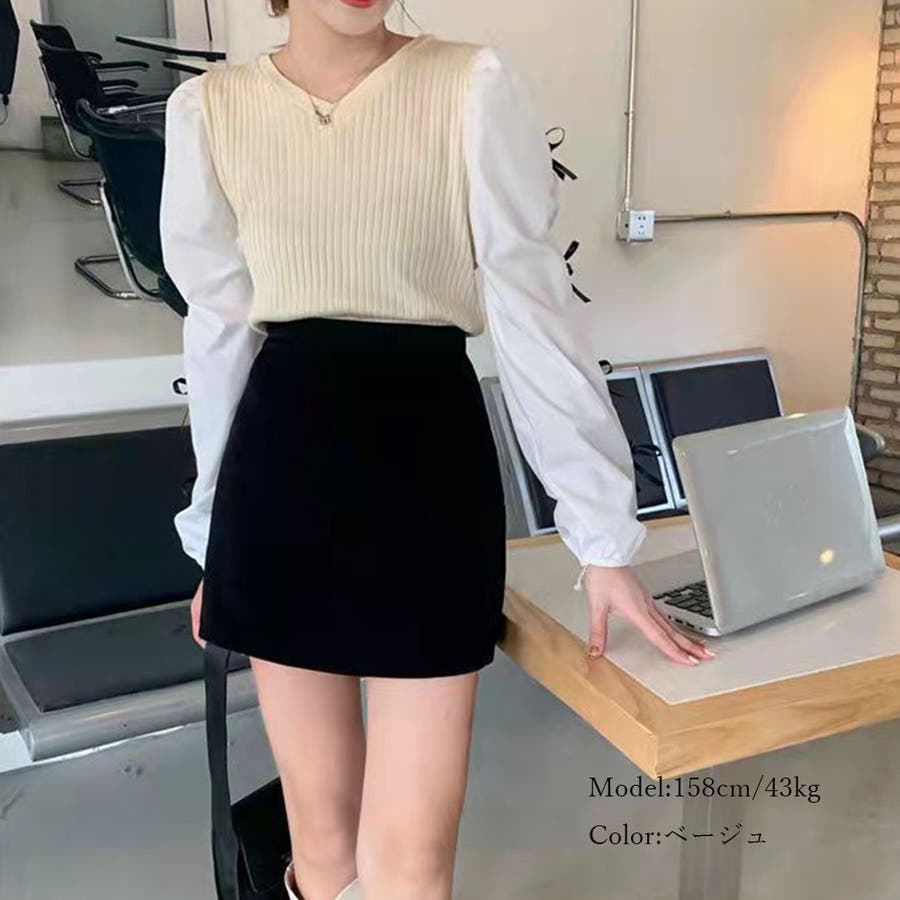 ニットトップス 重ね着風 春 春服 オフィスカジュアル 韓国ファッション 韓国