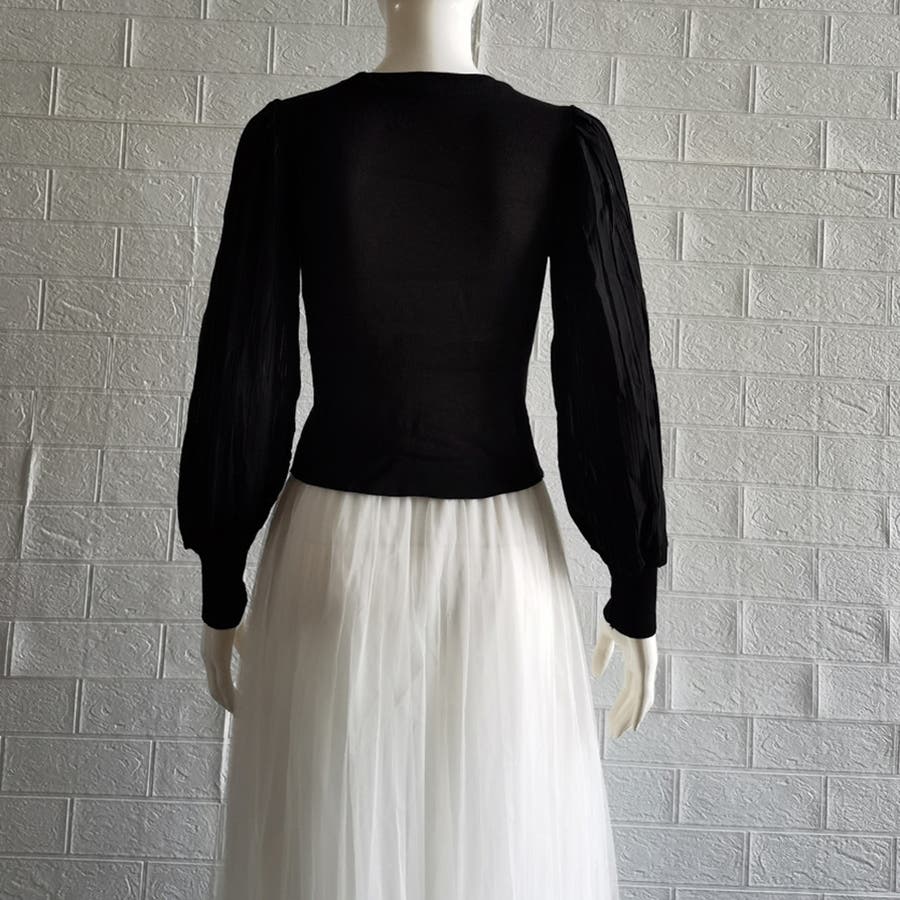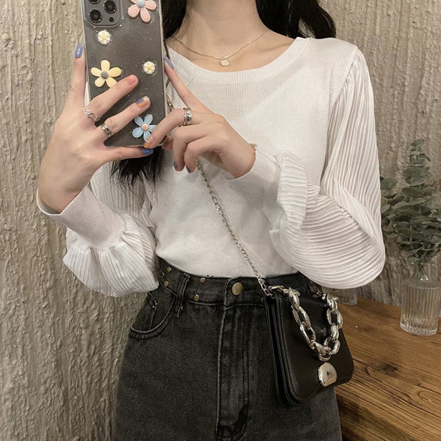 ニットブラウス 異素材 風トップス