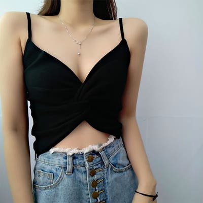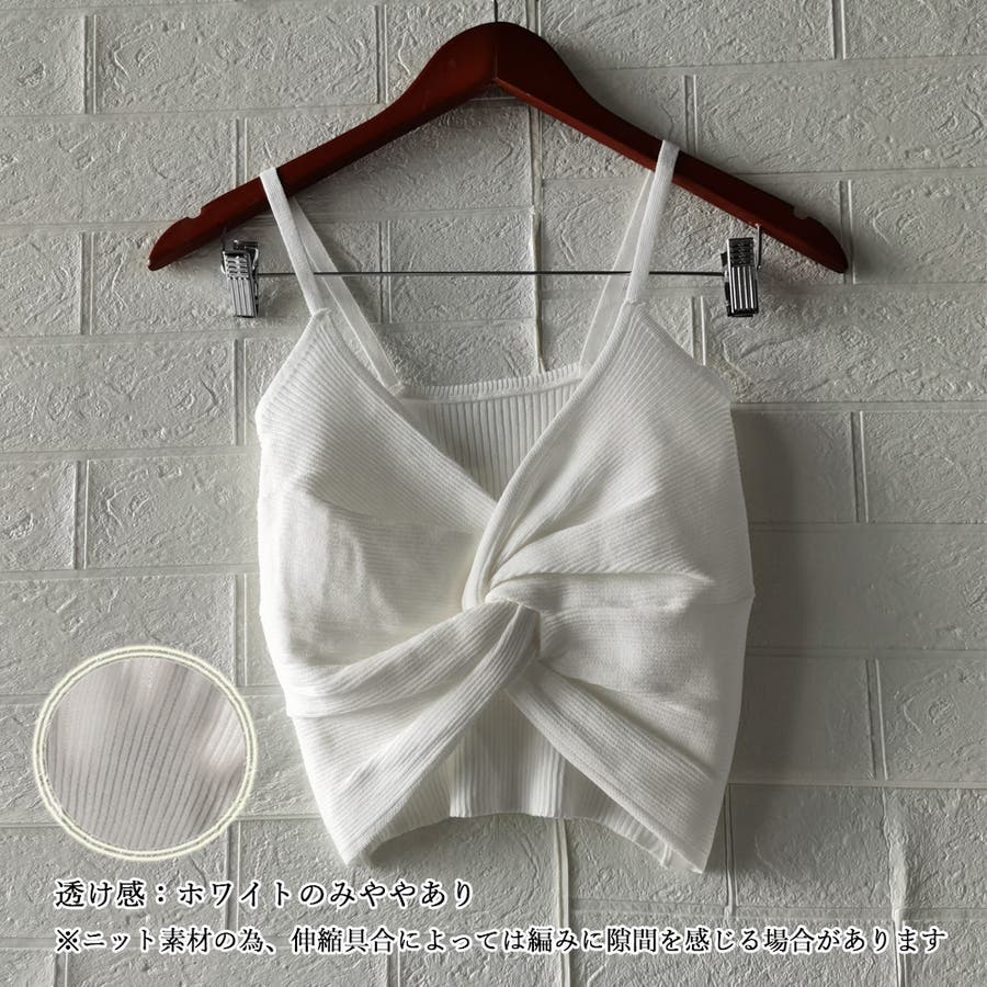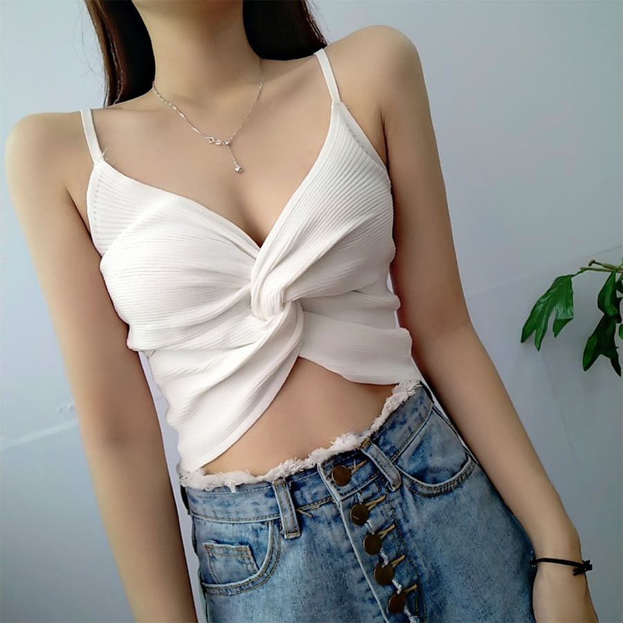 【ホワイト】キャミソール フロントツイスト へそ出し