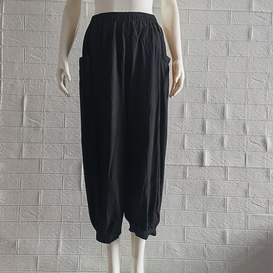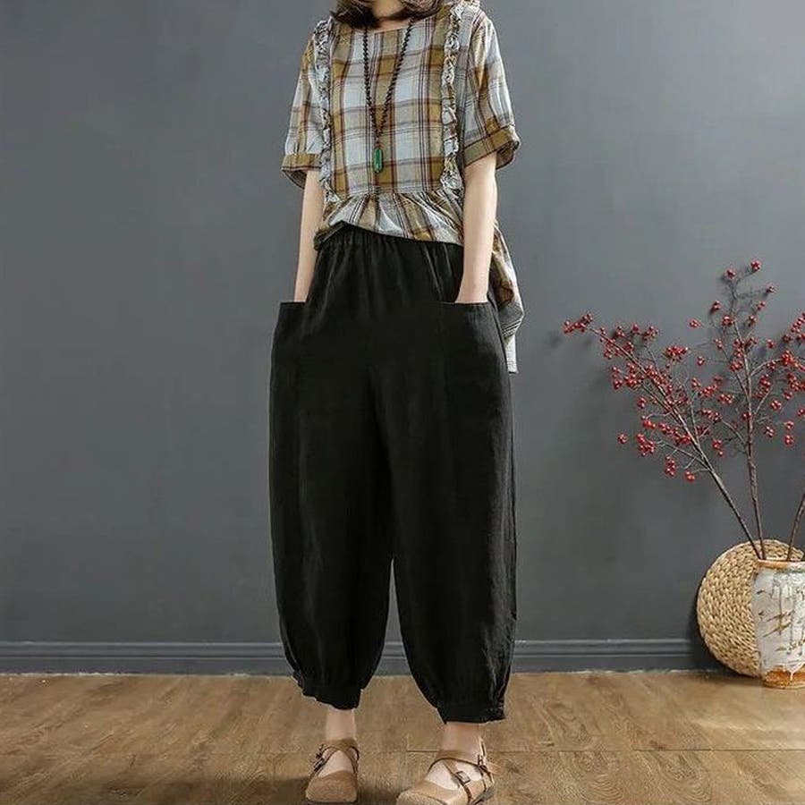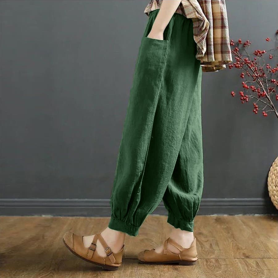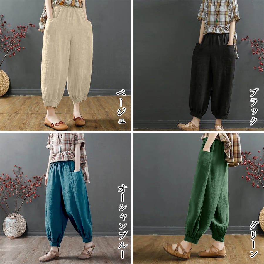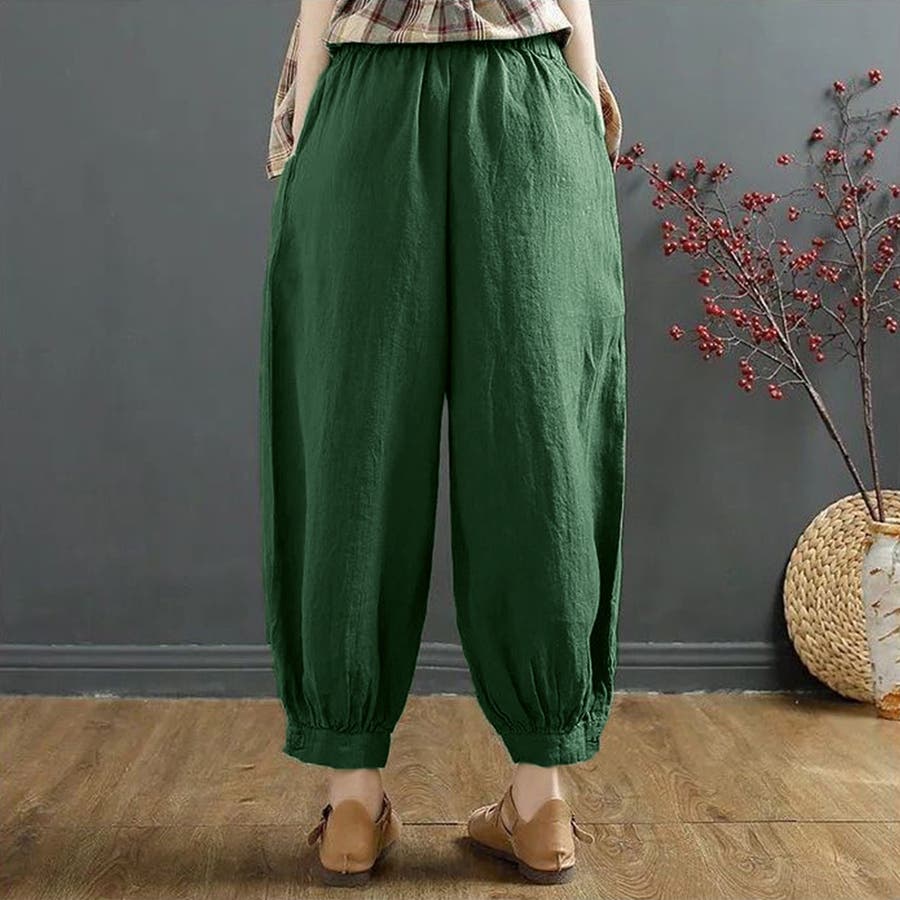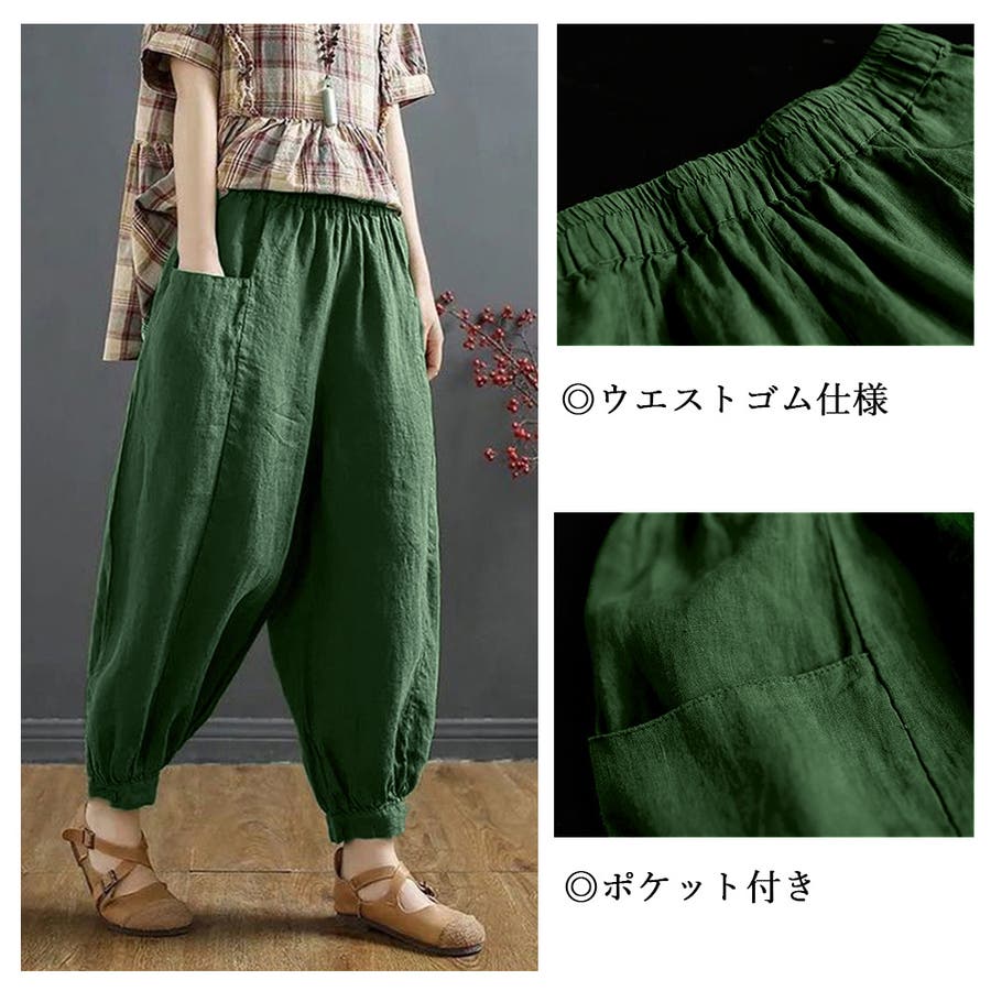 無地 ボトムス お洒落 綿麻パンツ 体型カバーパンツ