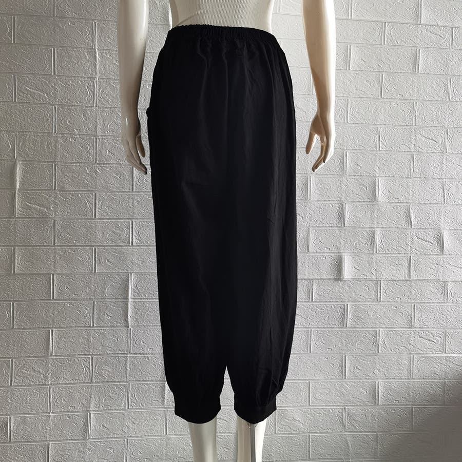 股上深めのゆったりとしたシルエットでヒップや太もものカバー力が抜群のサルエルパンツです