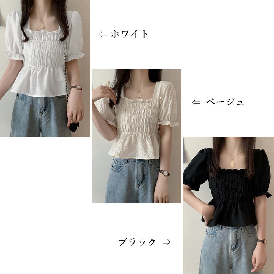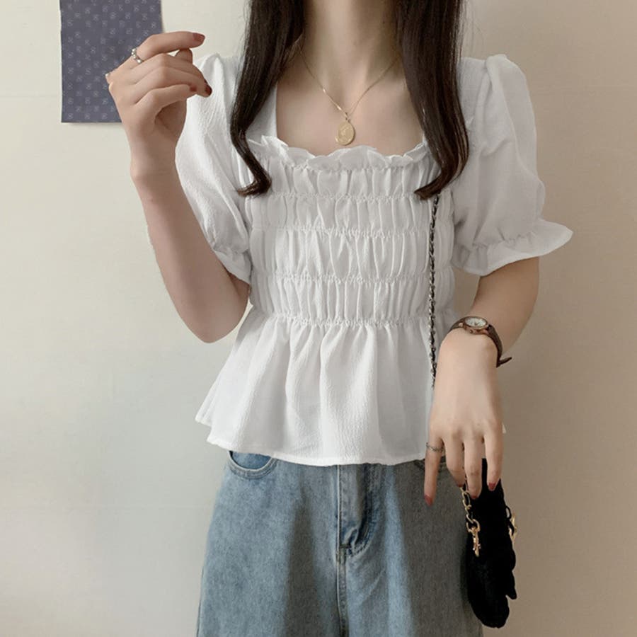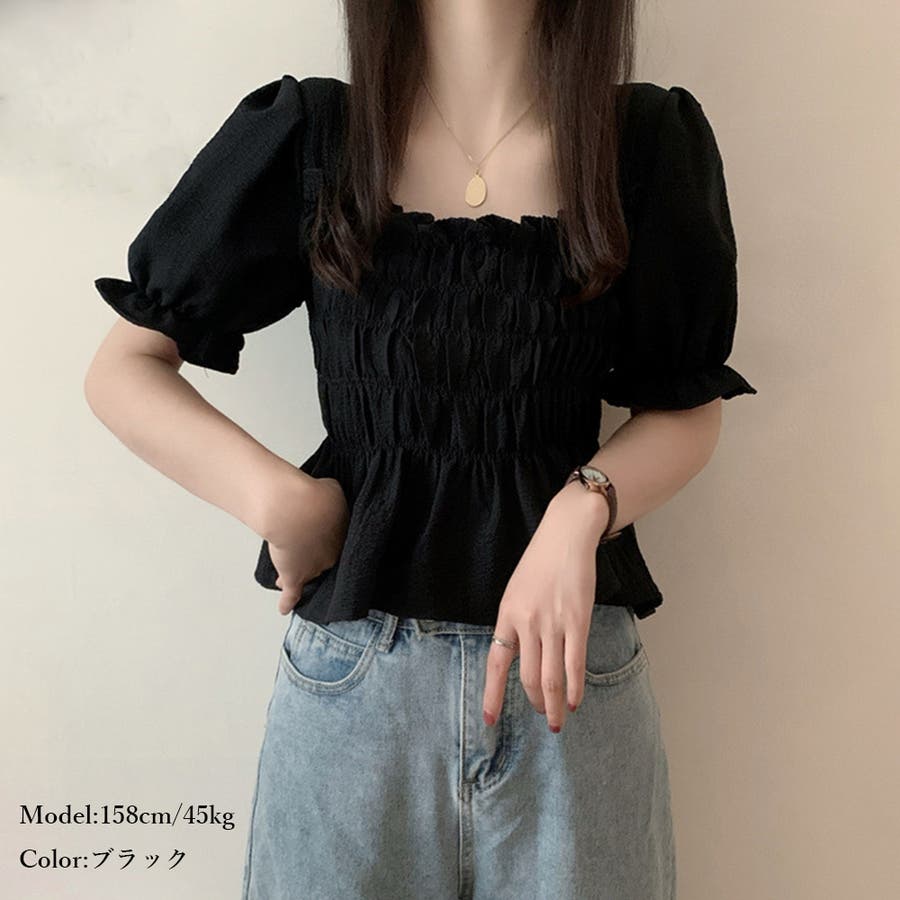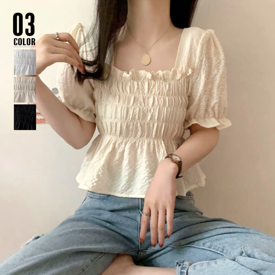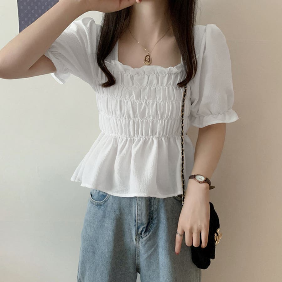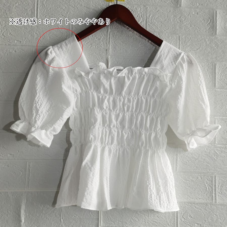 スクエアネック ブラウス シャーリング