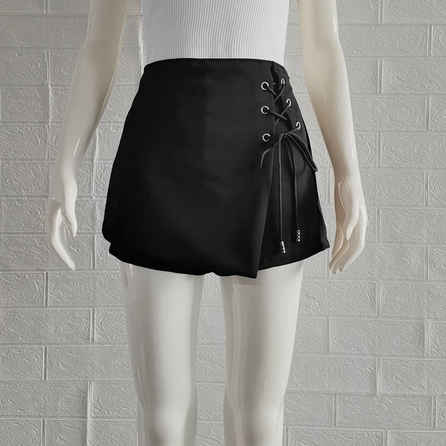 ラップスカートに見えるおしゃれなサイドレースアップショートパンツ