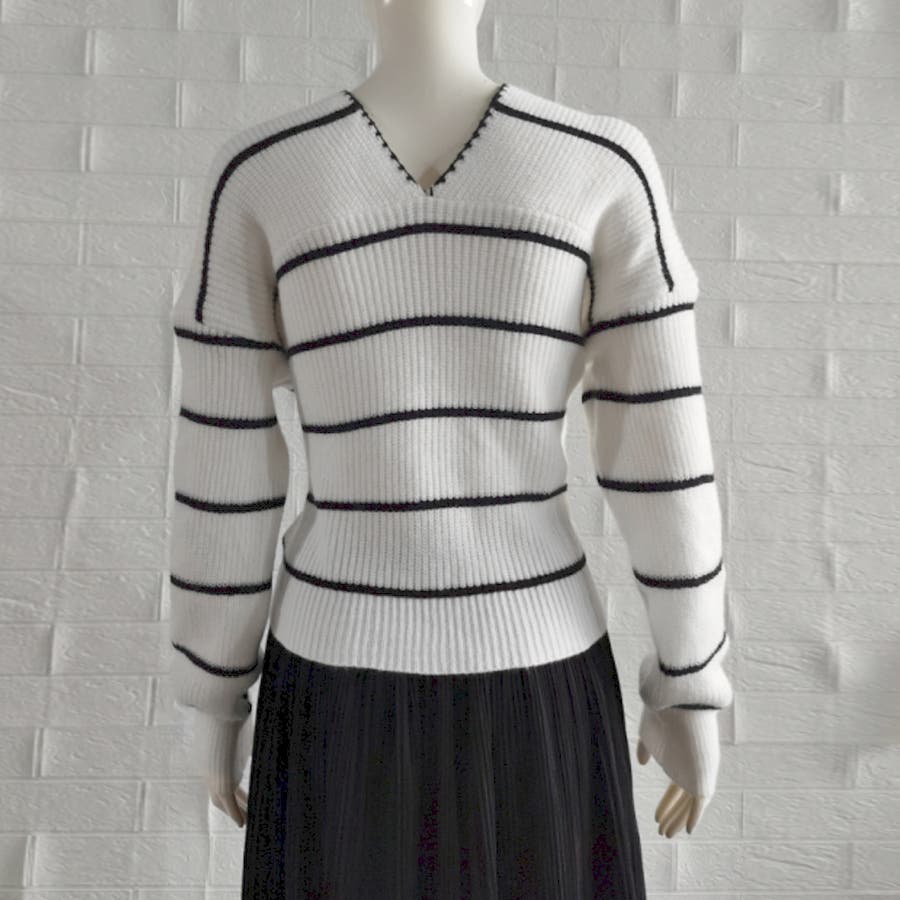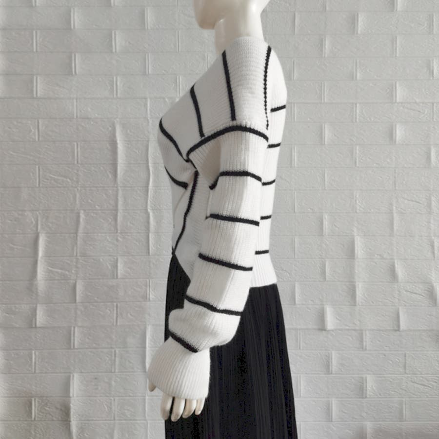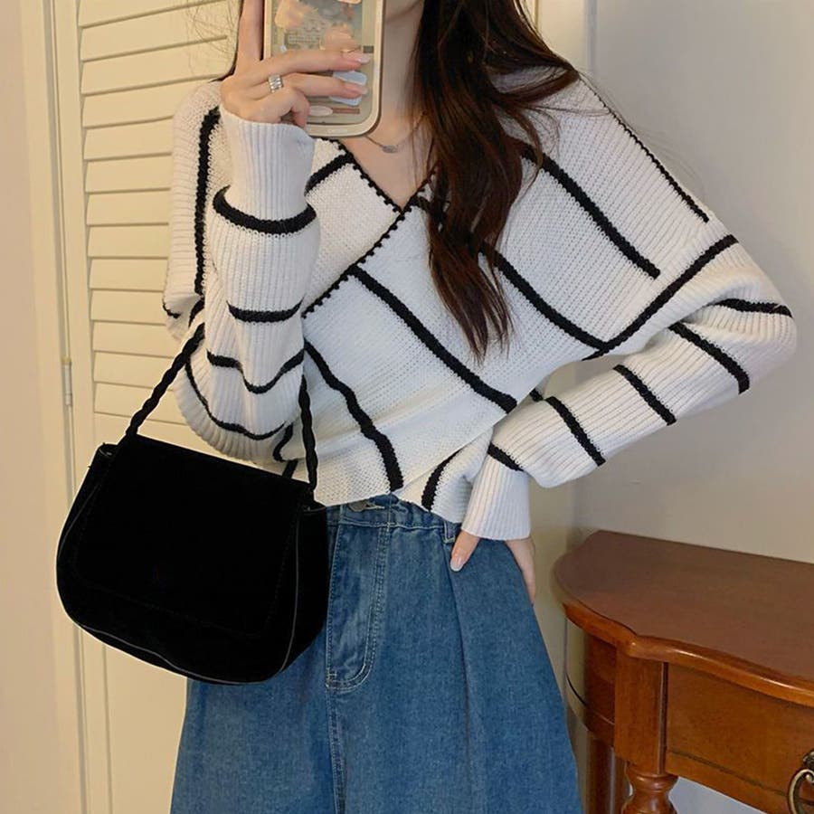 レディース ボーダー柄 ニットセンター 大人カジュアル ショート丈 ニットウエア 肩だし きれいめ ニットソー Vネック