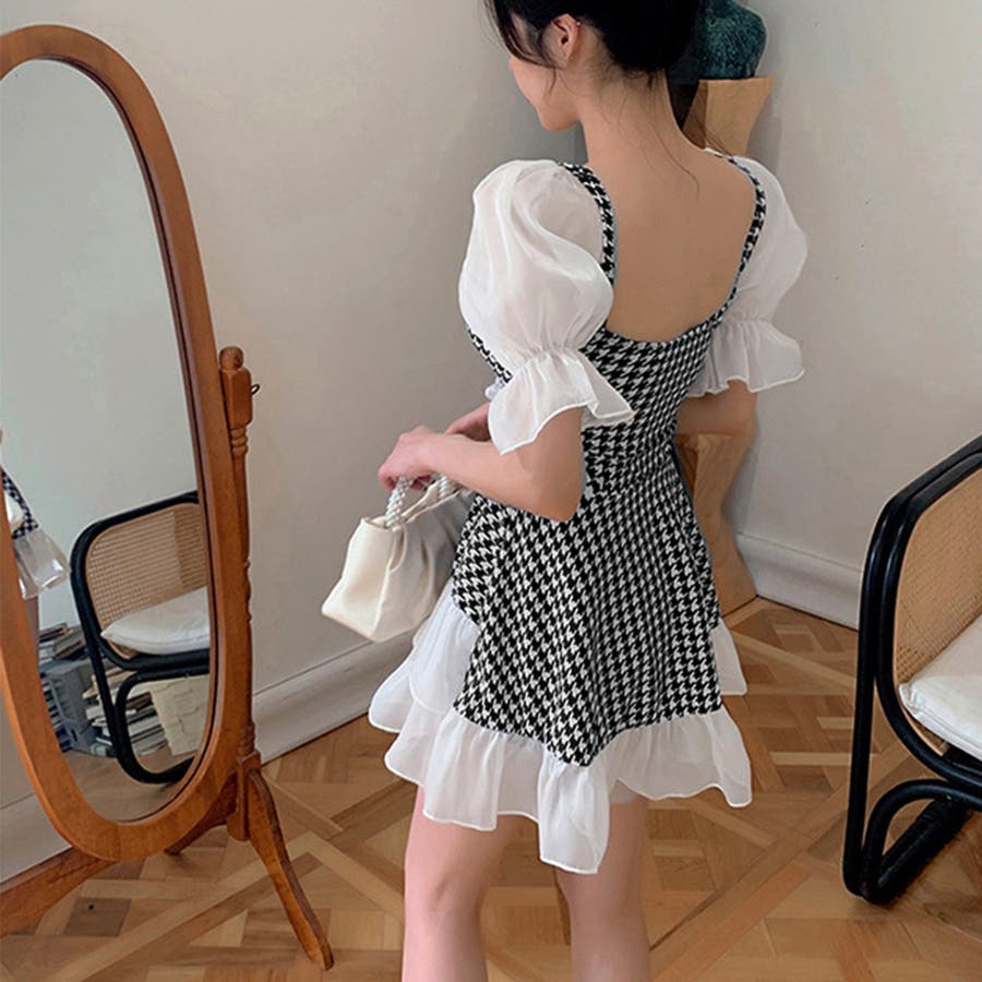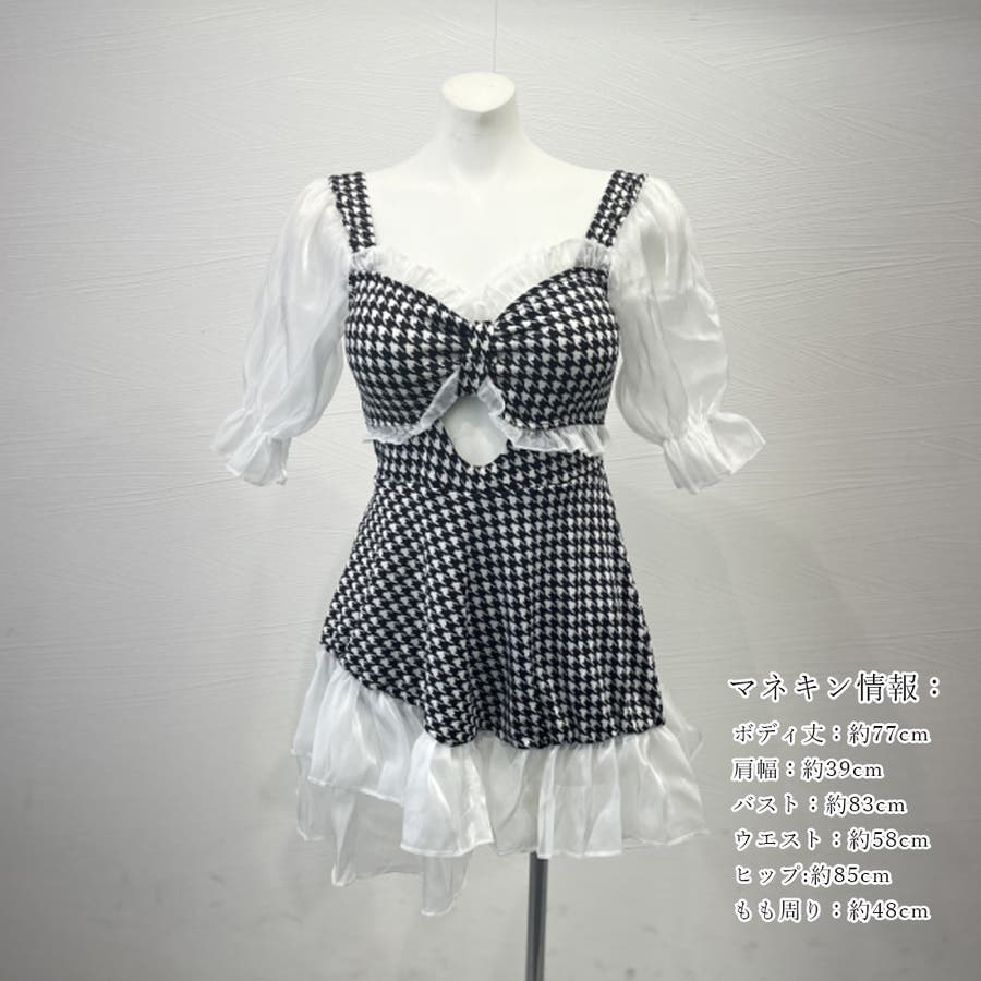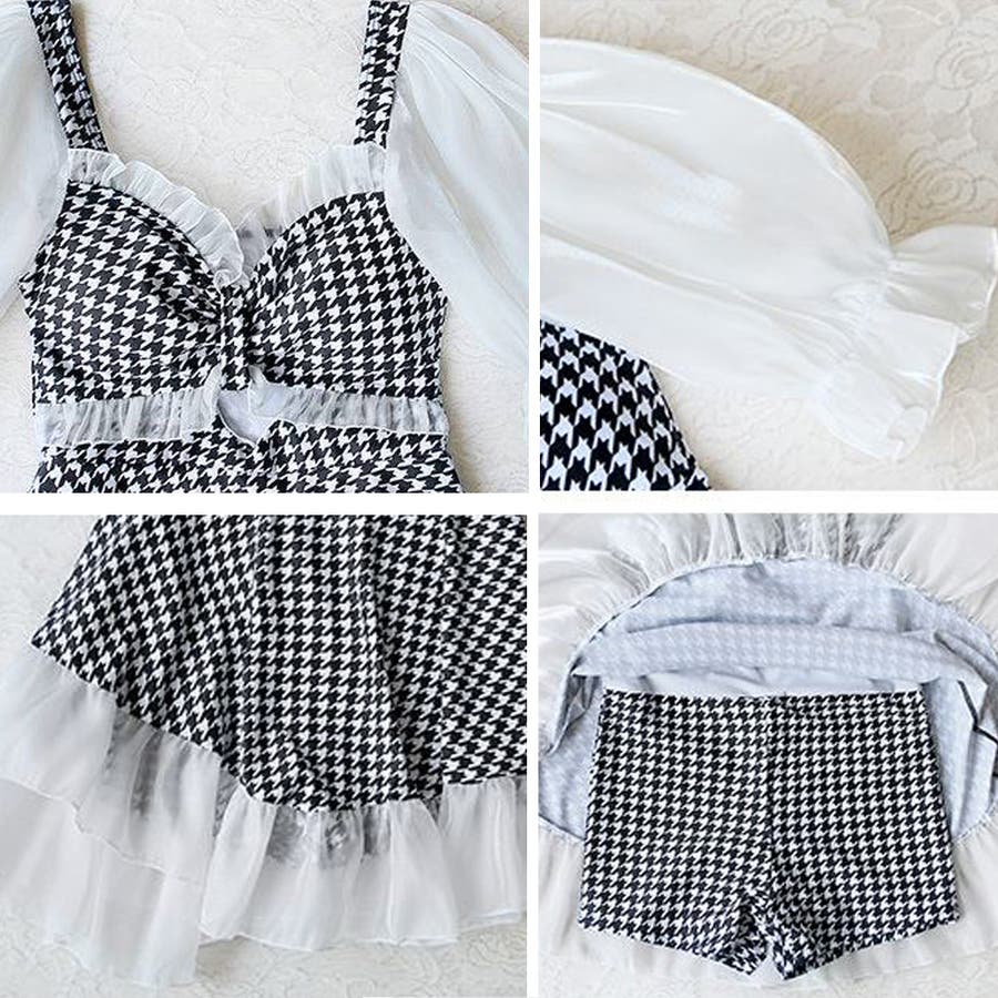大人ガーリーな雰囲気の千鳥柄ワンピ水着