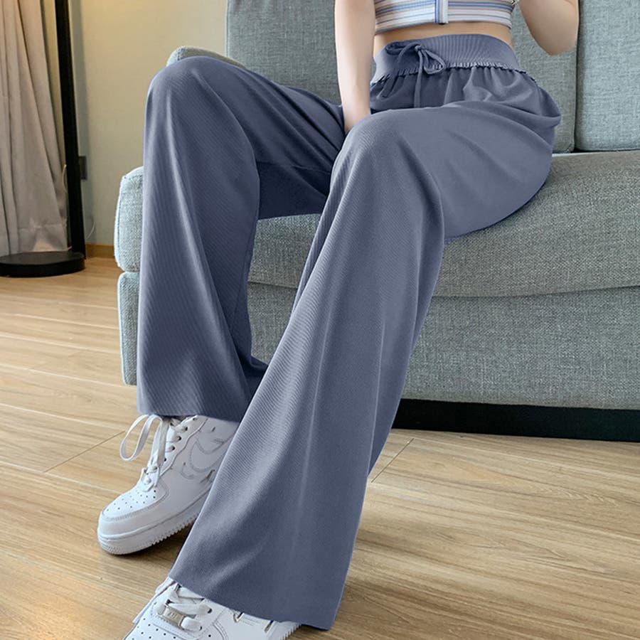 楽ちんズボン 薄手 着やせボトムス無地 ゆったり 長ズボン
