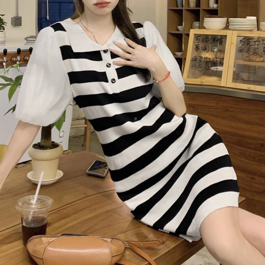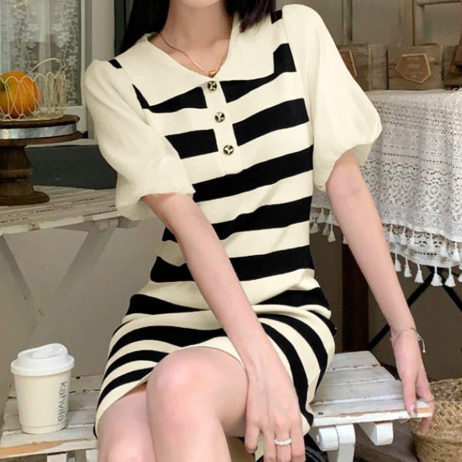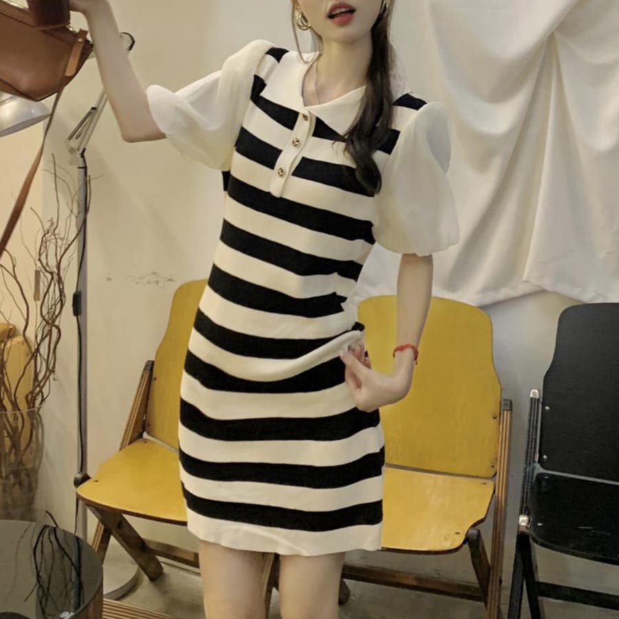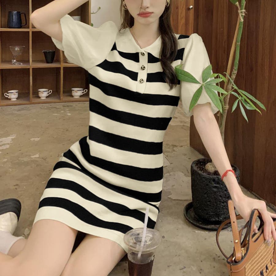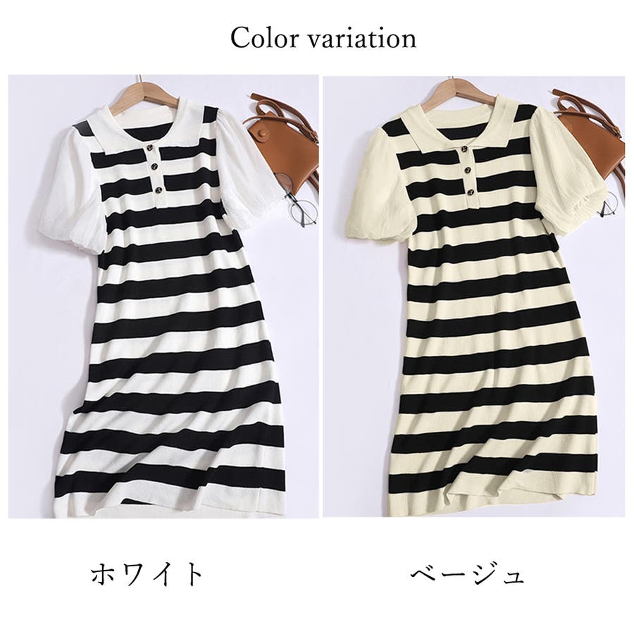 程よく体にフィットするIラインシルエットが今年らしい袖切り替えのサマーニットワンピース