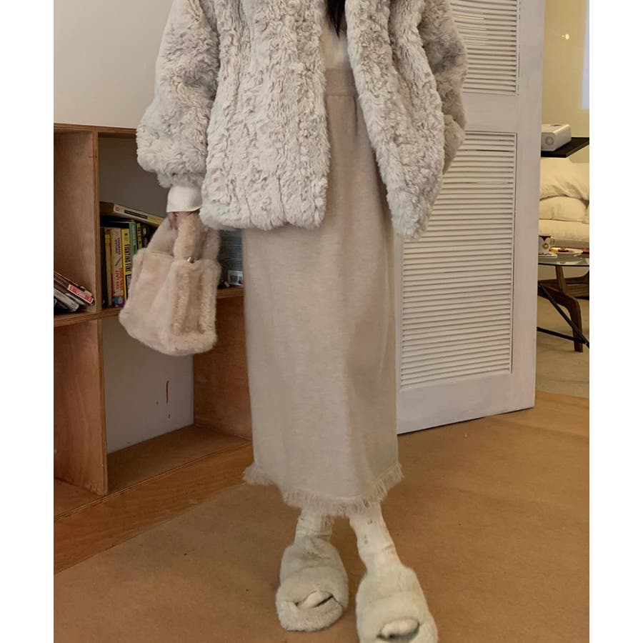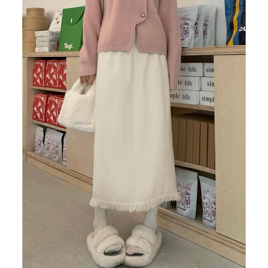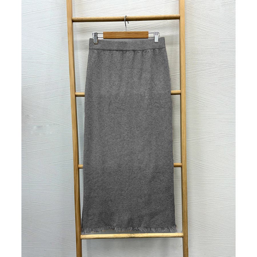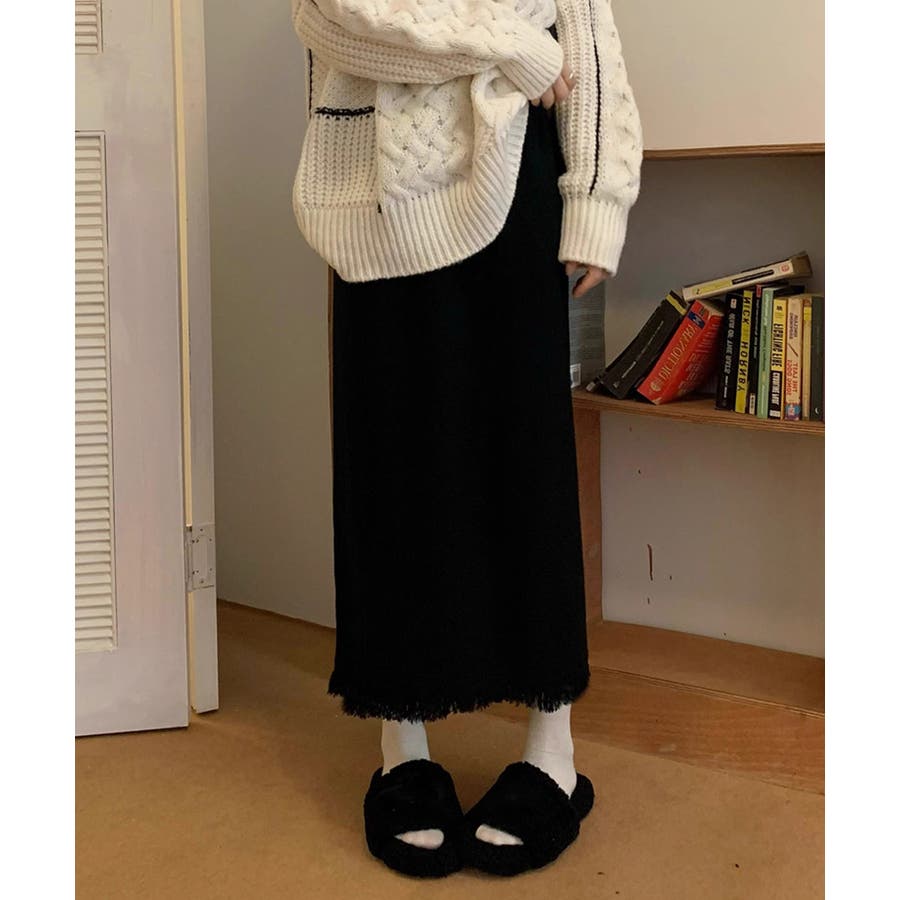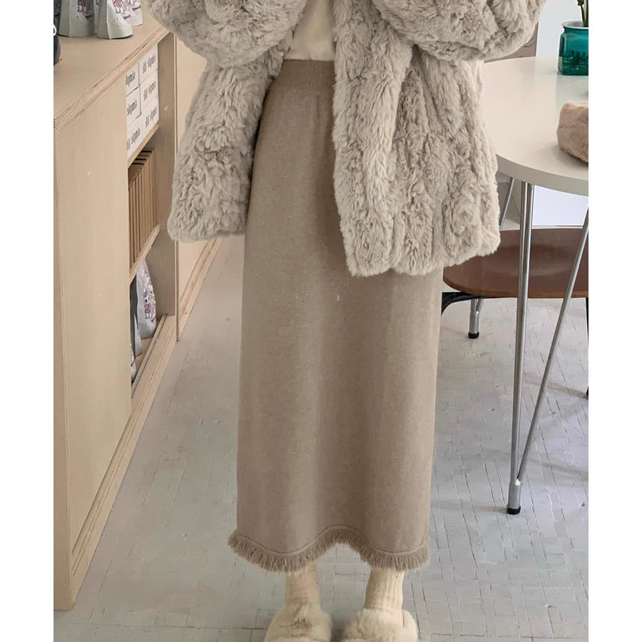 ロングスカート 裾フリンジニットスカート