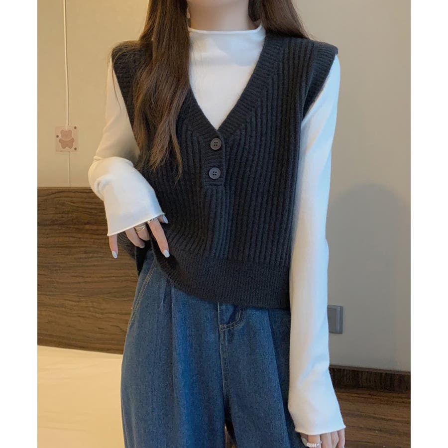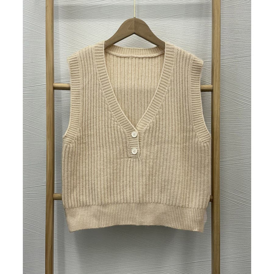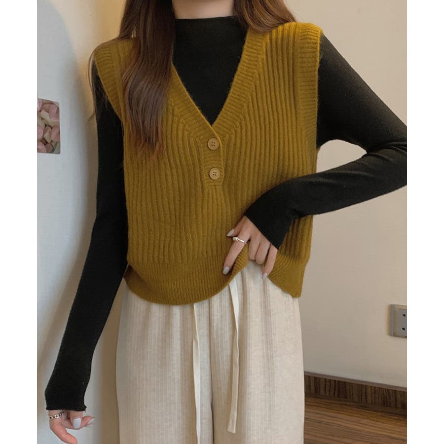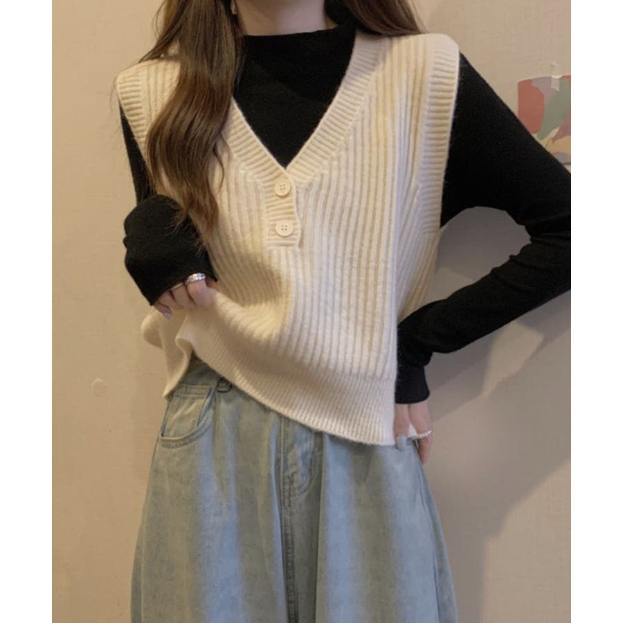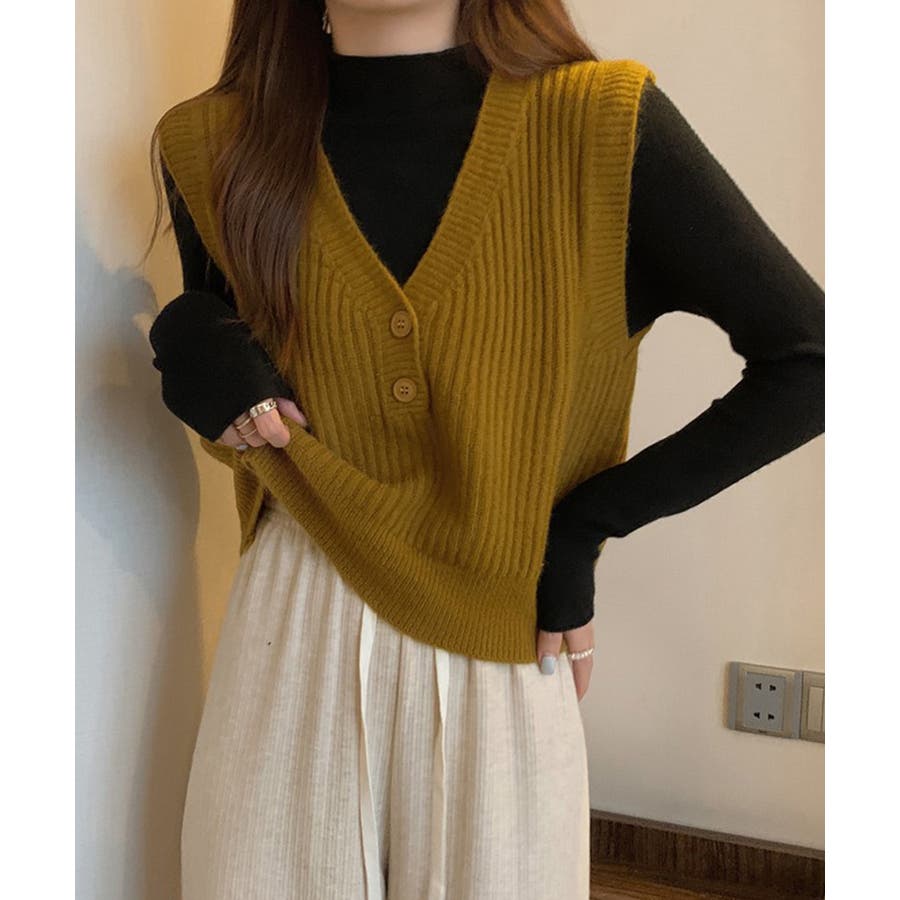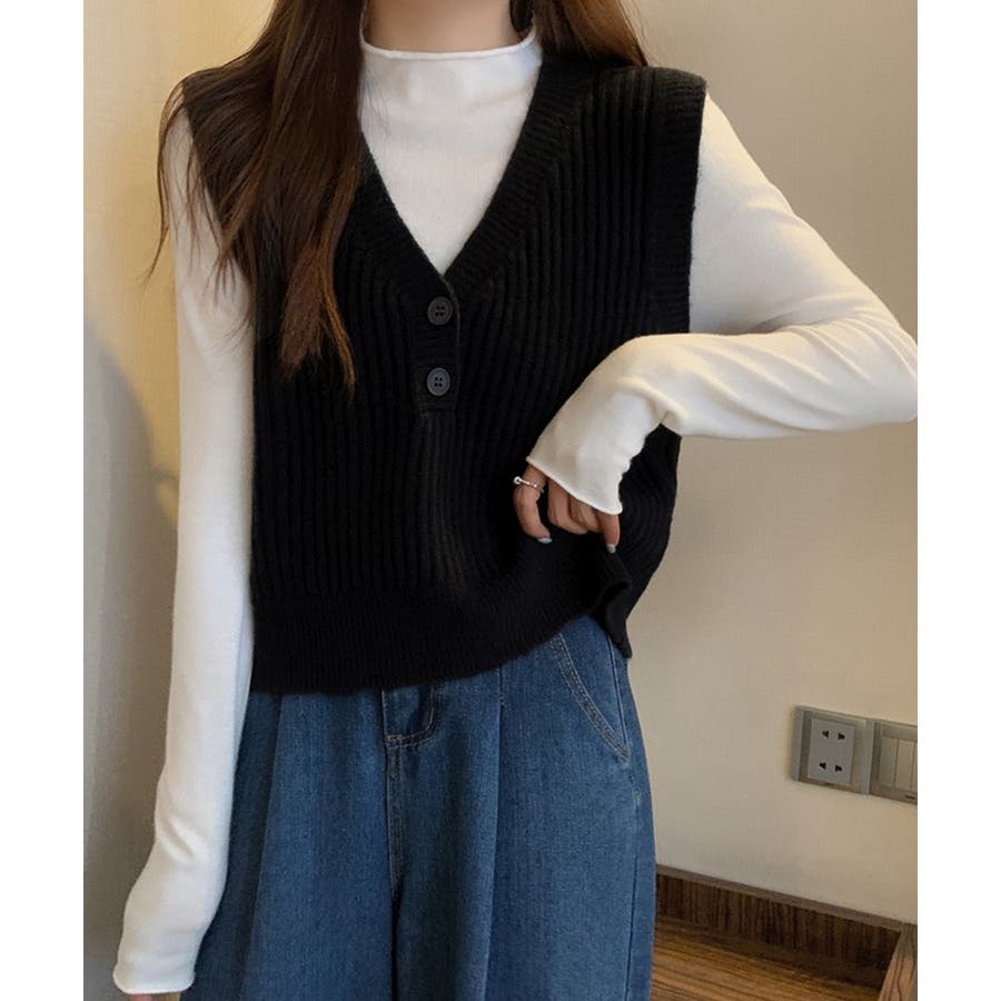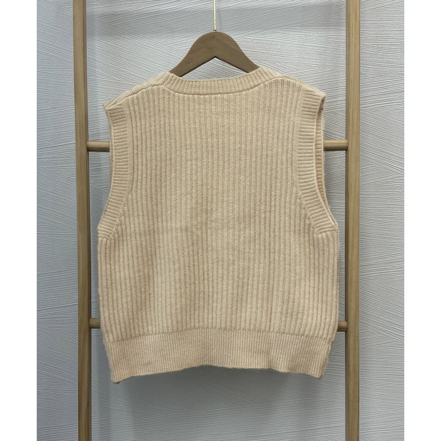 韓国ニットチョッキ ノースリーブニット チョッキ 無地春秋