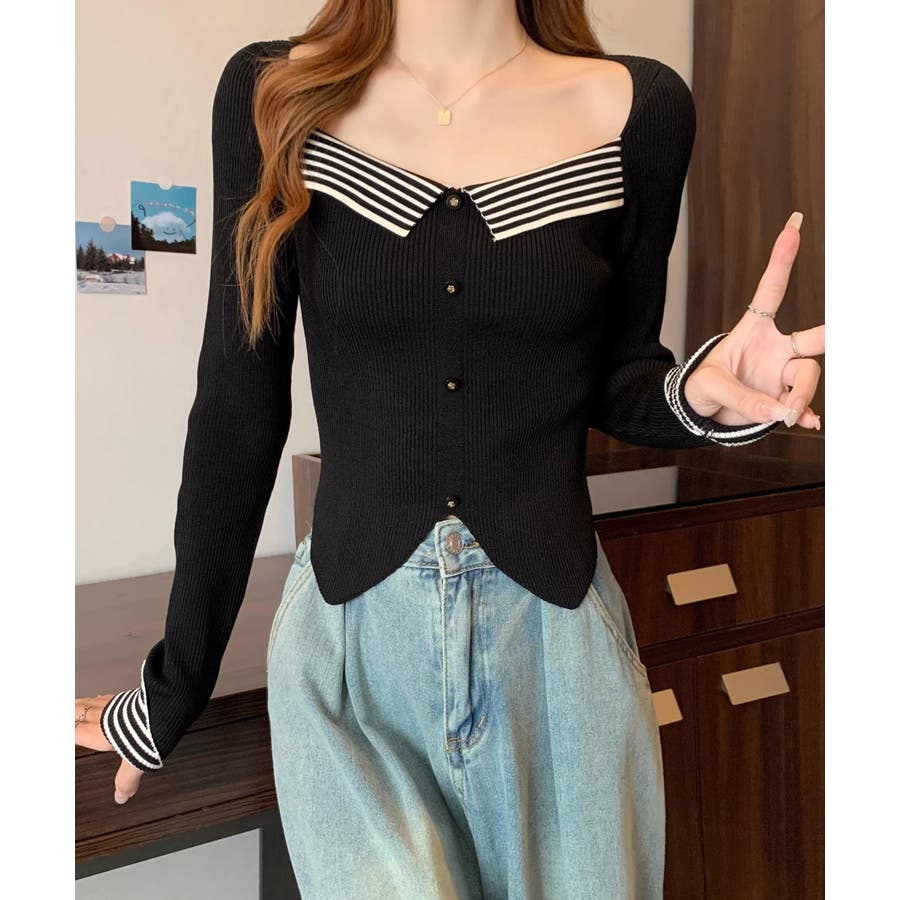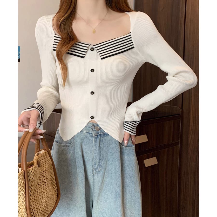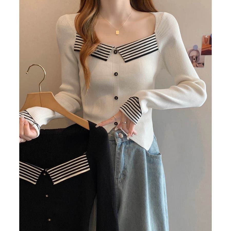 ニットトップス スクエアネック 韓国風